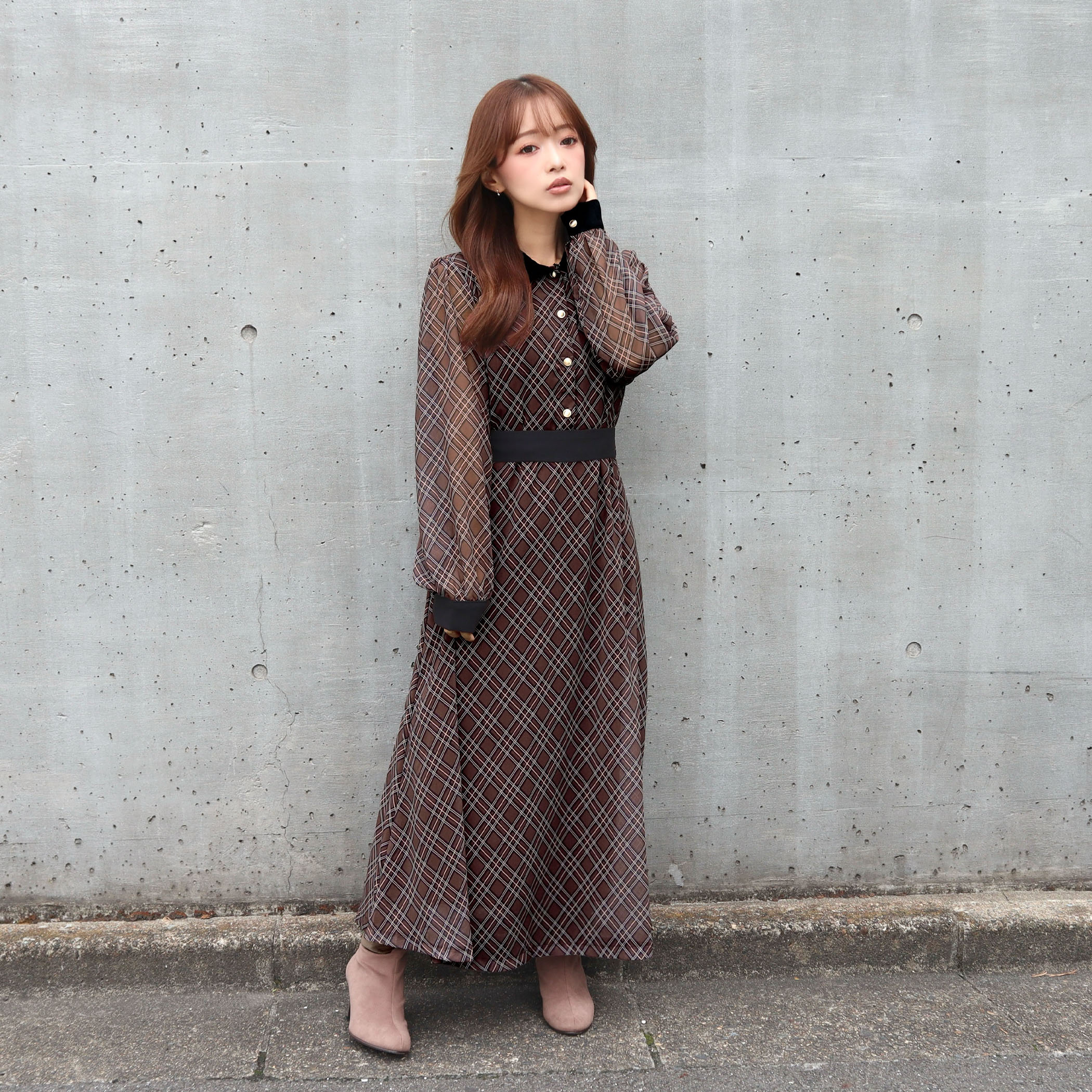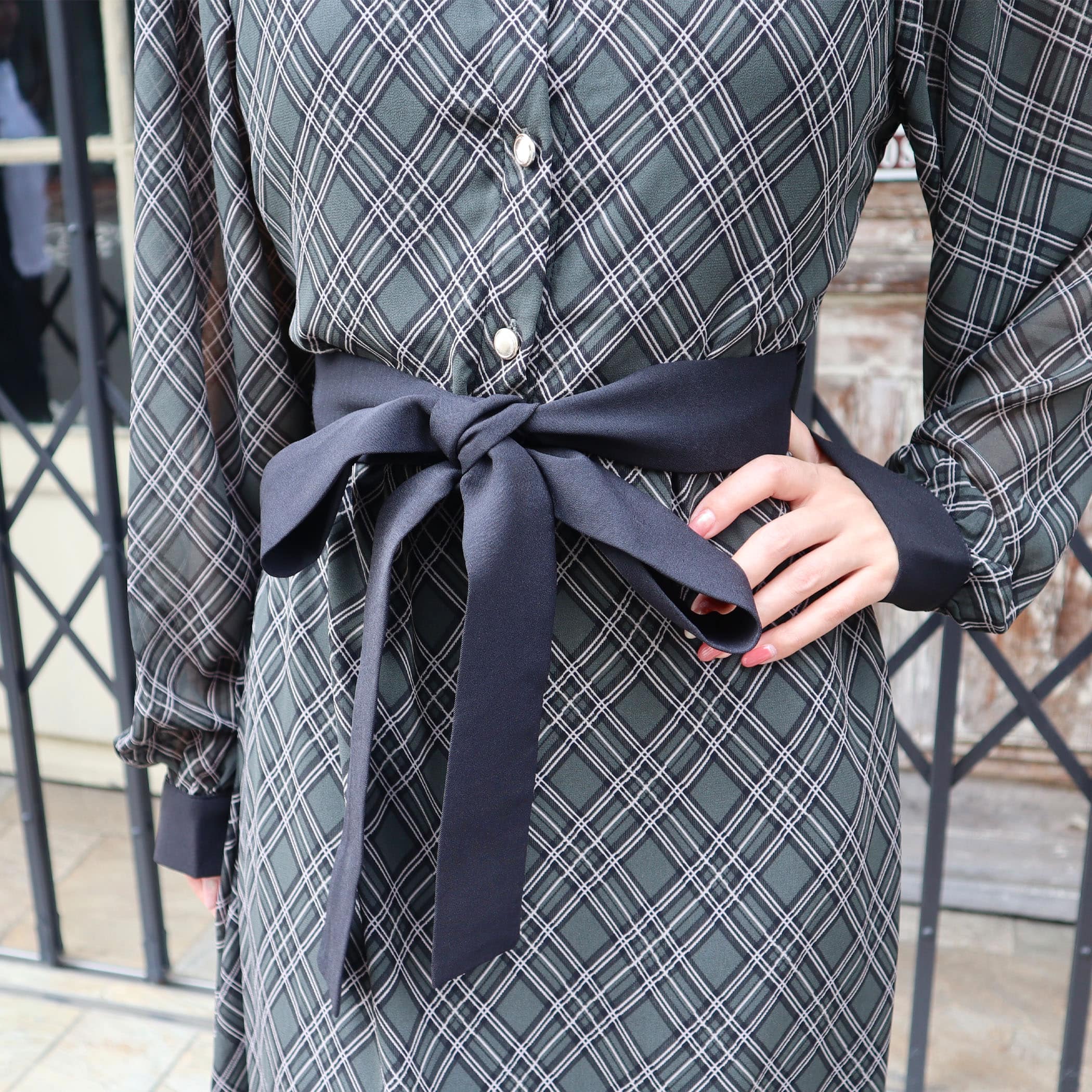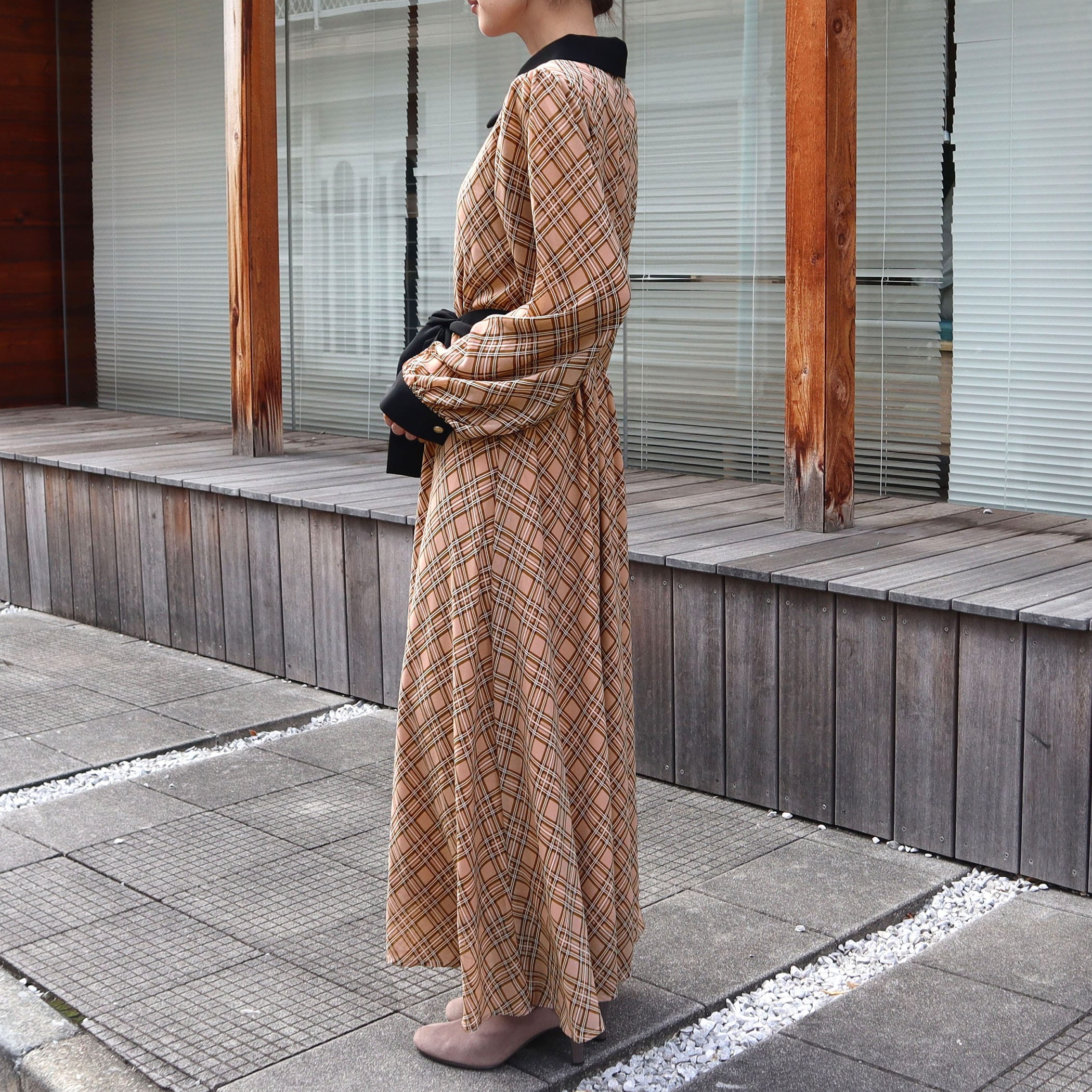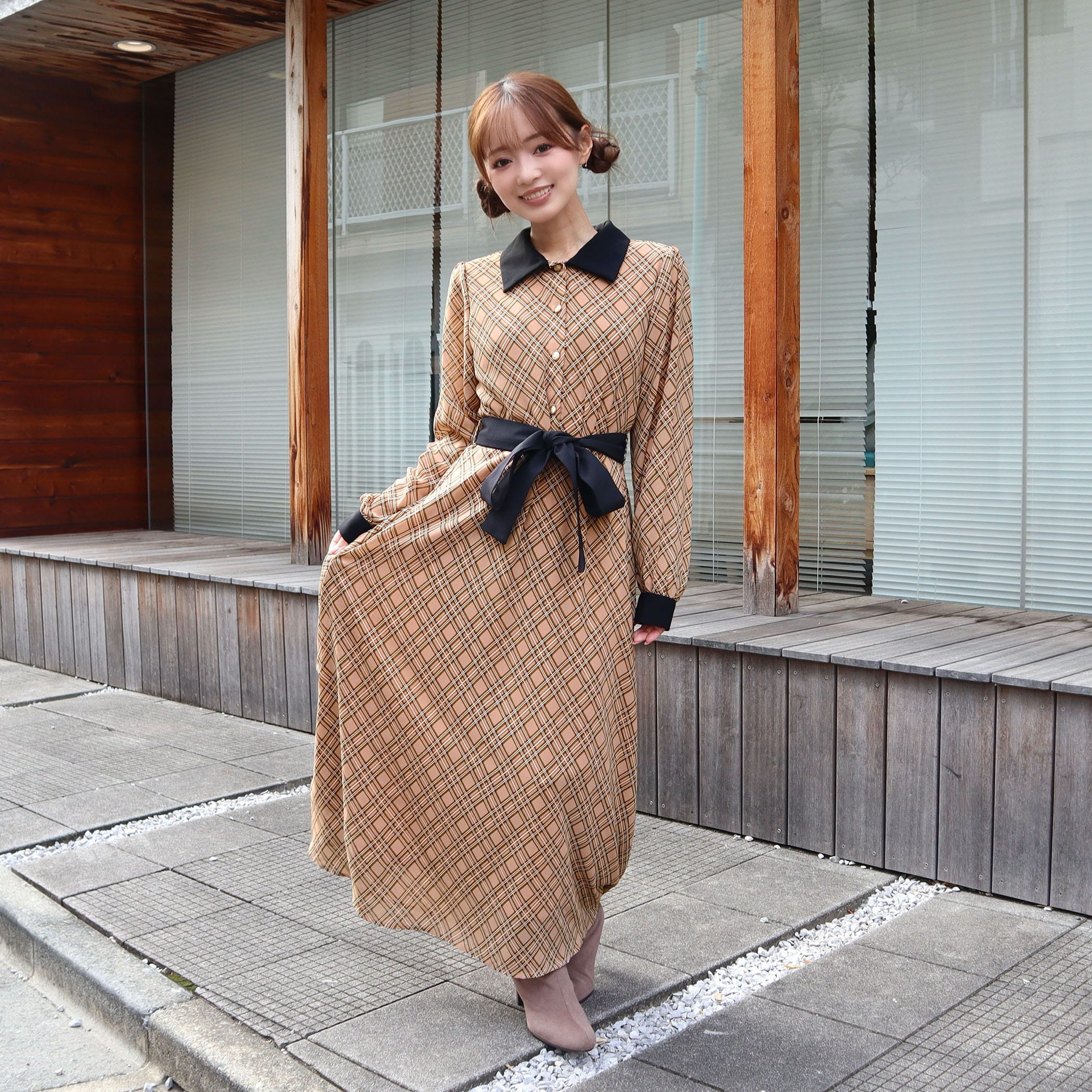 着用するだけでクラシカルなレトローコーデが完成するワンピース。ウエストのリボンと配色の襟、ゴールドのボタンもポイント。袖口もふんわりとしたシルエットなので、よりガーリーな雰囲気に。ウエスト部分は付属のリボンをつけることによってスタイルアップ効果も◎ウエストのリボンはお好きな位置に結んでいただけます。ヒールの高いパンプスやサンダル、ローファーなどを合わせれば、よりクラシカルコーデの完成。ショートブーツなどを合わせれば少しカジュアルコーデに。後ろのウエスト部分はゴム仕様なので、ストレスフリーな着心地。ニットカーディガンなどとレイヤードして着用していただくのもおすすめです。■前ボタン開き■ウエストゴム仕様■袖口ボタン付き■ベルトループ付き■裏地付き