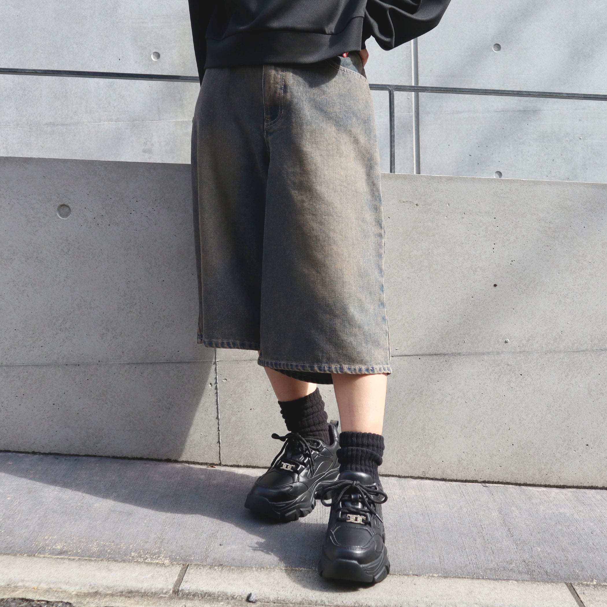 今季トレンドのハーフパンツは一枚で存在感のあるヴィンテージライクな加工がこなれ感を演出。ルーズでボリューミーな程よいワイドシルエットが今っぽく、柔らかいデニム素材でストレスフリーな履き心地◎オールシーズン着用可能でカジュアルな日常使いからおしゃれなアウトドアシーンまで幅広く活躍。