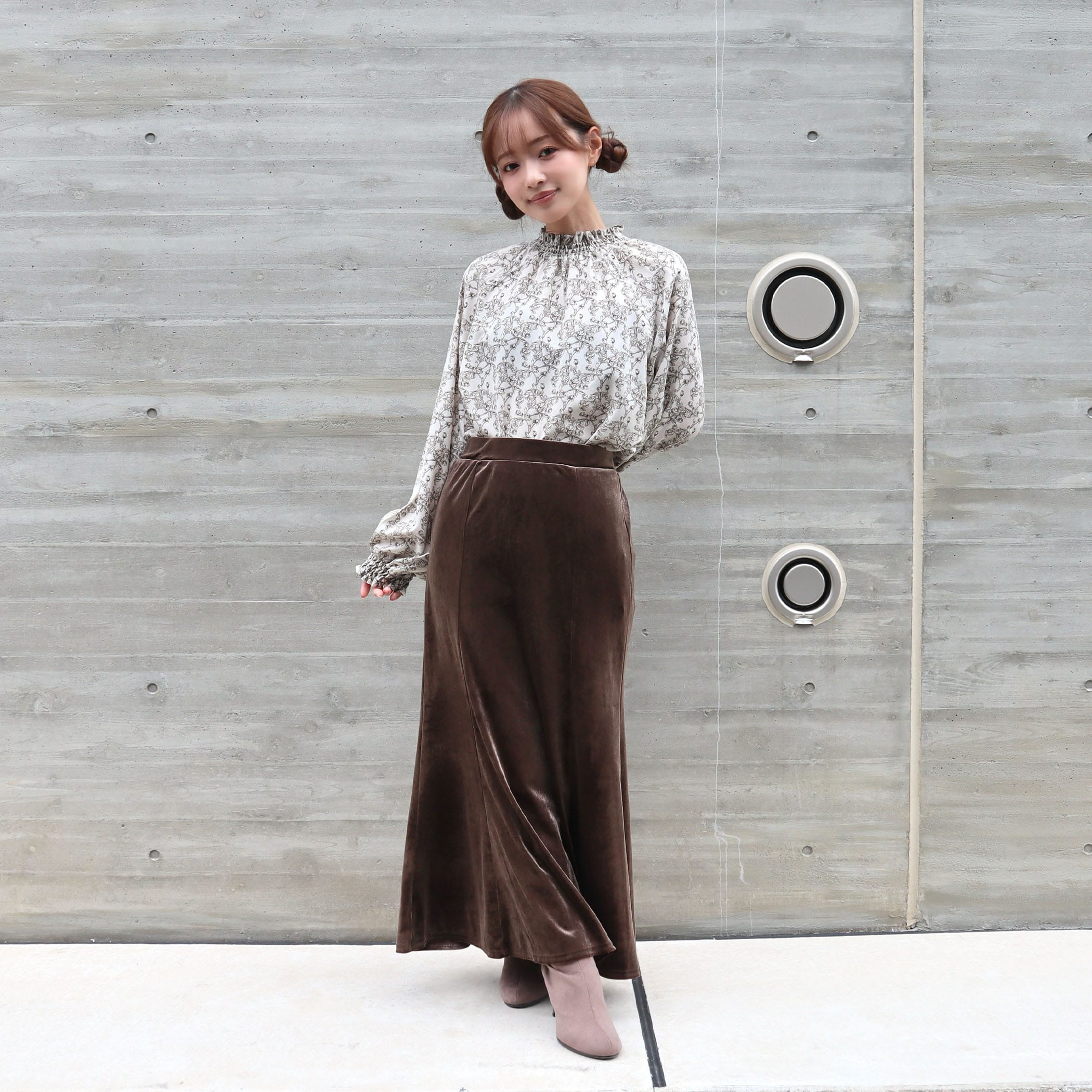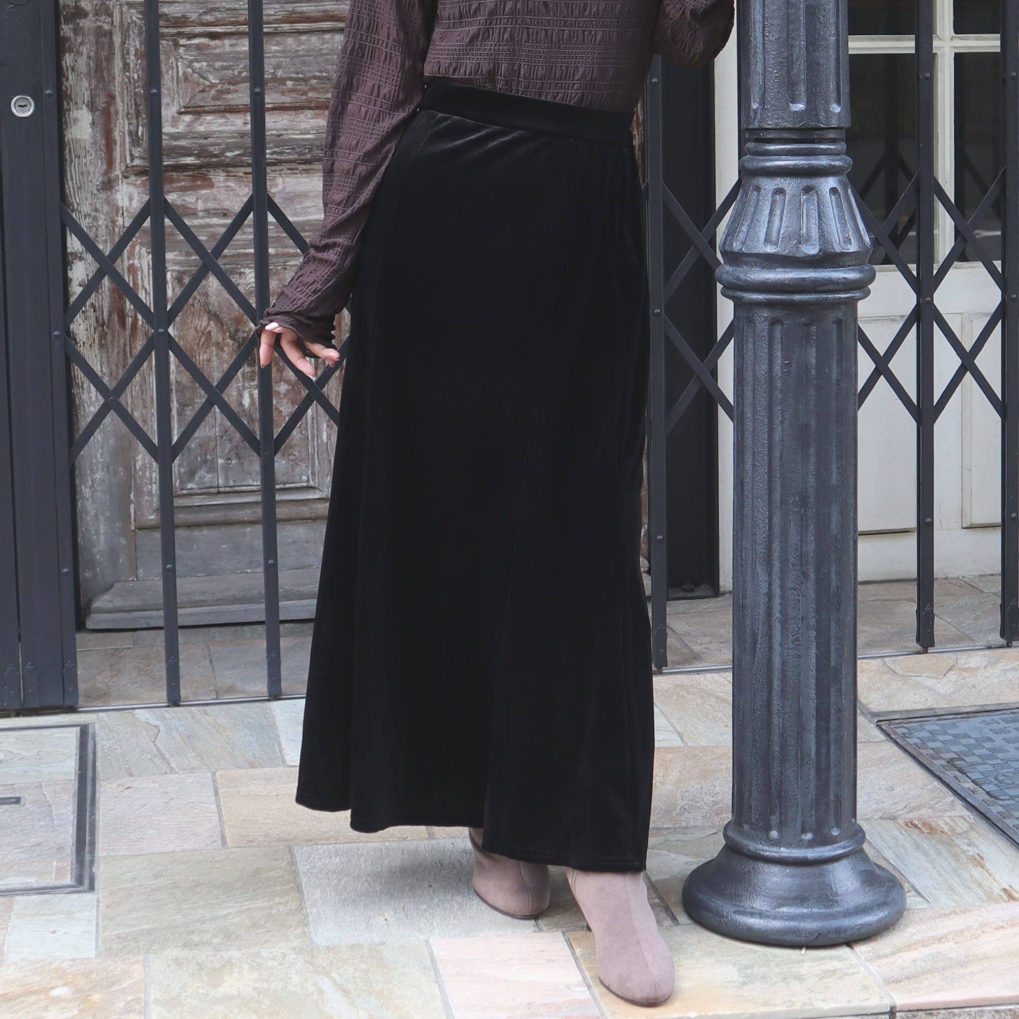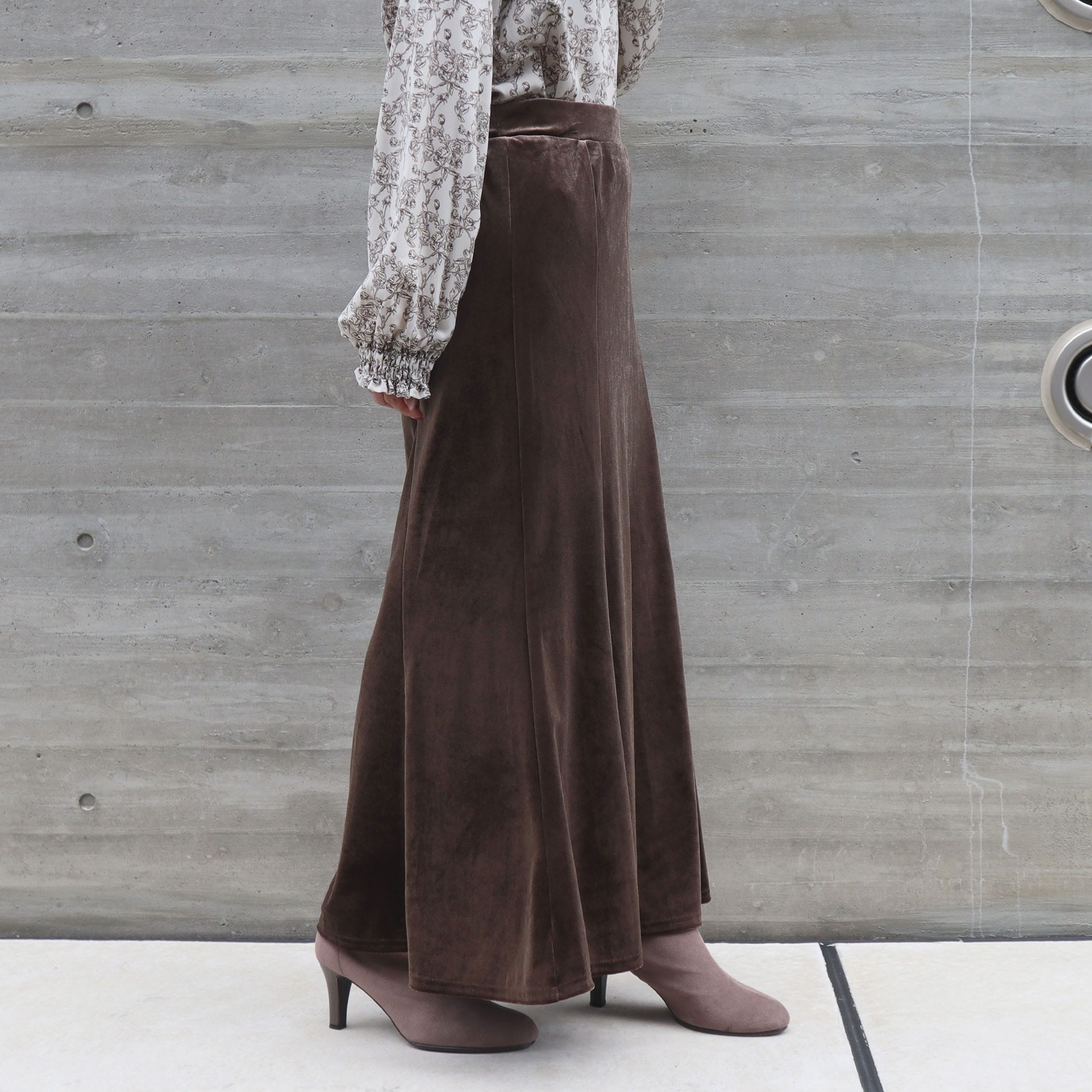 着映えする華やかな秋冬コーデにぴったりなベロアプリーツスカート。こなれた印象を演出し、動くたびに光沢感が高見えします。マーメイドラインのシルエットが様々なトップスとのバランスが取りやすく、綺麗め~カジュアルな雰囲気まで幅広いコーデがしやすい万能アイテムです。