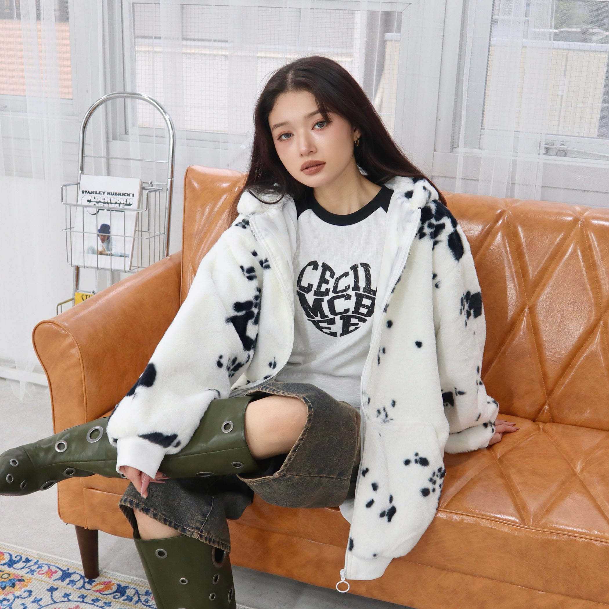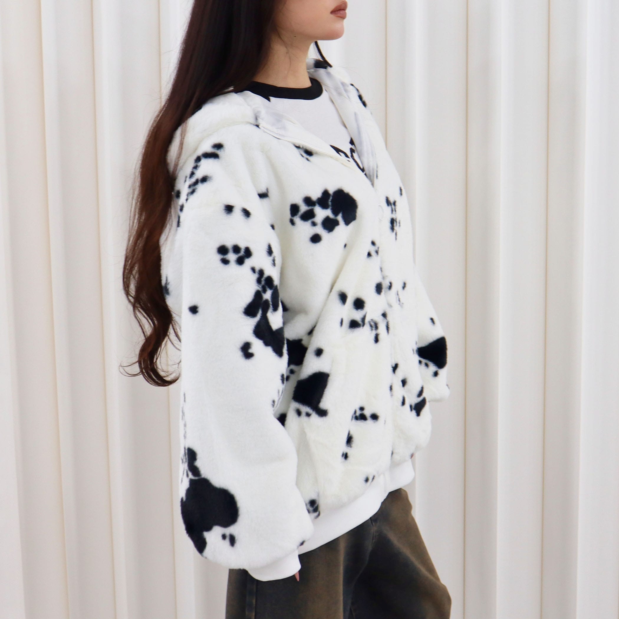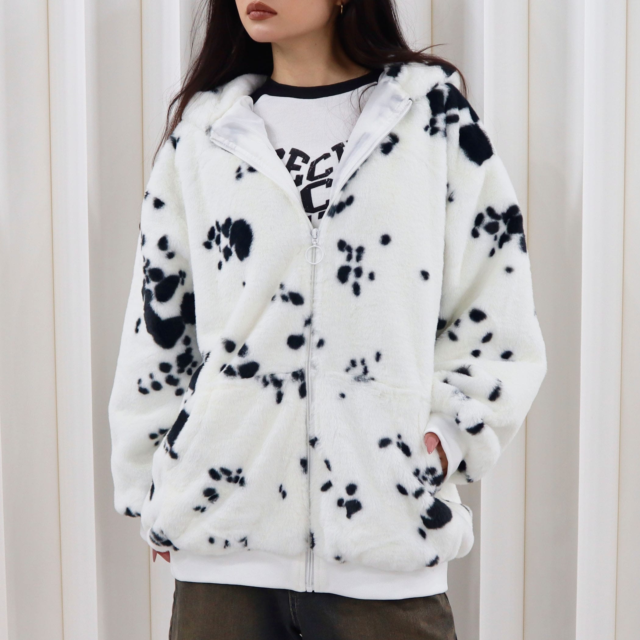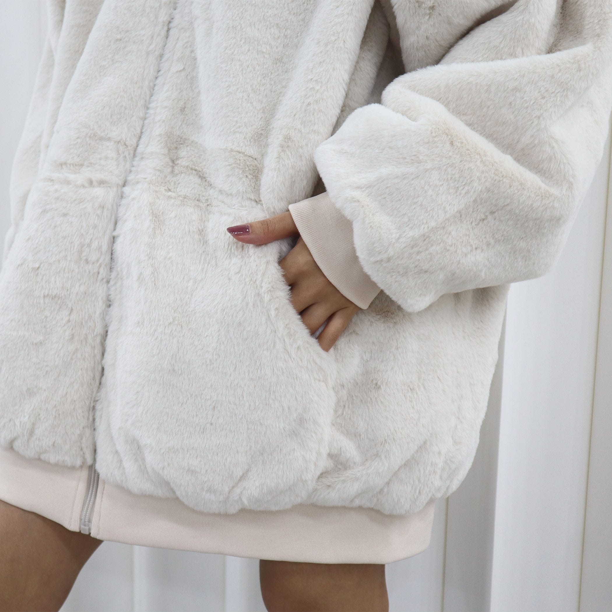 思わず触れたくなるような、ふわふわのファー素材が魅力的なでネコ耳付きのフーディアウター。大きめのサイズ感にゆ丸みのあるシルエットが◎。ボトムはタイトからワイドまで幅広いデザインと相性が良く、着回しのできる一枚です。