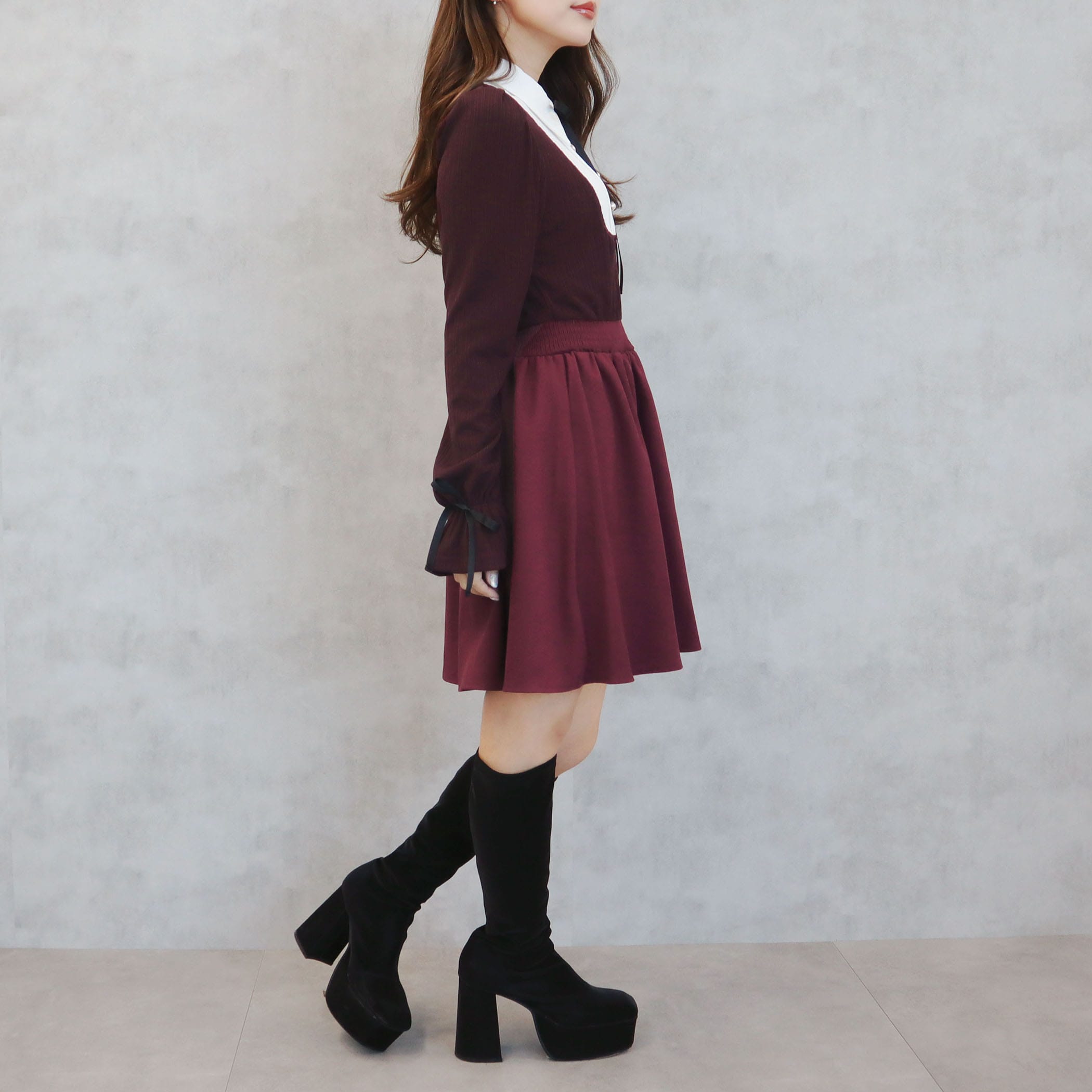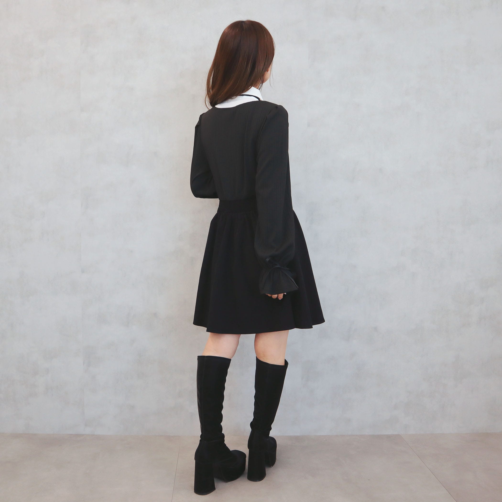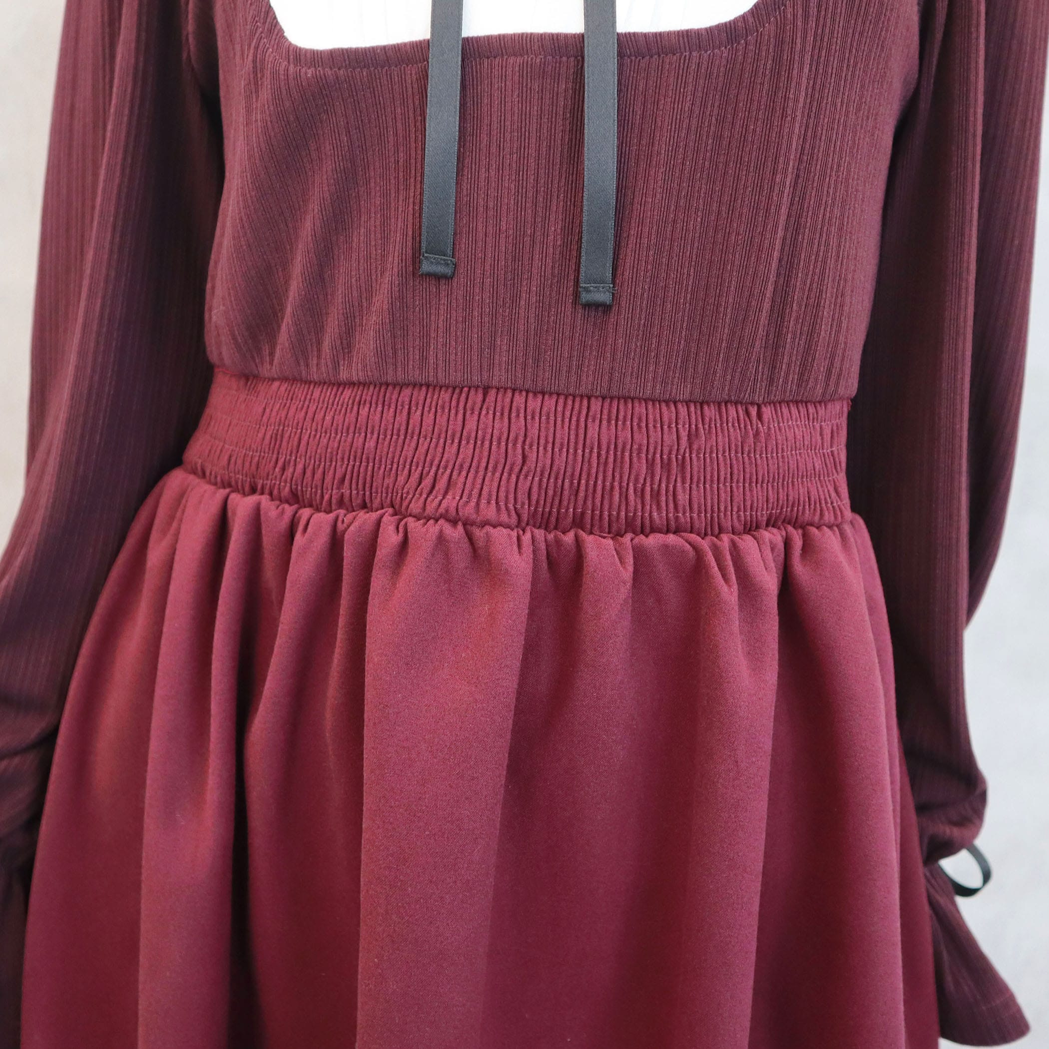 クラシカルでレトロな雰囲気のミニワンピース。ウエスト部分はシャーリングゴム仕様になっているので、快適に着用いただけます。着用するだけできちんとした雰囲気も出るアイテムなので、ちょっとしたお呼ばれやパーティーなどにもおすすめです◎厚底のパンプスやローファーなどと合わせればよりクラシカルでガーリーな雰囲気のコーディネートに。ショートブーツなどと合わせれば少しカジュアルなガーリーコーデの完成。秋服シーズンは1枚で、冬服シーズンはニットのカーディガンなどとレイヤードして着用するのもおすすめです。