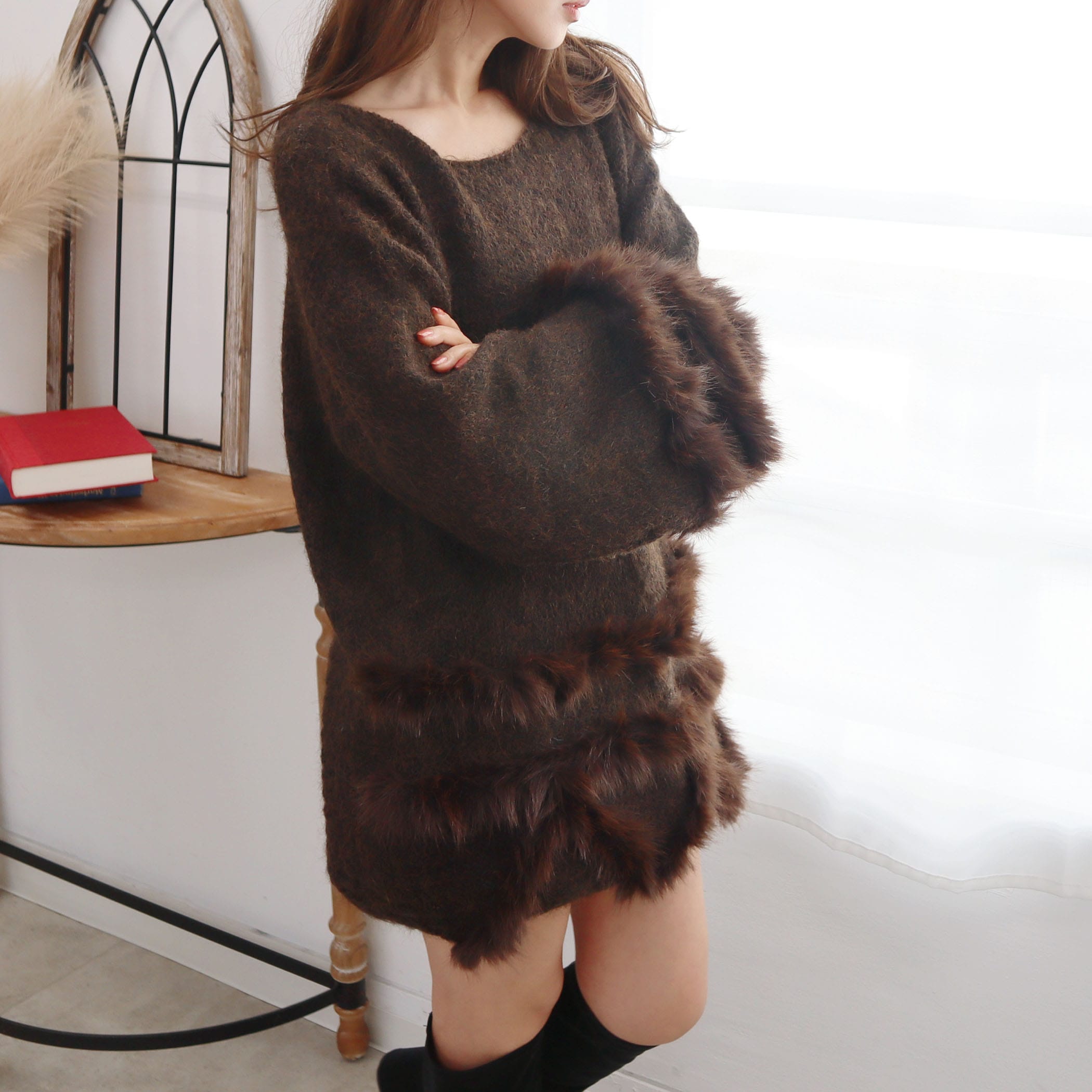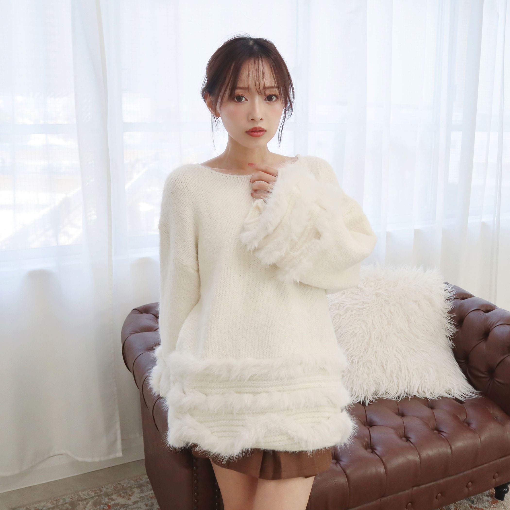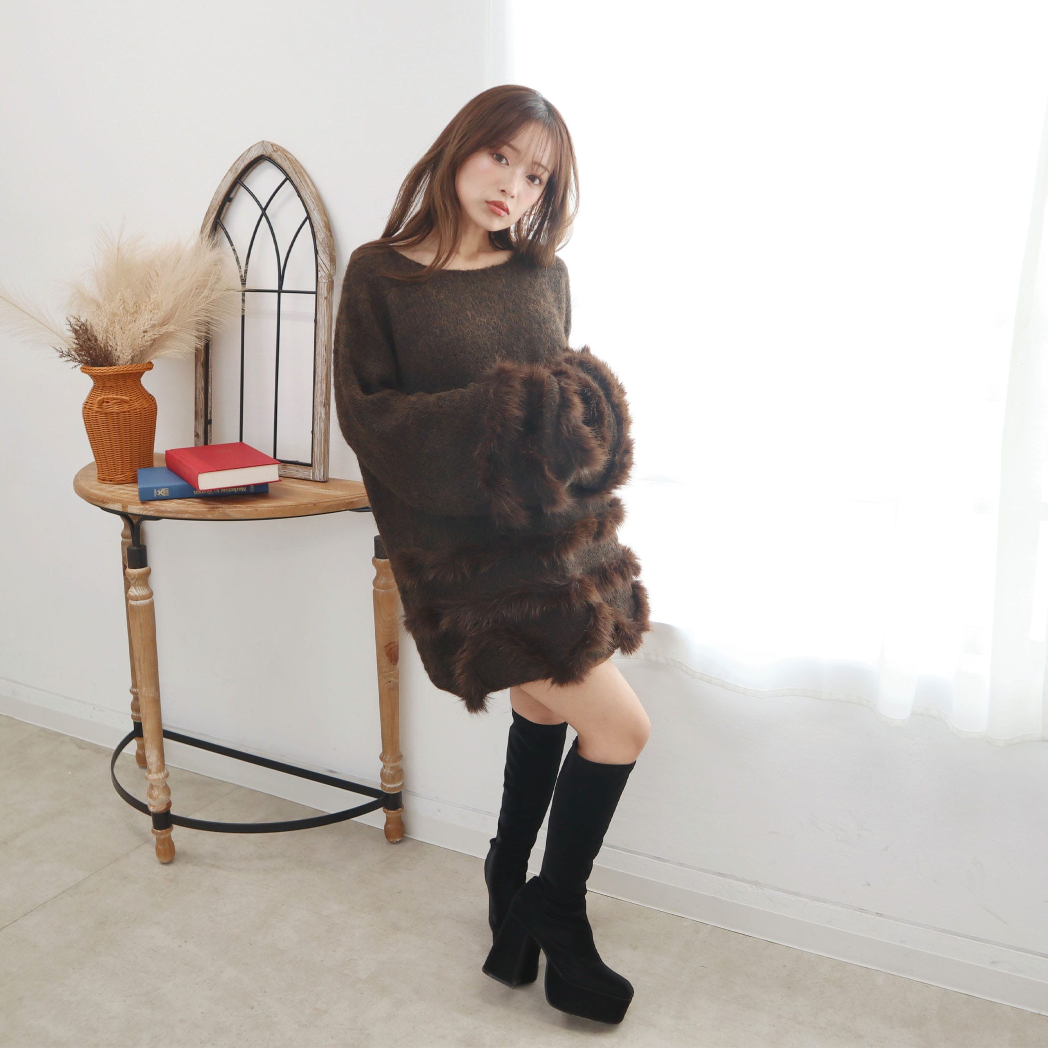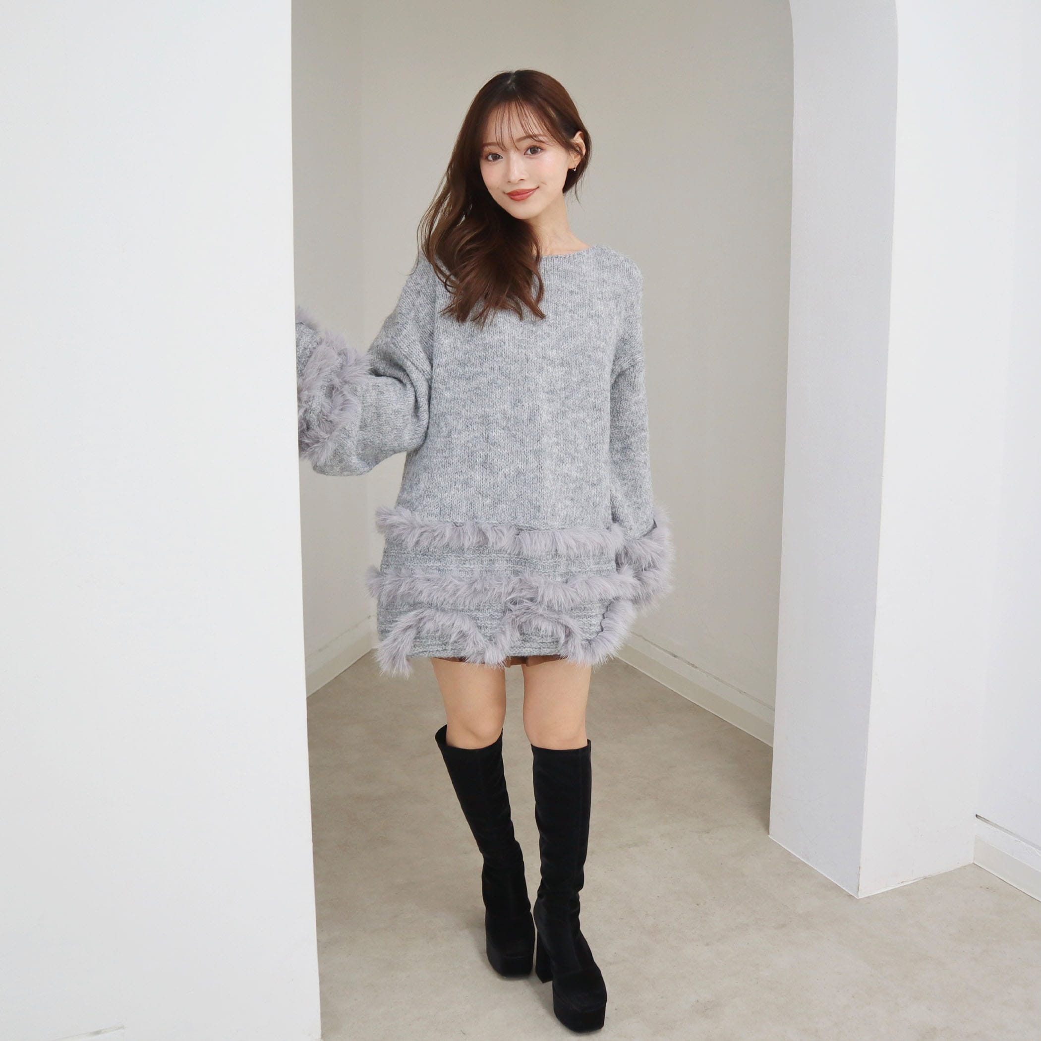 袖口と裾のふわふわファーがポイントのニットチュニック。シンプルながらも女性らしさを引き立てるシルエットで、デートやお出かけにもぴったりな1枚です。ふんわりファーがシーズンムードを高めてくれる主役級ニットワンピ。