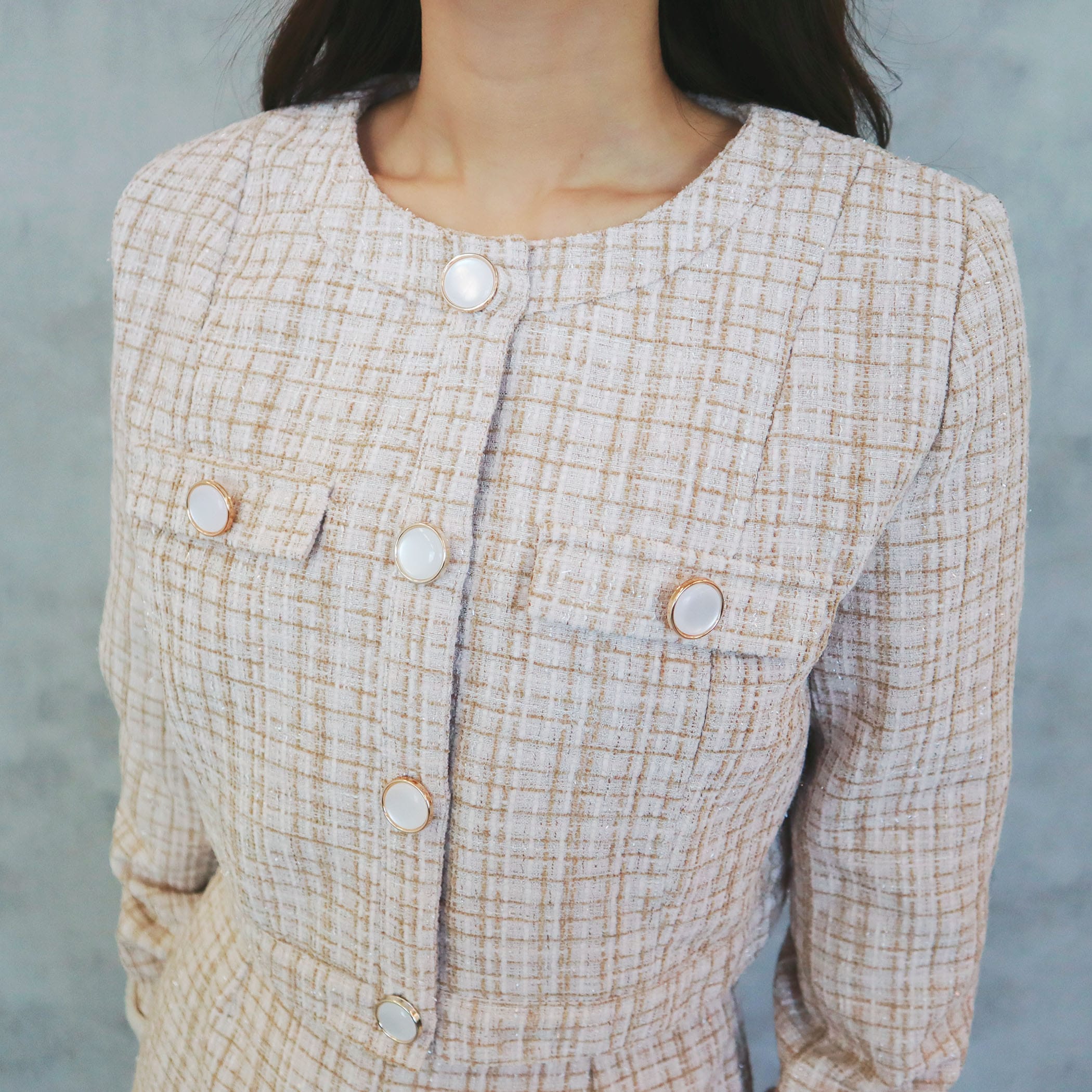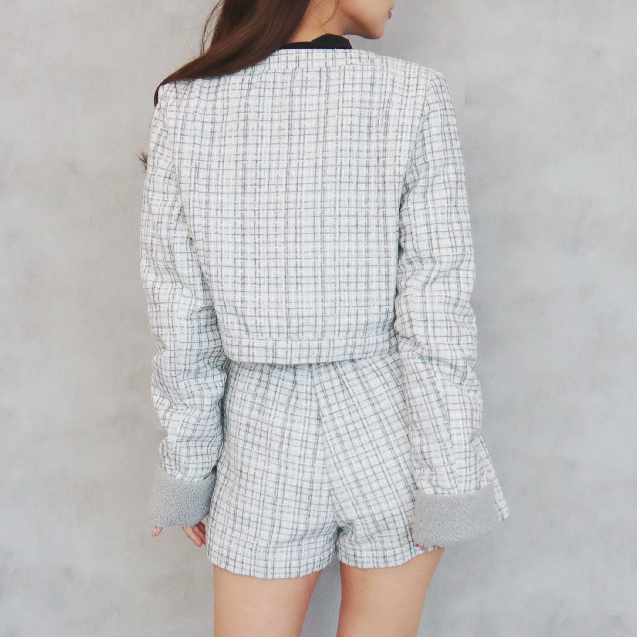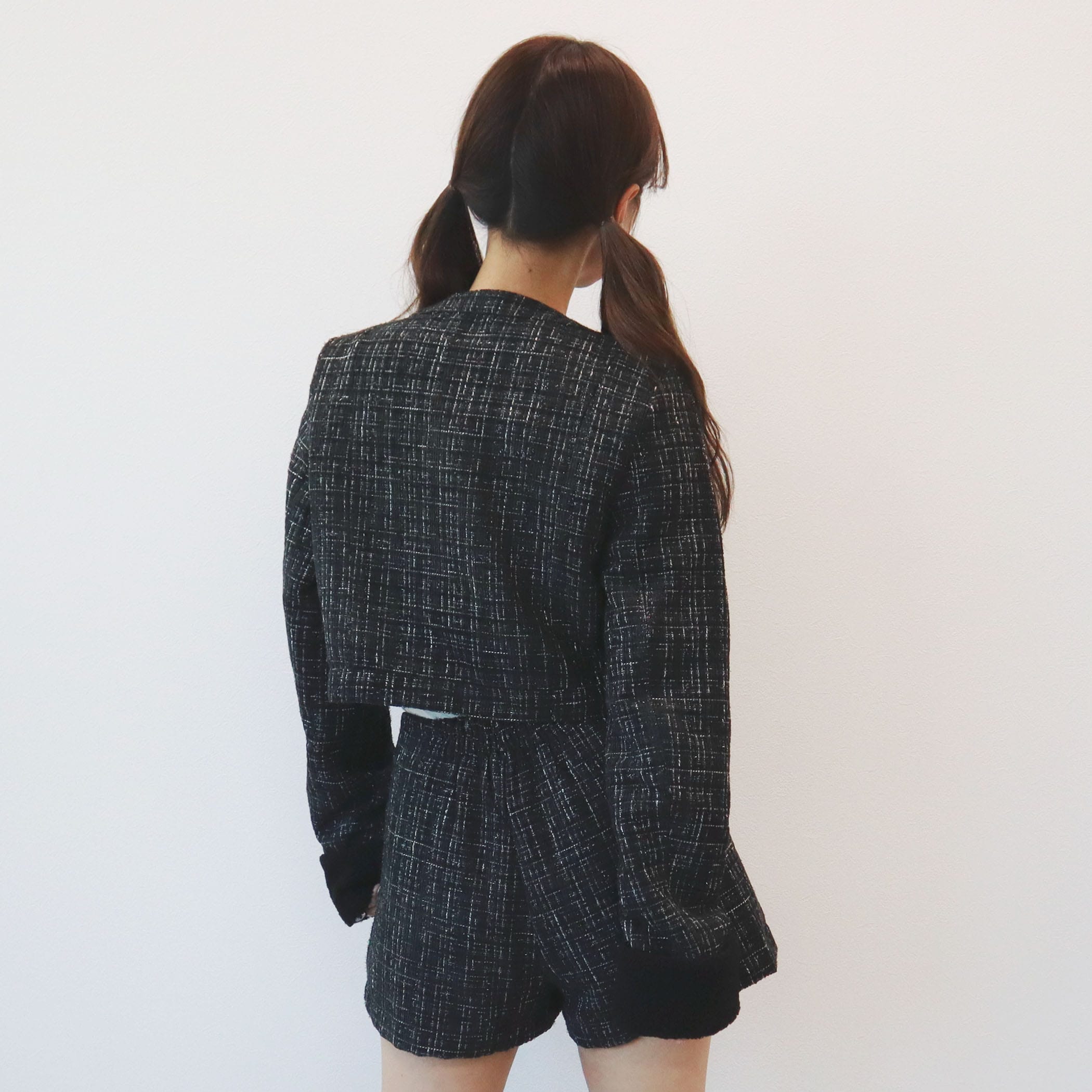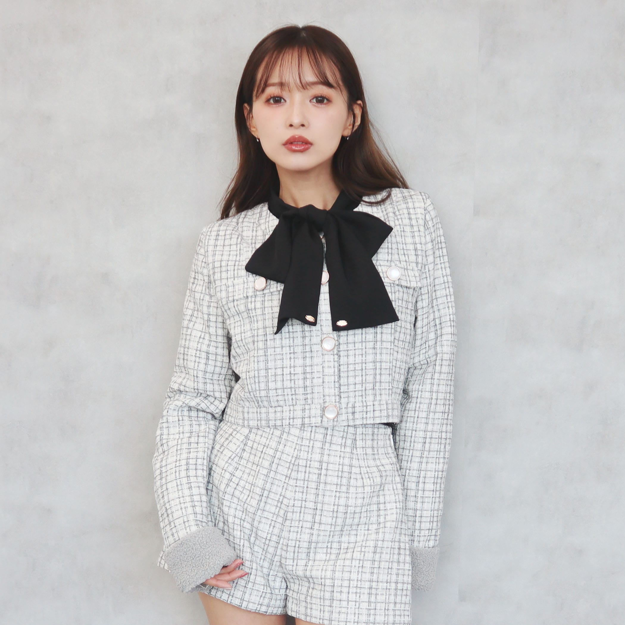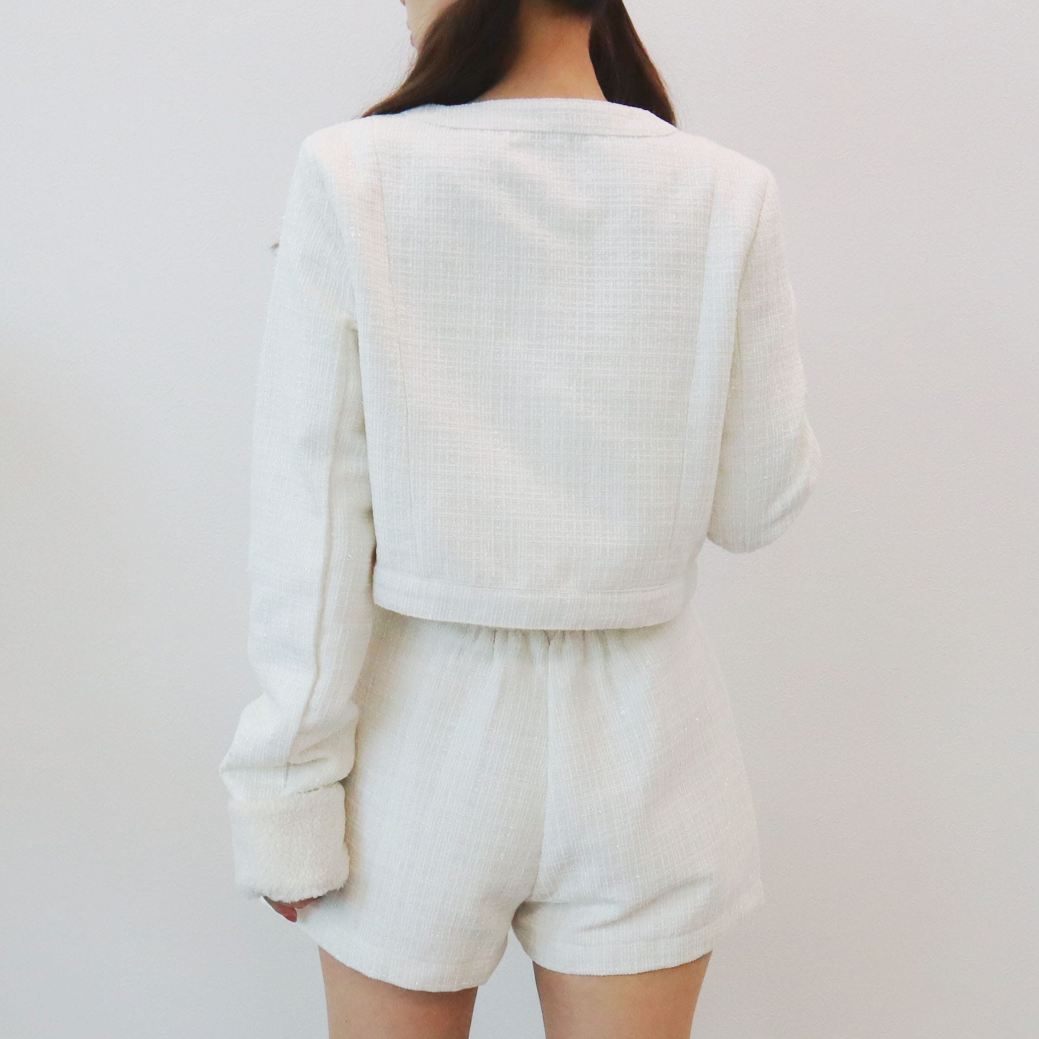 ほんのりのラメが可愛いボア取り外し可能のツイードショート丈ジャケット。ツイード素材×大き目ボタンでキチンと魅えに◎レトロな雰囲気はオフィスカジュアルからデニム合わせの大人キレイ目カジュアルまで幅広く楽しめます。ツイード素材は春服コーデは勿論の事、秋服冬服コーデにも◎