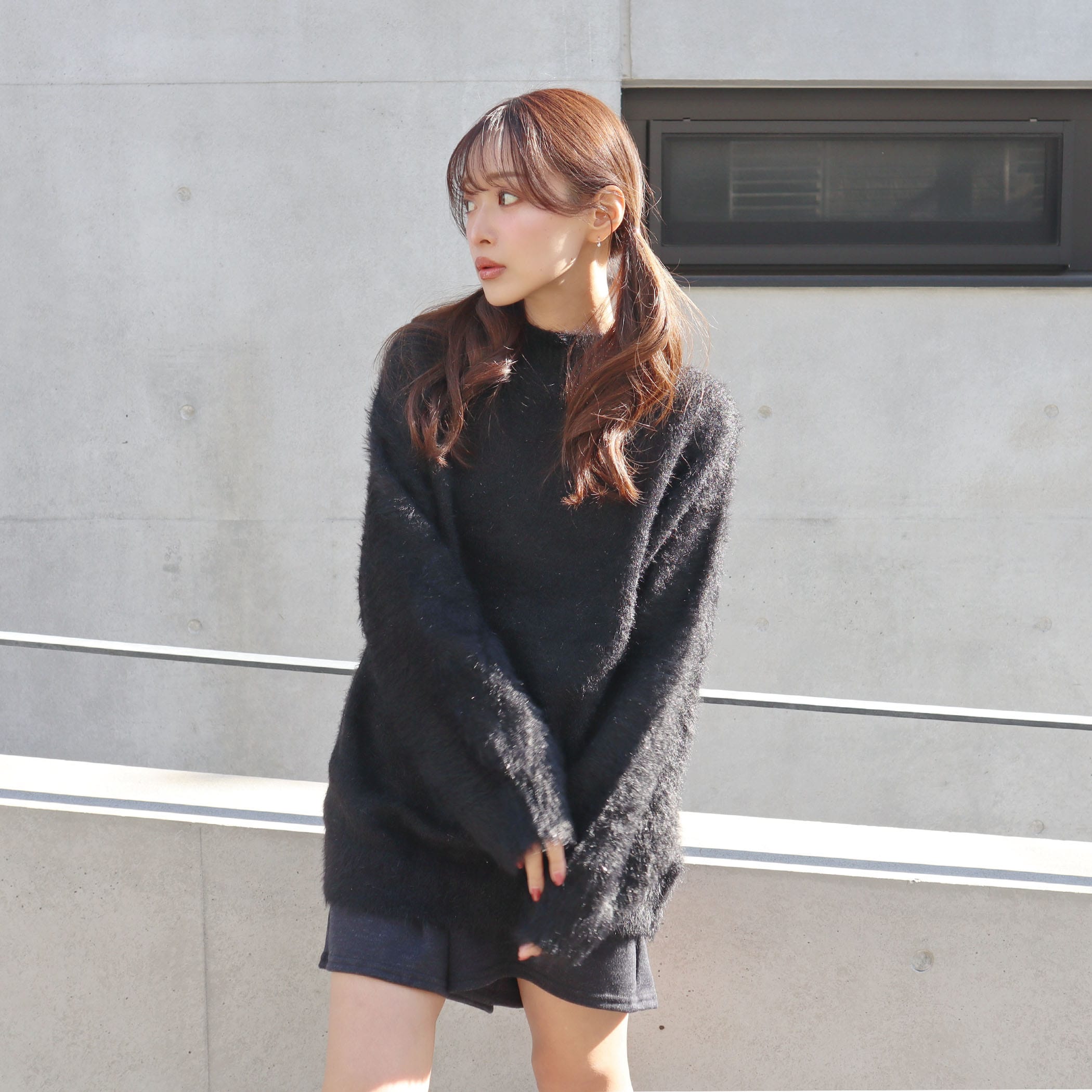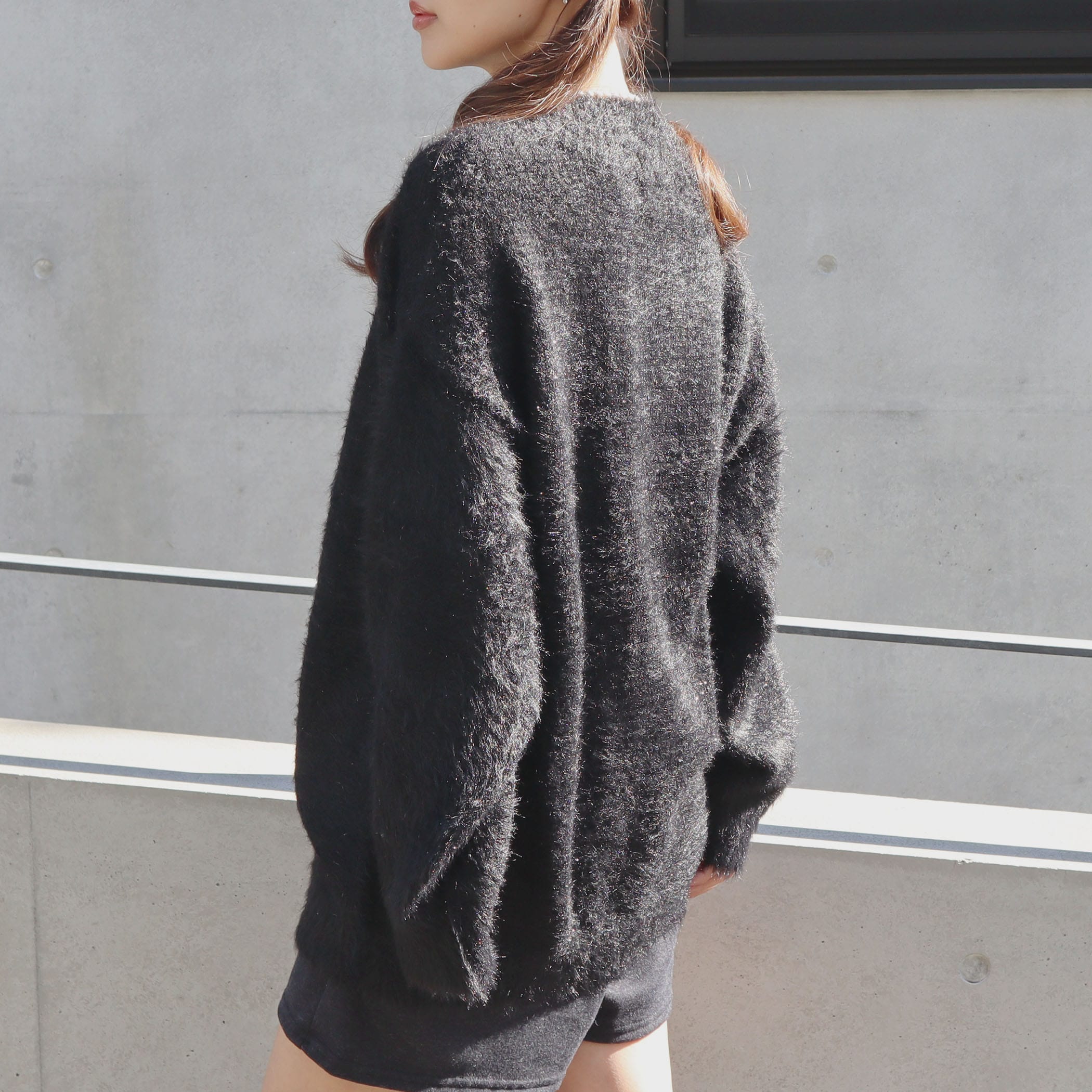 トレンドライクなラメ感のあるニットプルオーバー。毛足の長いフェザーヤーンが女性らしい印象に。柔らかく落ち感がある肌触りのよいニットです。ワイドパンツ、ショートパンツ、スカートなどボトムを選ばず着られる万能な1枚です。さりげないラメ感が派手過ぎず、合わせやすい1枚。ヒップをカバーしてくれ安心感も嬉しいポイント◎ショートパンツにロングブーツを合わせて旬なスタイリングに。タイトスカートで女性らしく、ワイドパンツ合わせのゆるコーデもおすすめです。