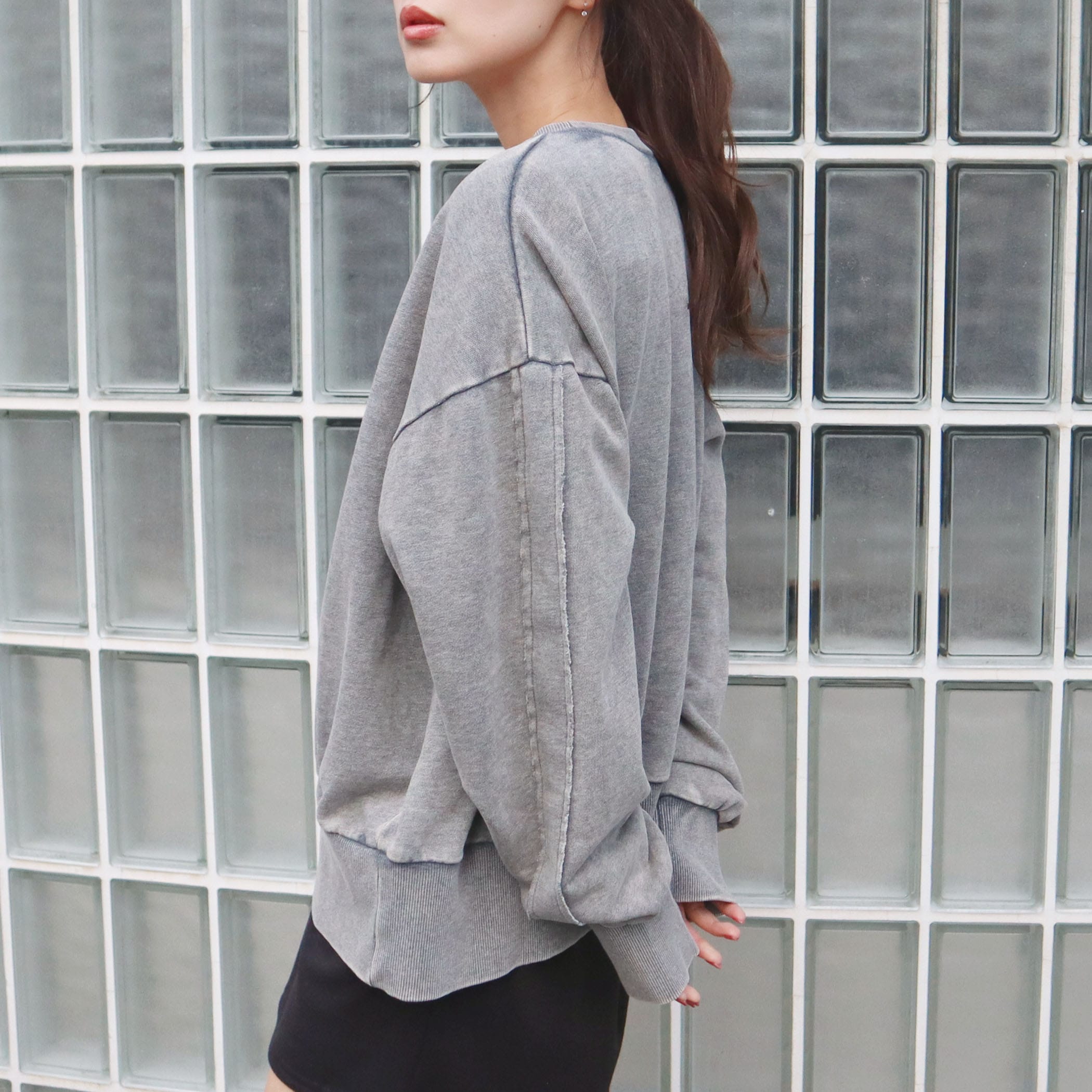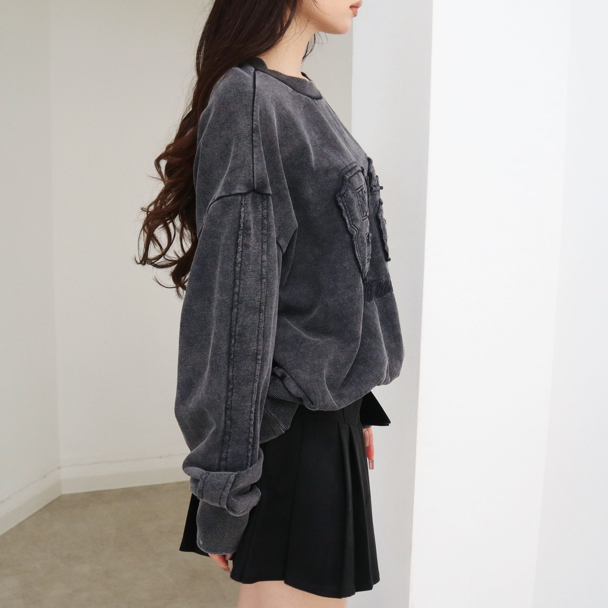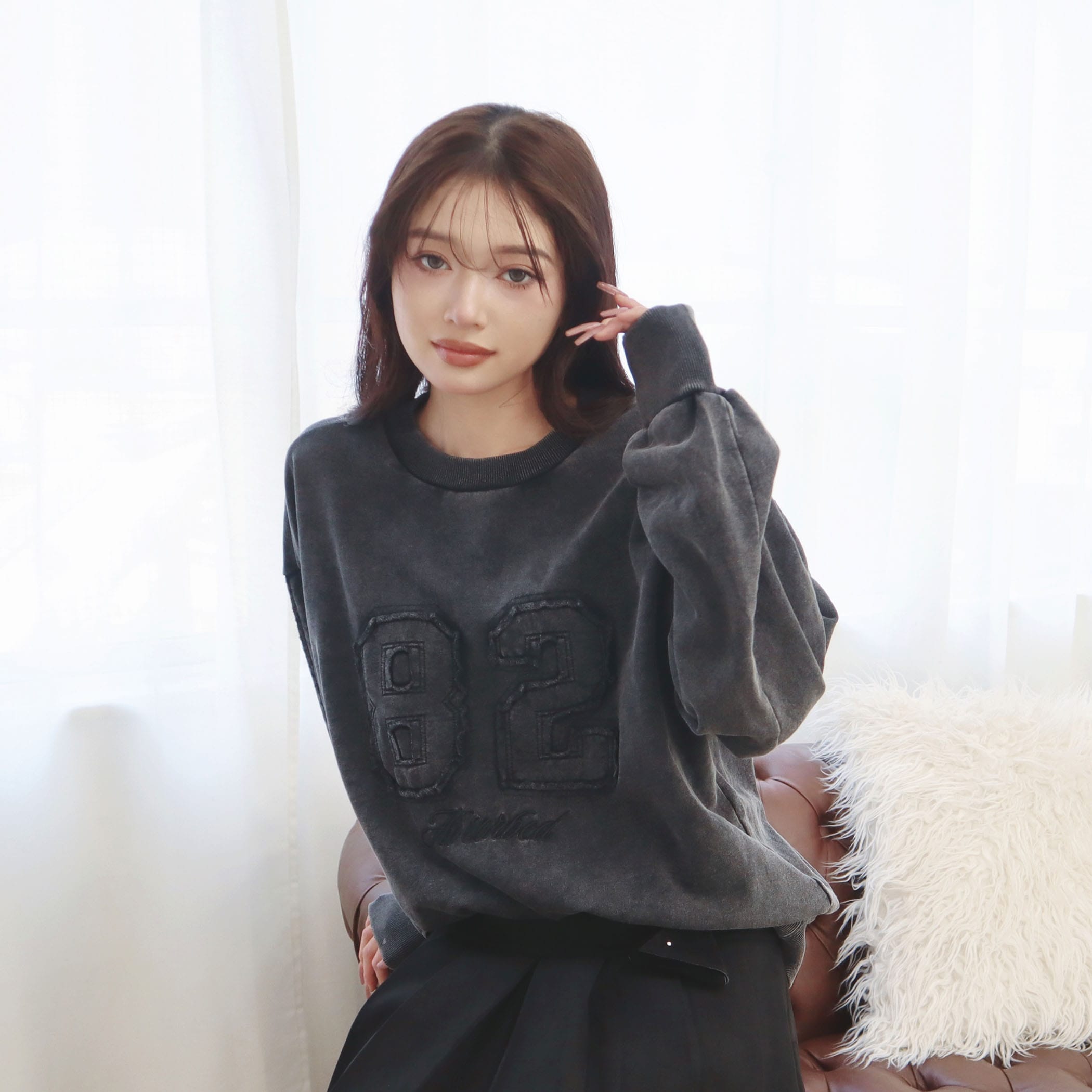 存在感のあるナンバーワッペンに、ほどよく抜け感のある刺繍ロゴを合わせたトレンド感たっぷりのスウェット。ゆるシルエット×リブ切替でラフに着られつつ、スタイリングにこなれ感をプラスしてくれます。