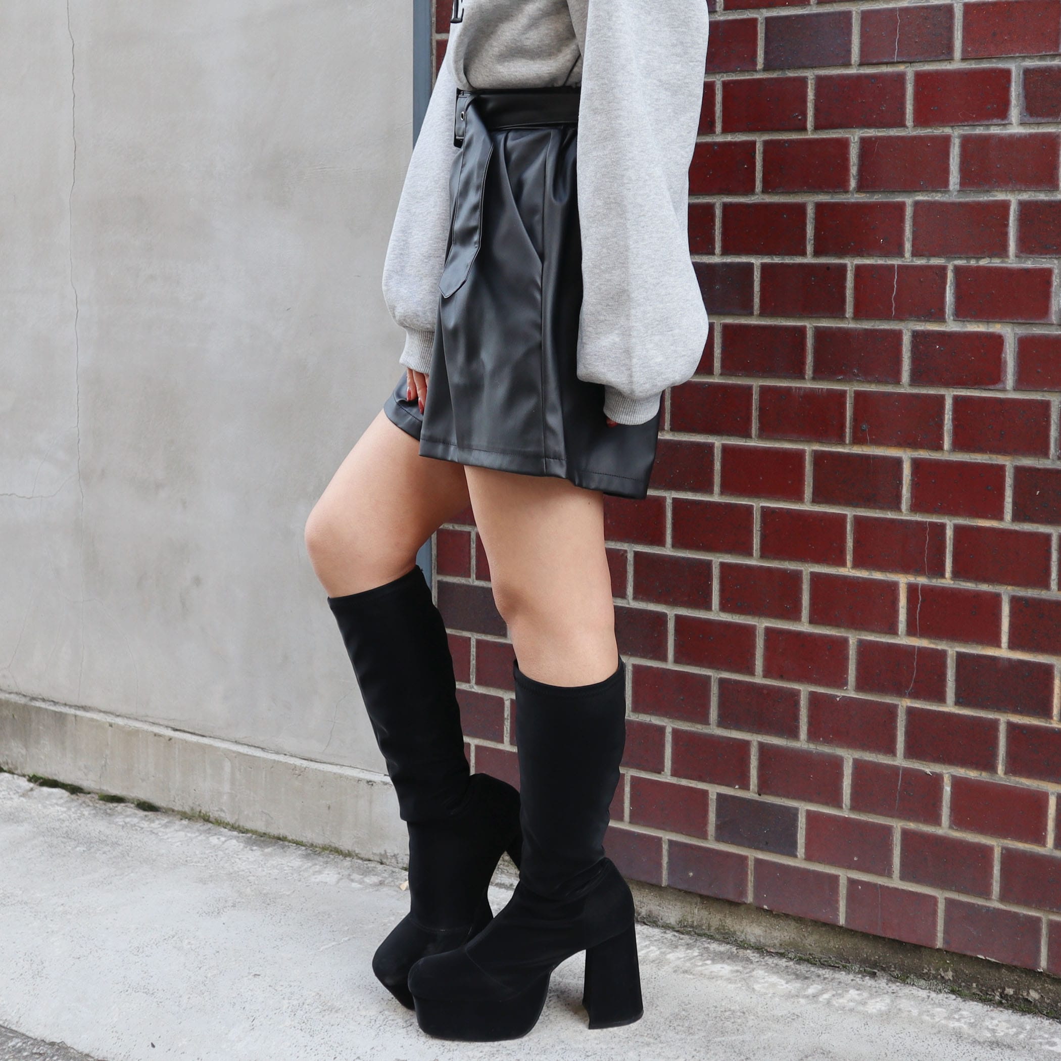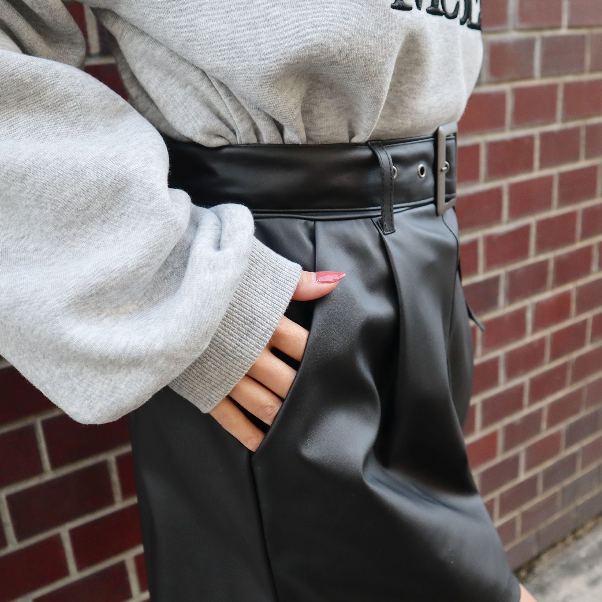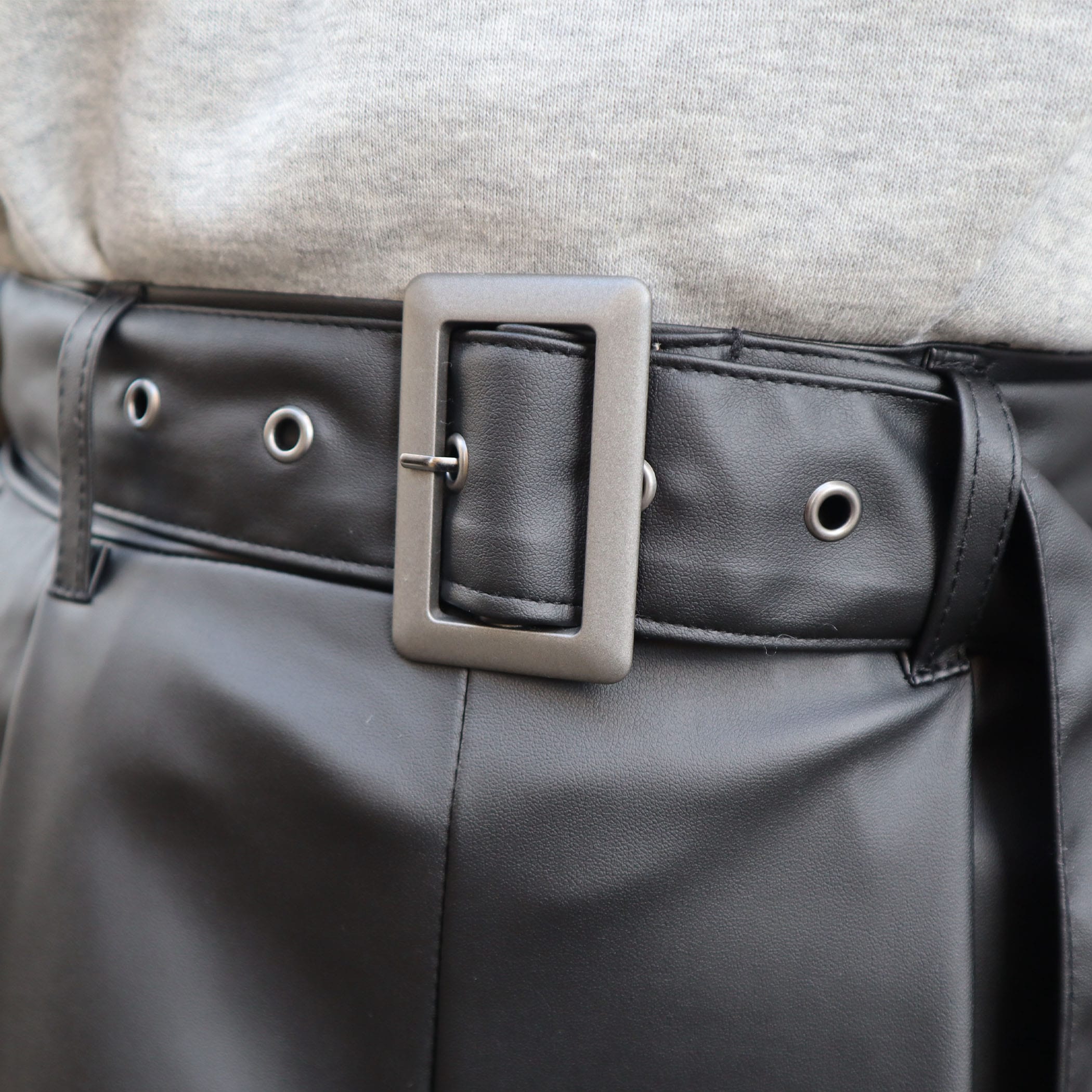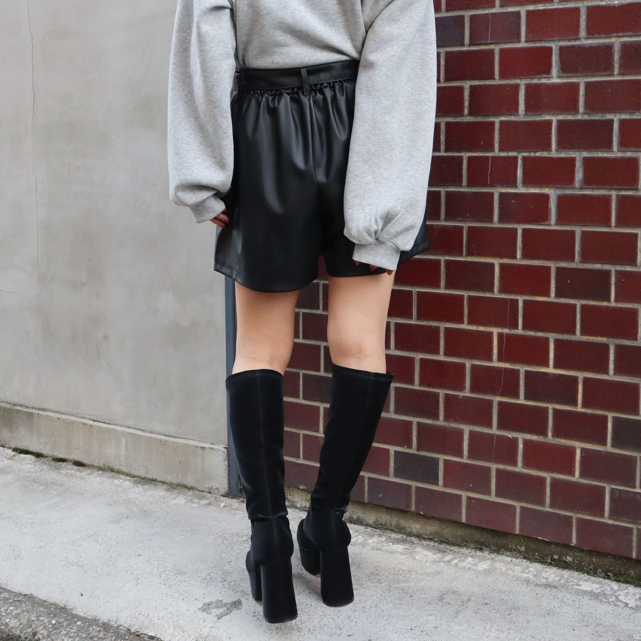 ベルト付き合皮ショートパンツ