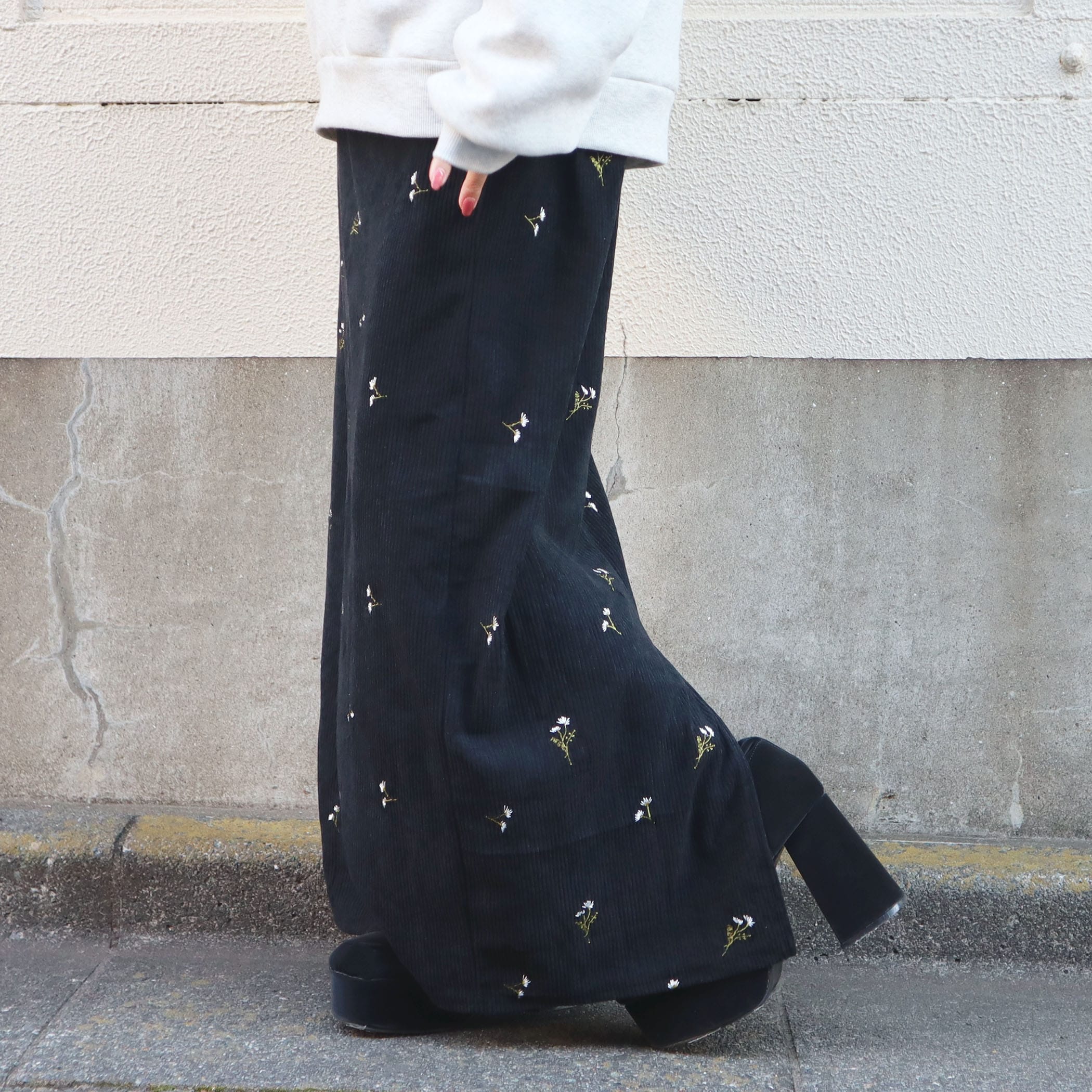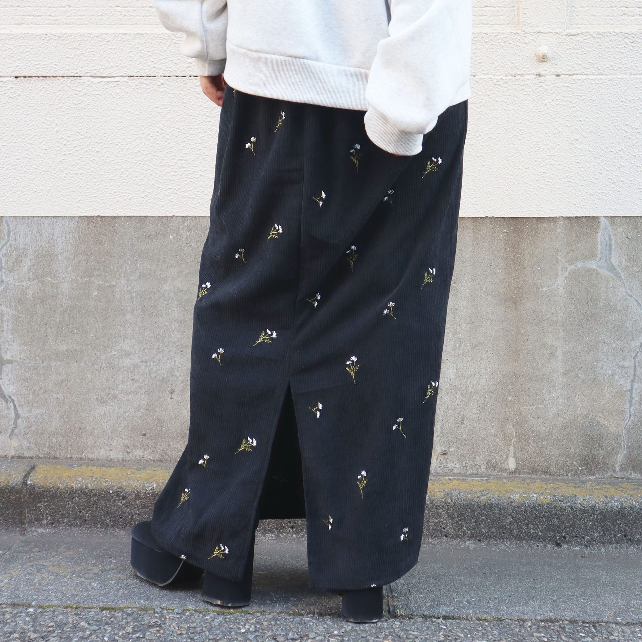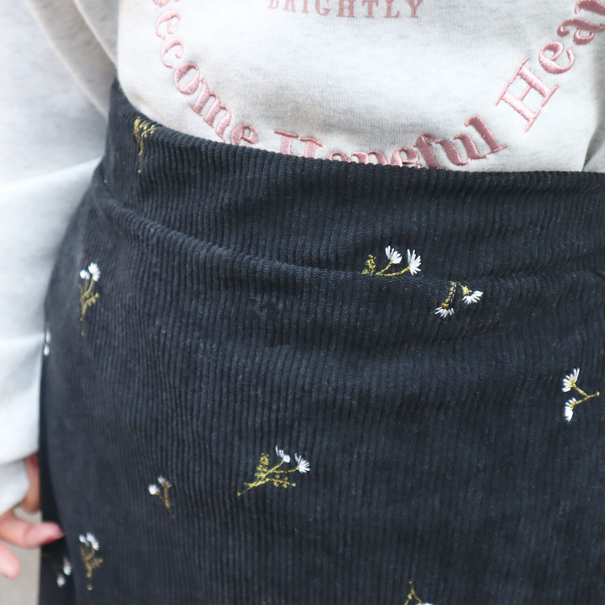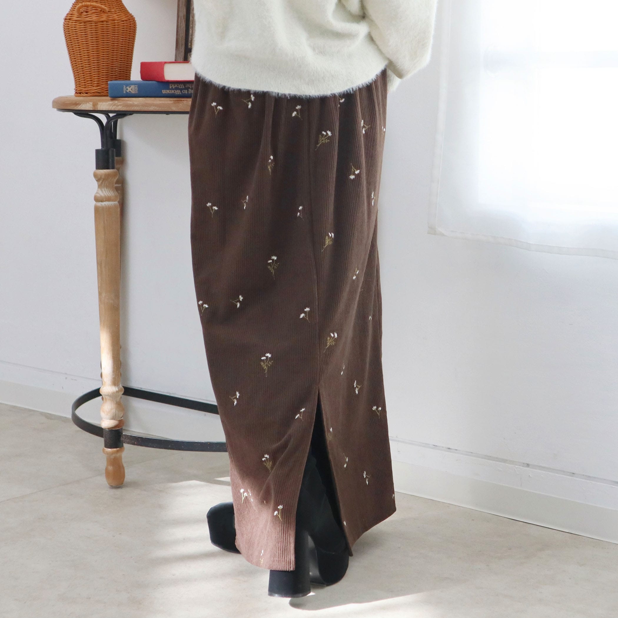 デイリーから特別な日まで幅広く活躍するベロアナロースカート。フラワー刺繍が目を惹くので、シンプルなカットソーやニットを合わせるだけで主役級の存在感を放ちます。合わせるトップス次第でカジュアルにも着こなせます。