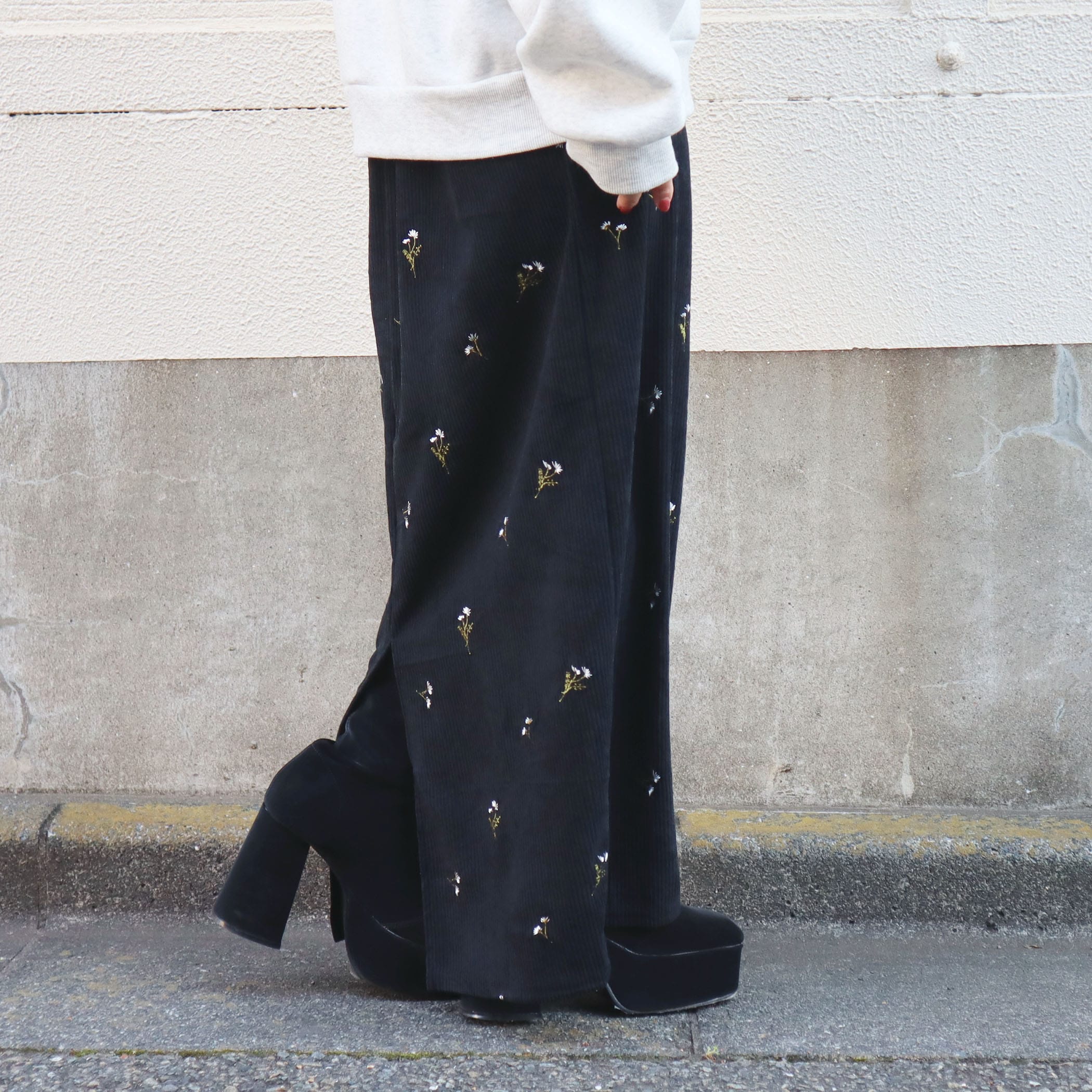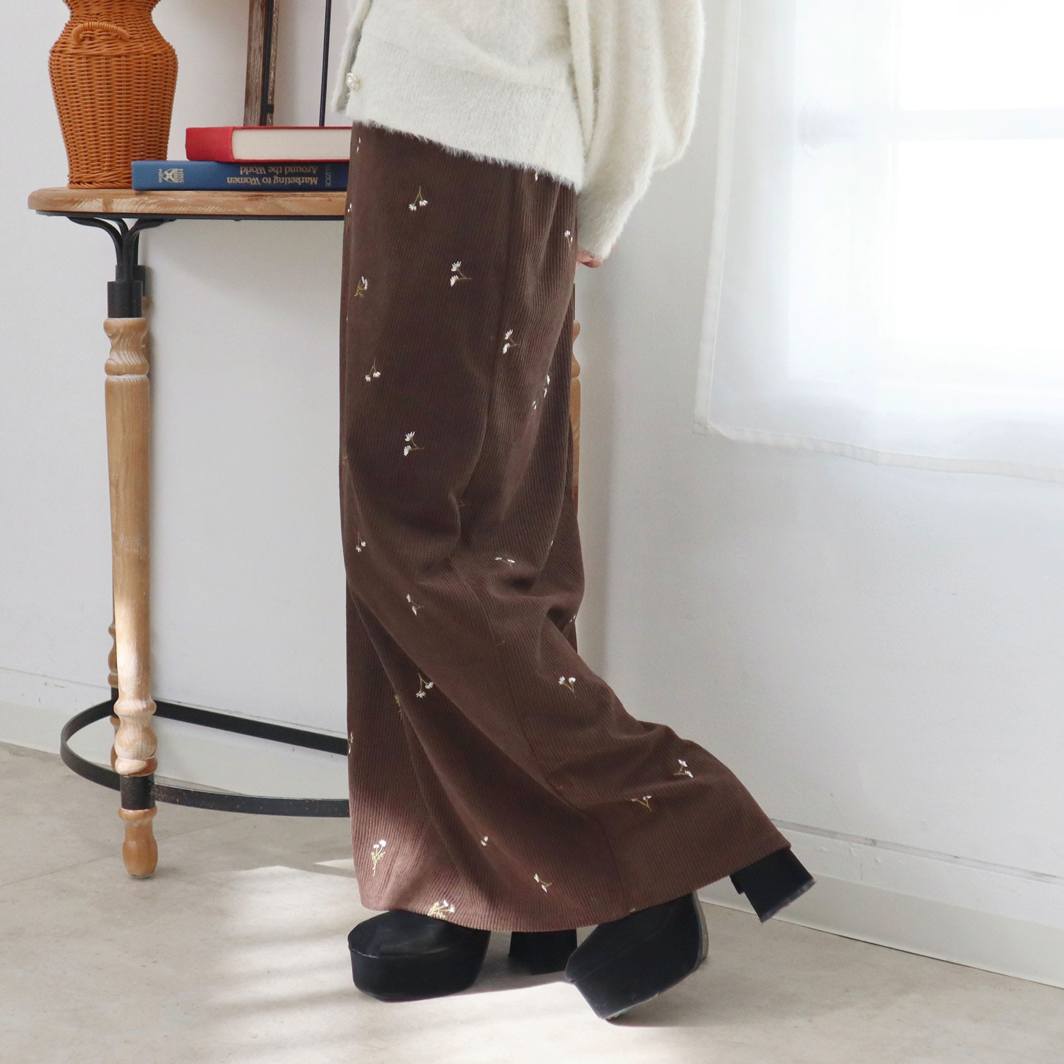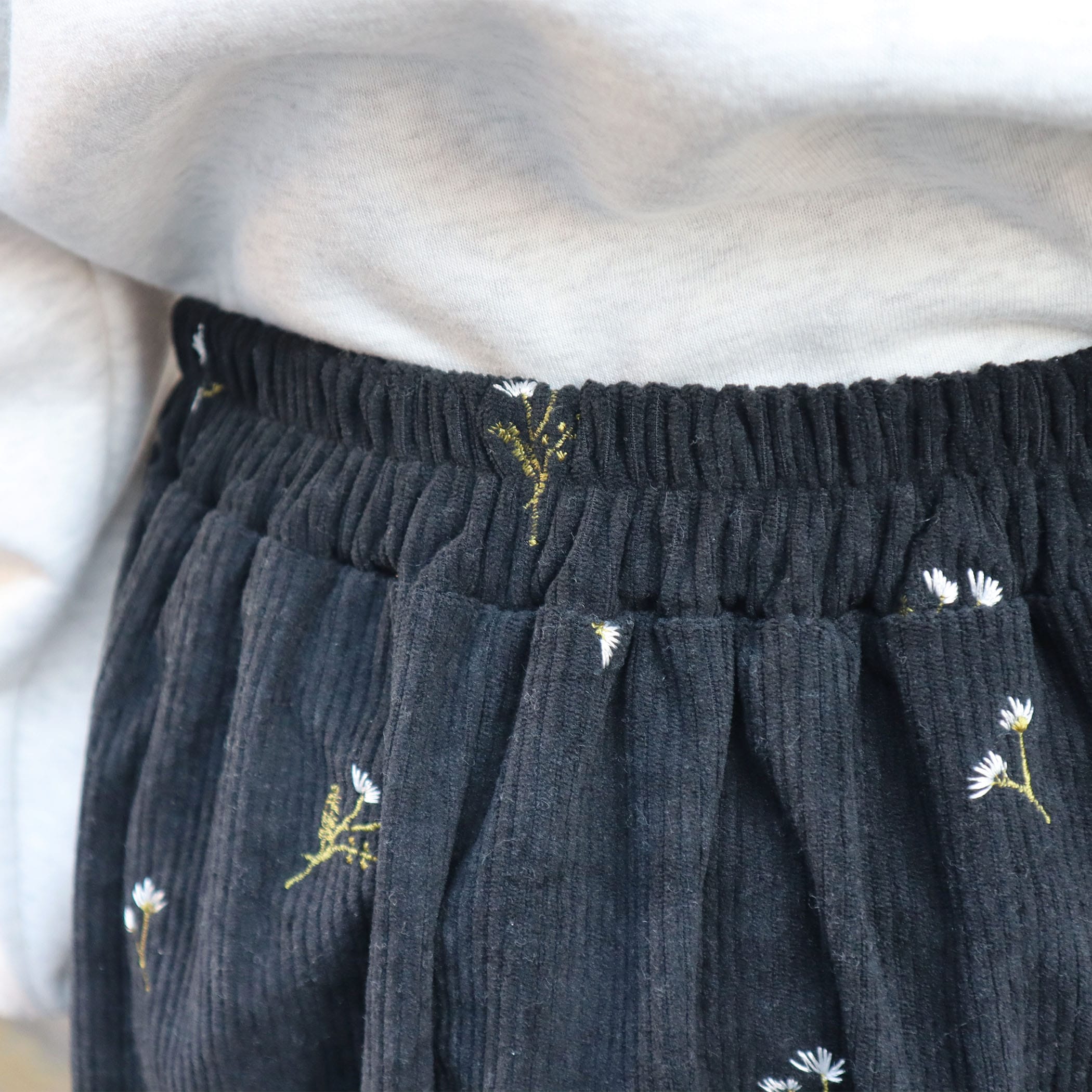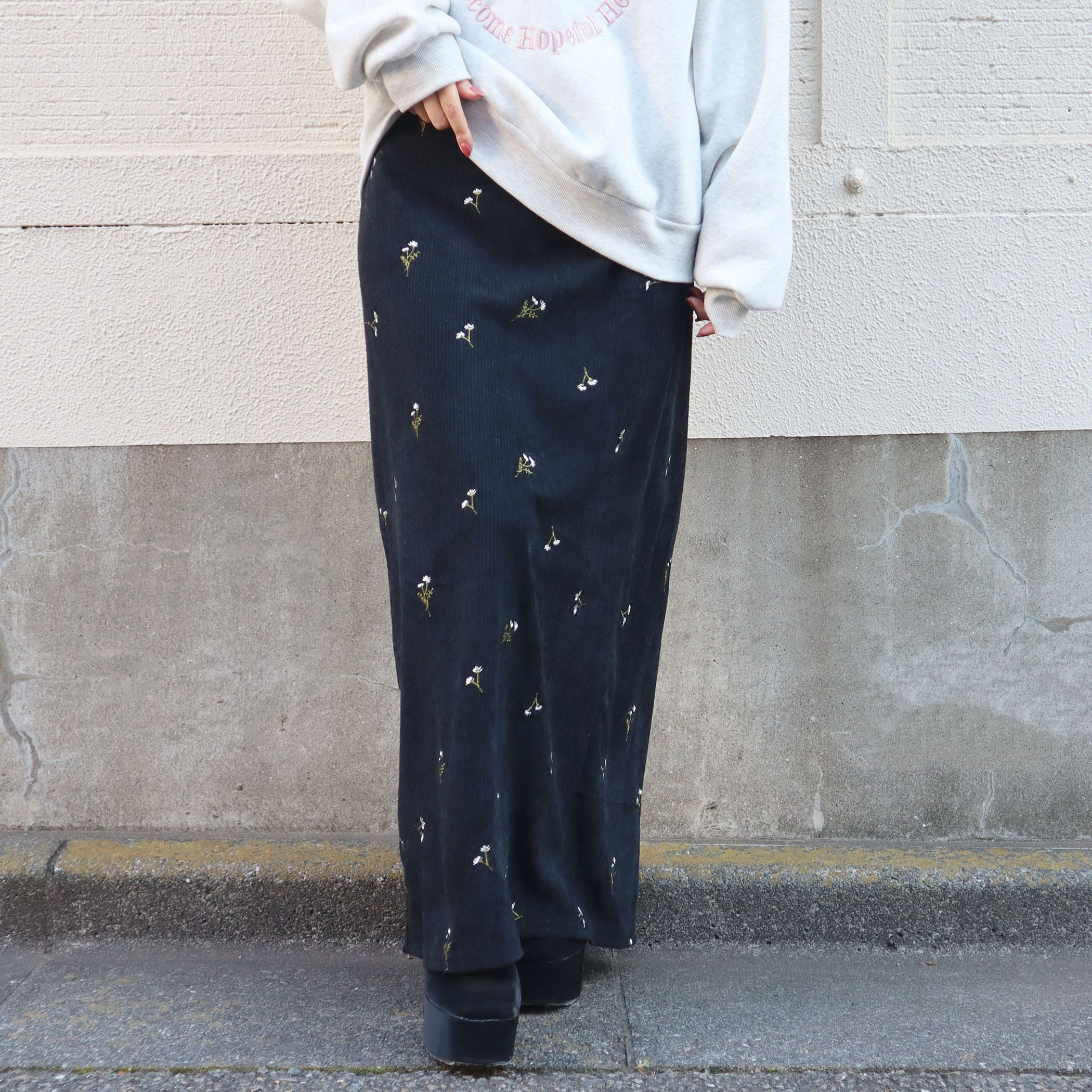 デイリーから特別な日まで幅広く活躍するベロアナロースカート。フラワー刺繍が目を惹くので、シンプルなカットソーやニットを合わせるだけで主役級の存在感を放ちます。合わせるトップス次第でカジュアルにも着こなせます。