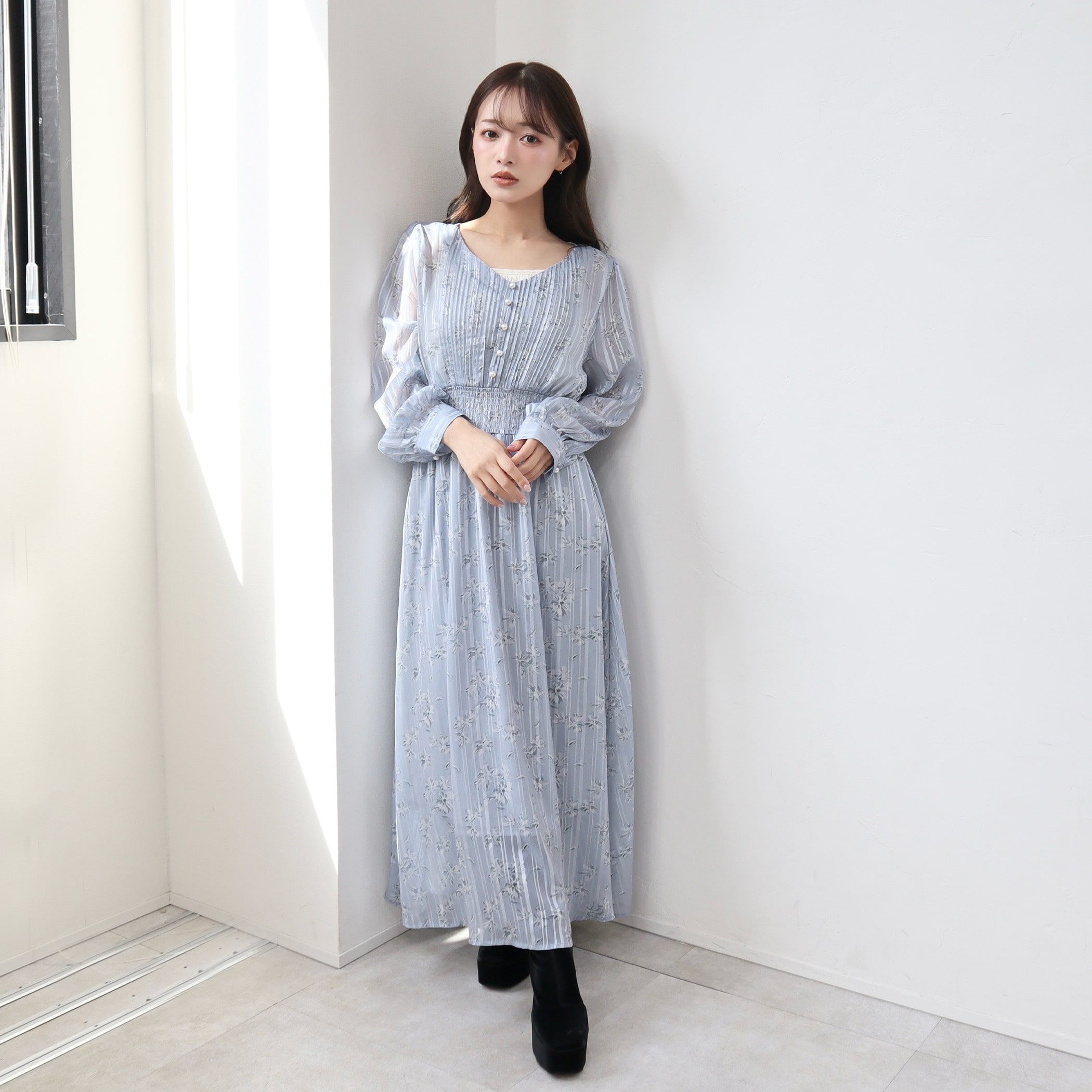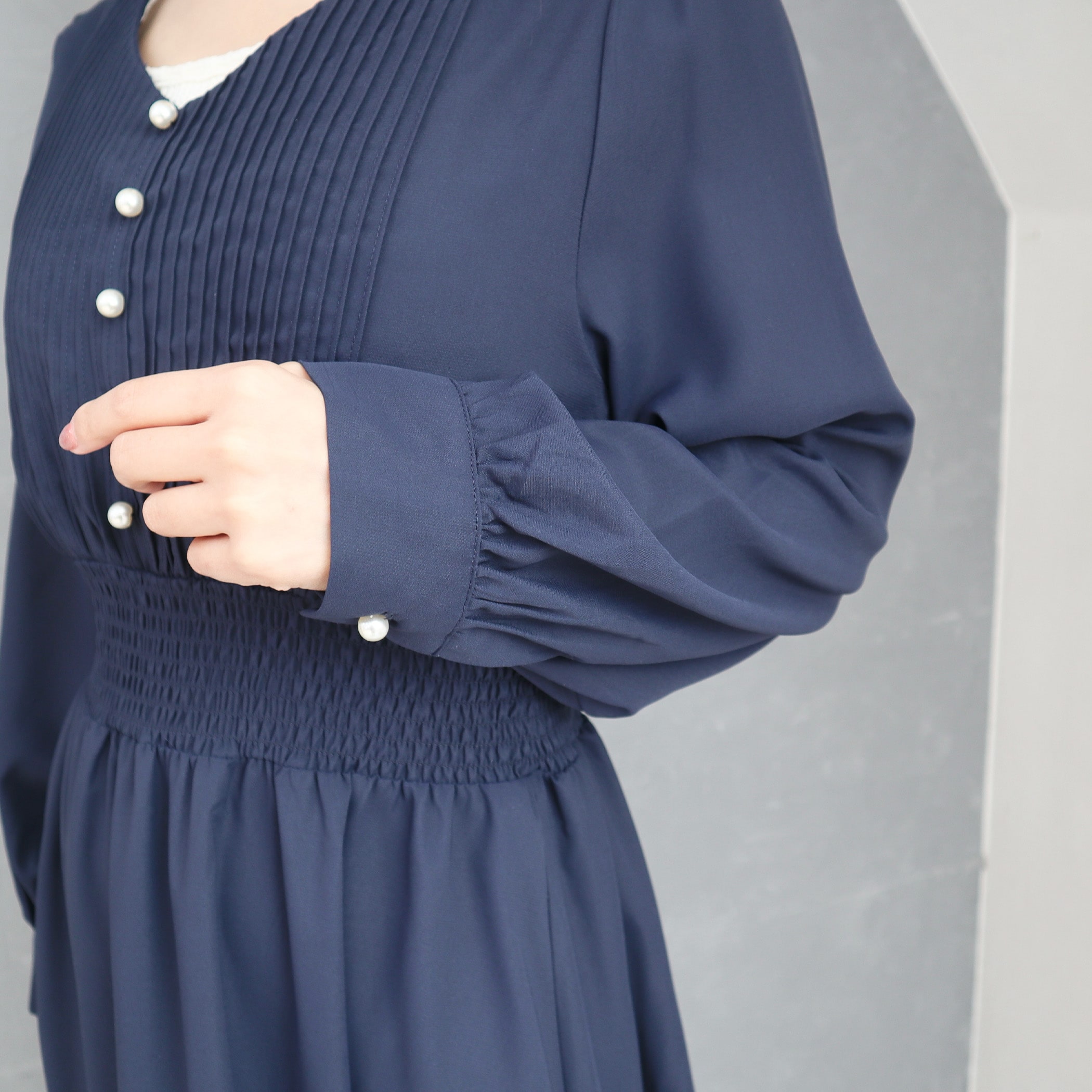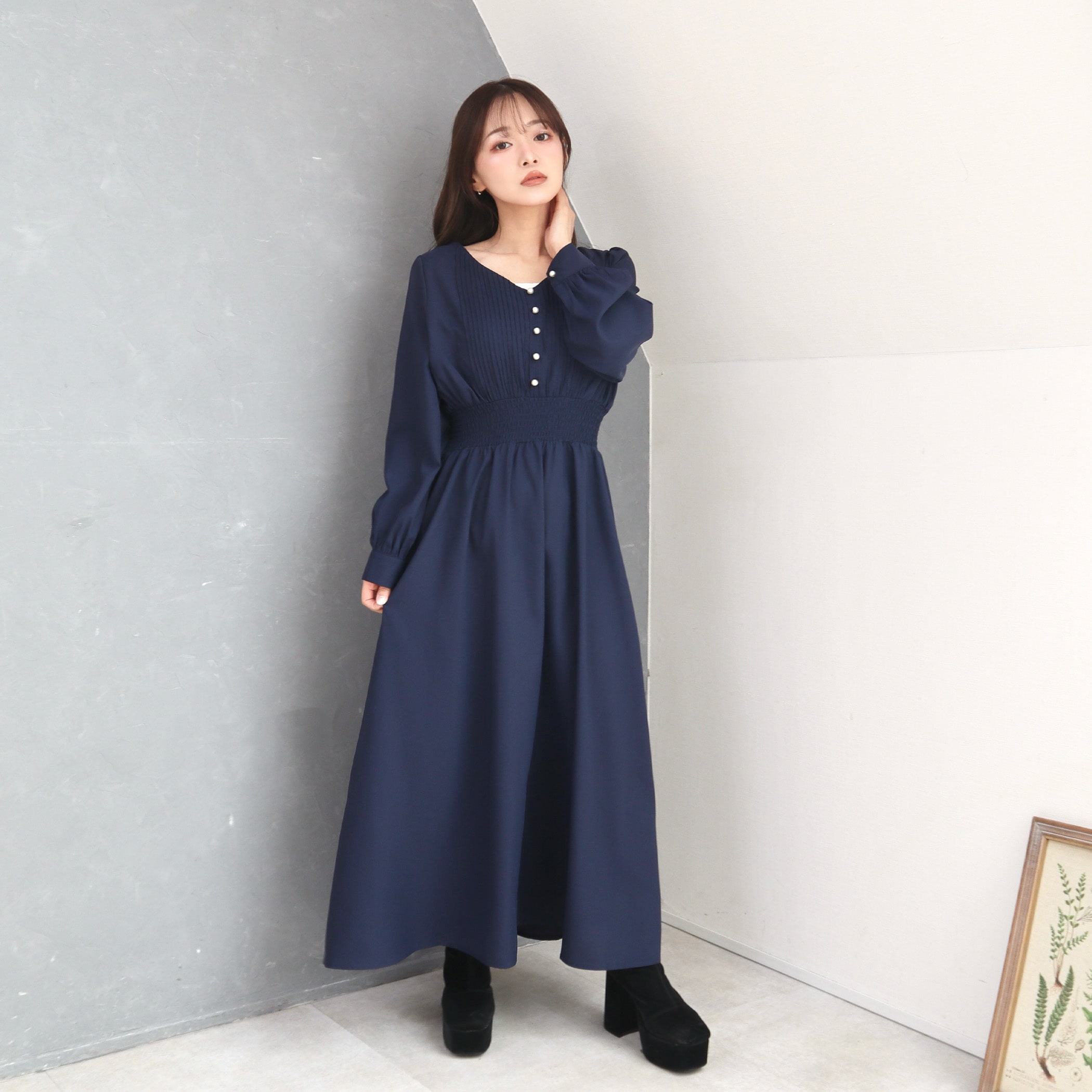 胸元プリーツワンピース
