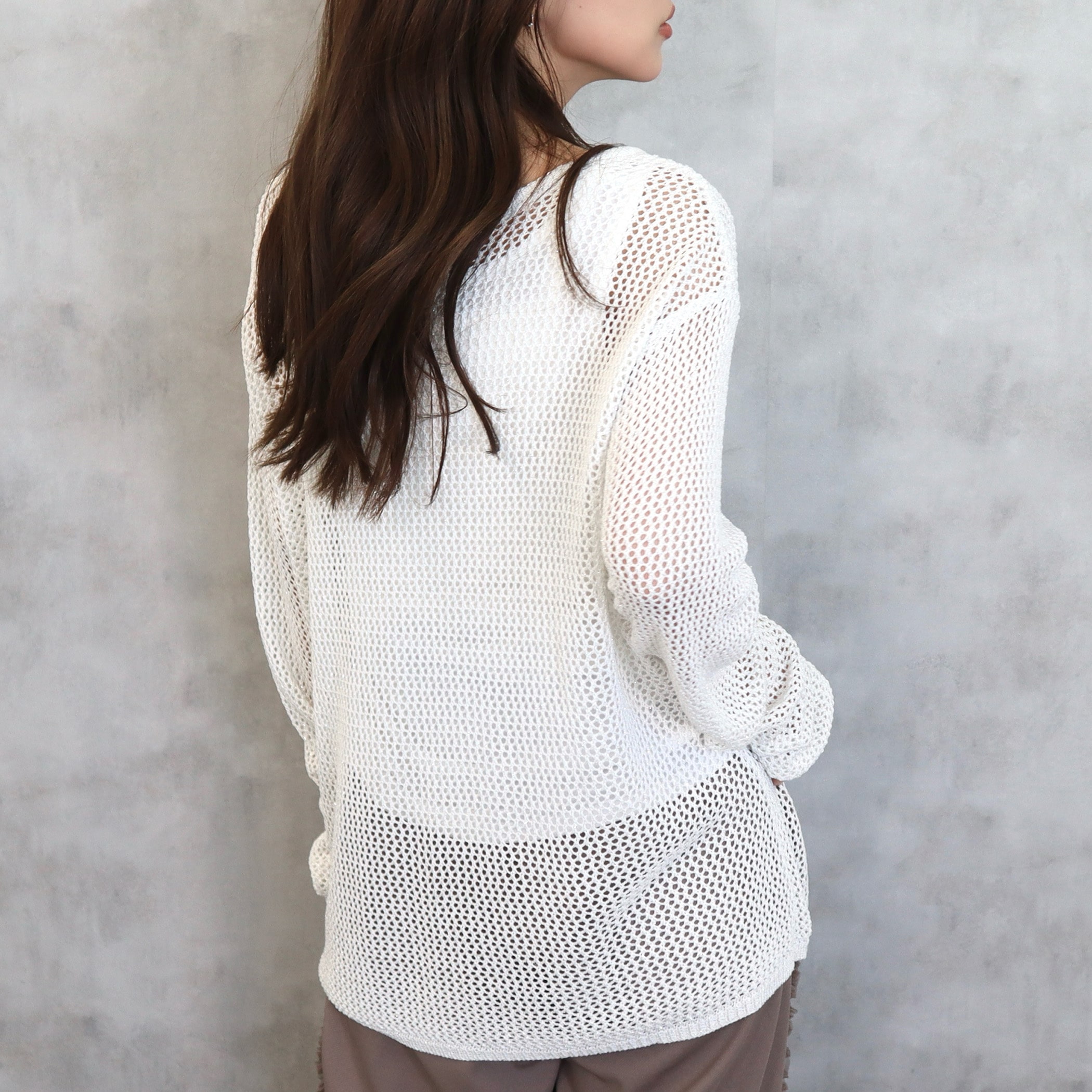 今年らしい程よい透け感が目を惹く女性らしいニットが登場。ゆったりとしたシルエットはいつものボトムにサラッと羽織るだけでこなれ感を演出できます。肌あたりのいいソフトな素材なので夏場でもストレスフリーで着て頂けます◎それぞれ単体で着まわせるタンクトップとニットの2点セットです。