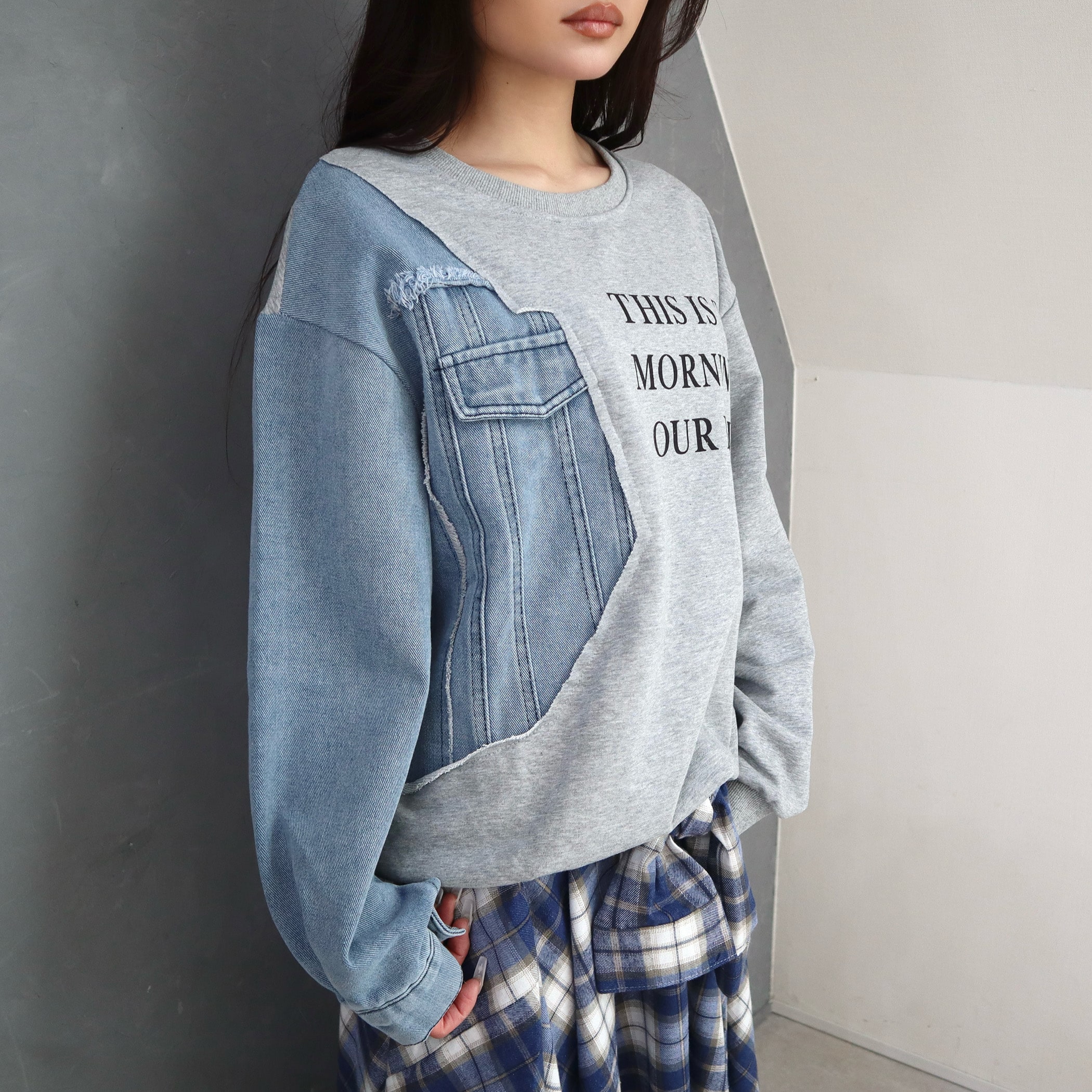 リメイクデザインが可愛い、ゆるっと着られるプルオーバー。リメイクデザインがこなれ感を演出。ゆったり着れるオーバーサイズが1枚でゆるっと可愛いサイジング。ドロップショルダーと長めの袖丈がくしゅっとしたボリューム袖に。色落ち加工感やカットオフの絶妙なディテールにこだわった1着。ショートパンツやミニスカートに合わせた韓国スタイルにおすすめ◎