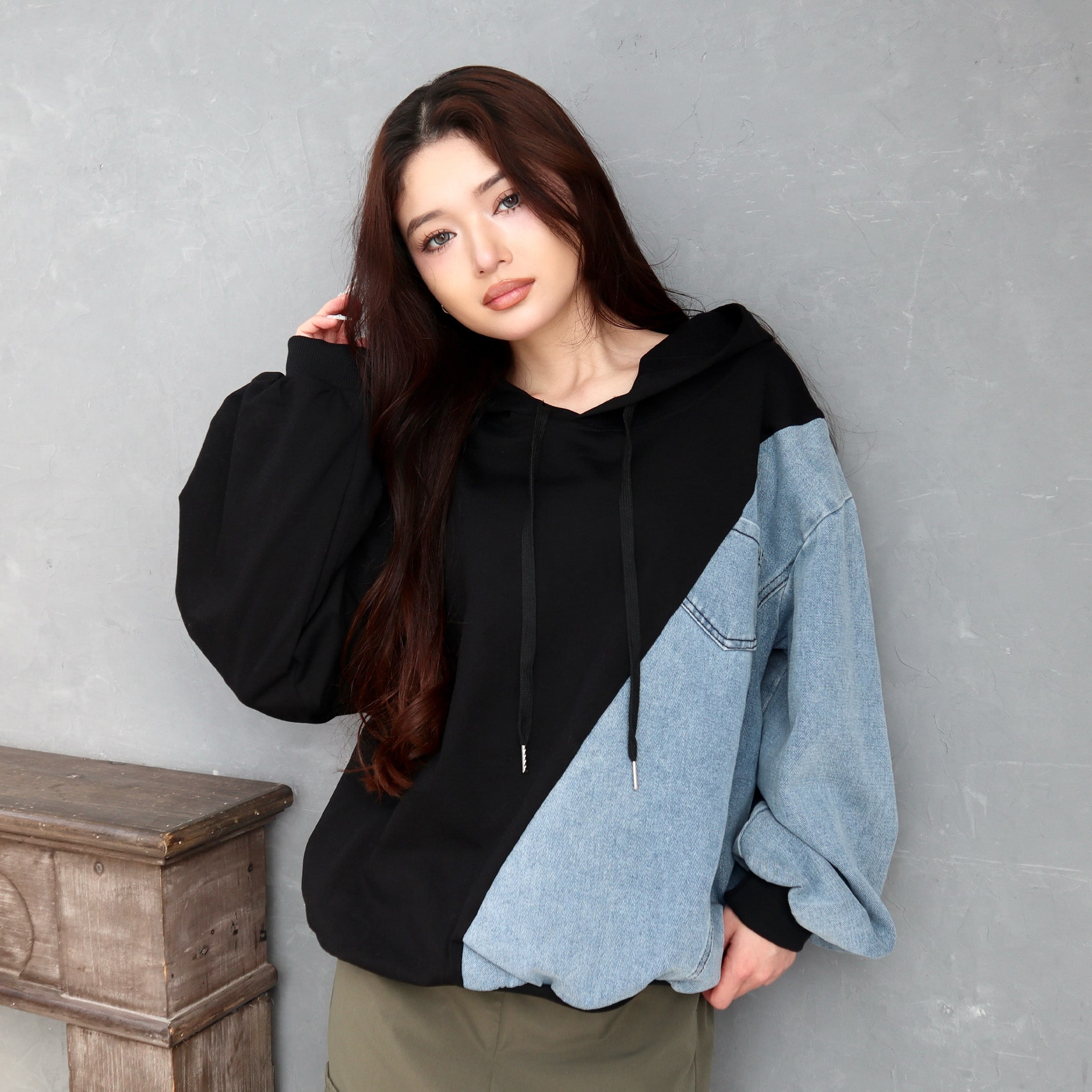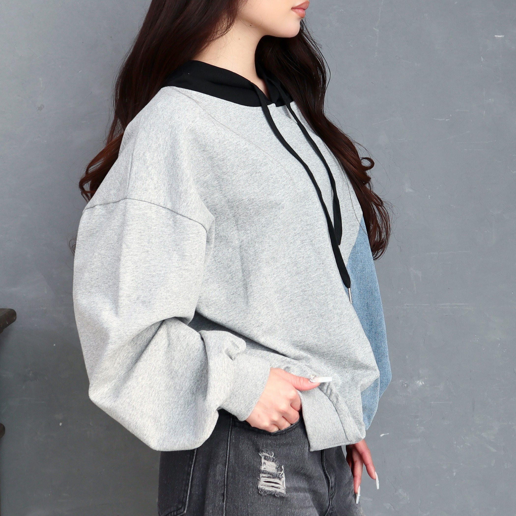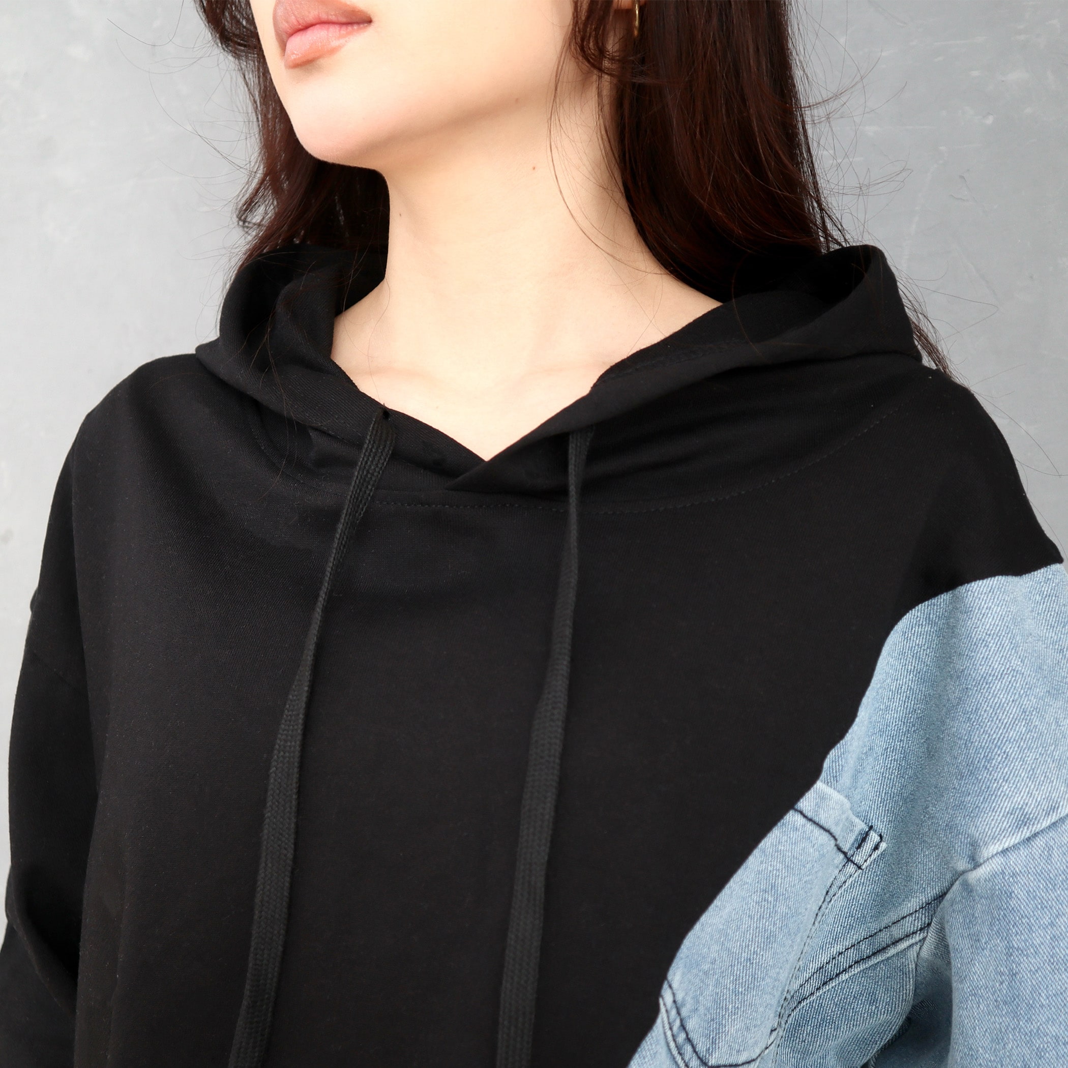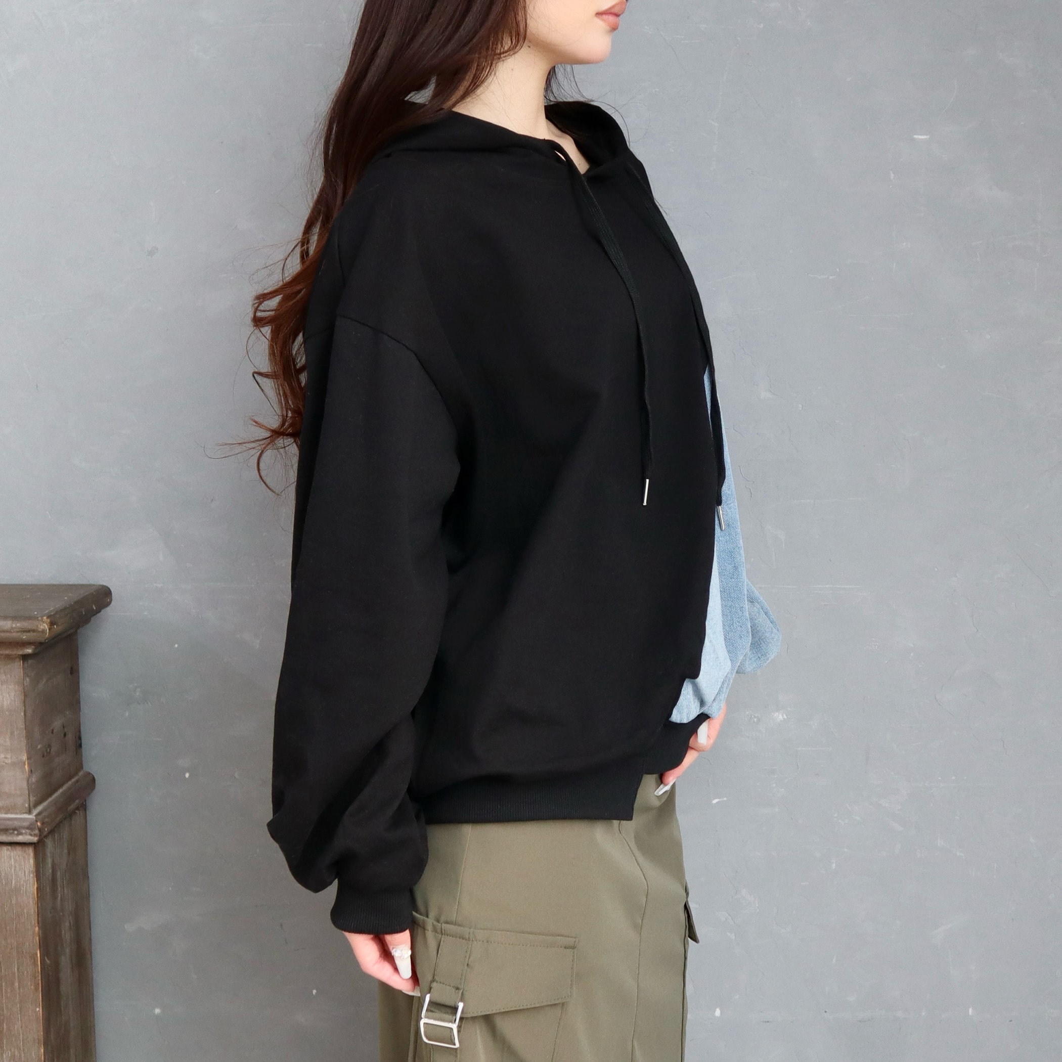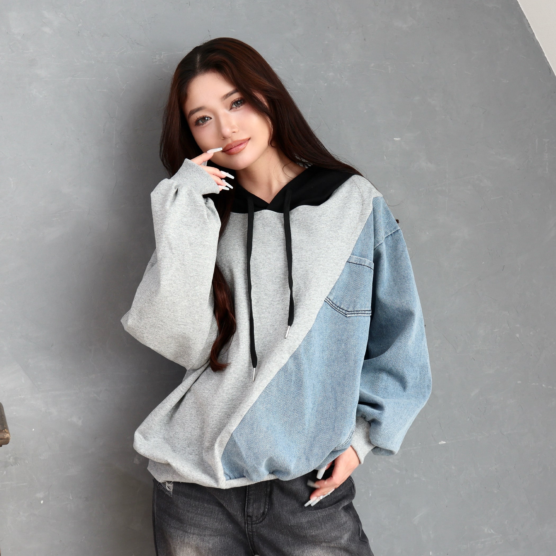 リメイクデザインが可愛い、ゆるっと着られるパーカー。リメイクデザインがこなれ感を演出。ゆったり着れるオーバーサイズが1枚でゆるっと可愛いサイジング。ドロップショルダーと長めの袖丈がくしゅっとしたボリューム袖に。色落ち加工感やカットオフの絶妙なディテールにこだわった1着。ショートパンツやミニスカートに合わせた韓国スタイルにおすすめ◎