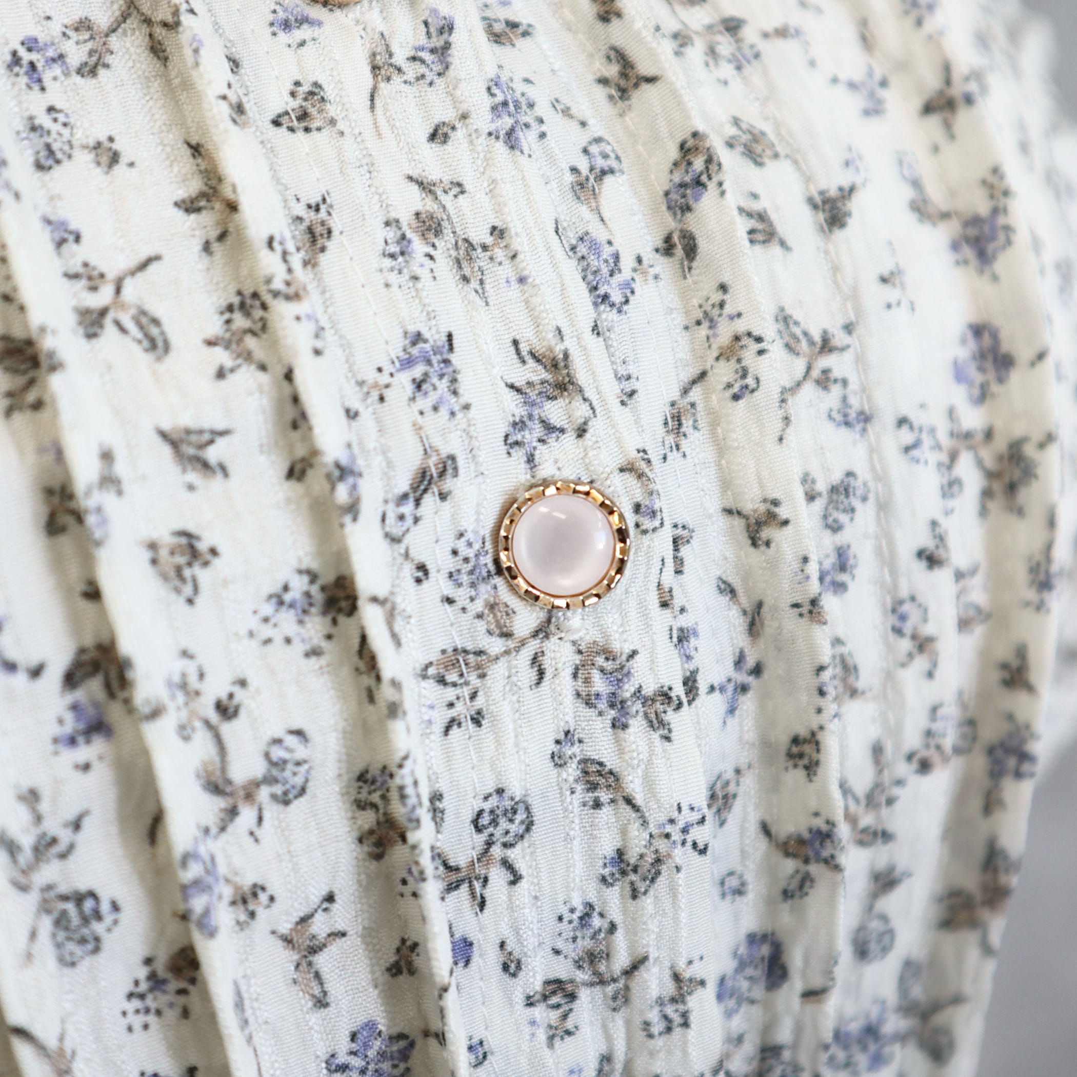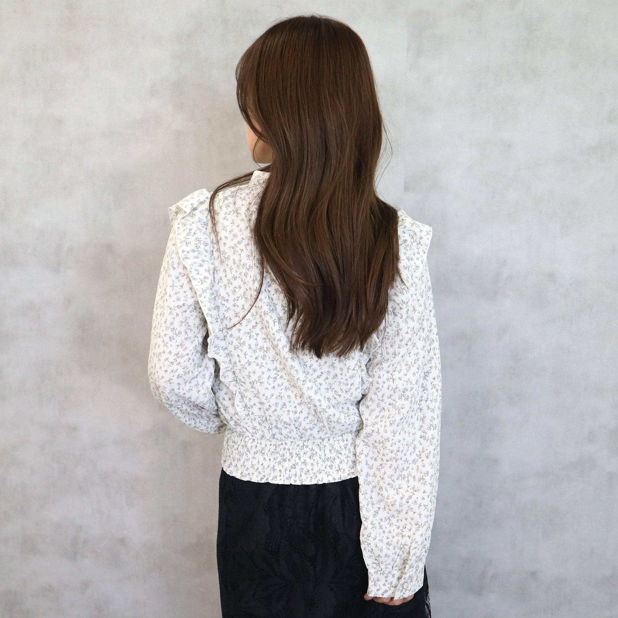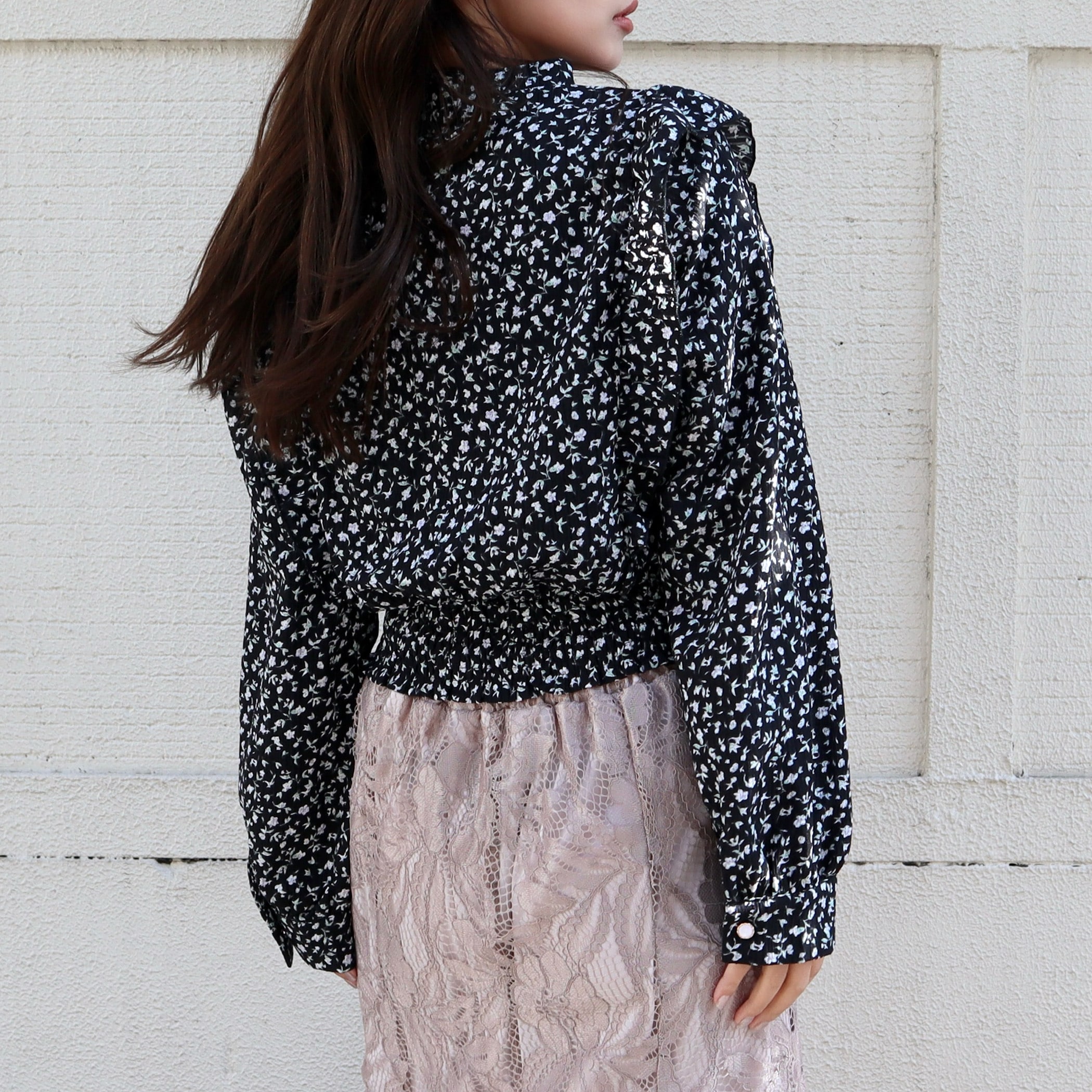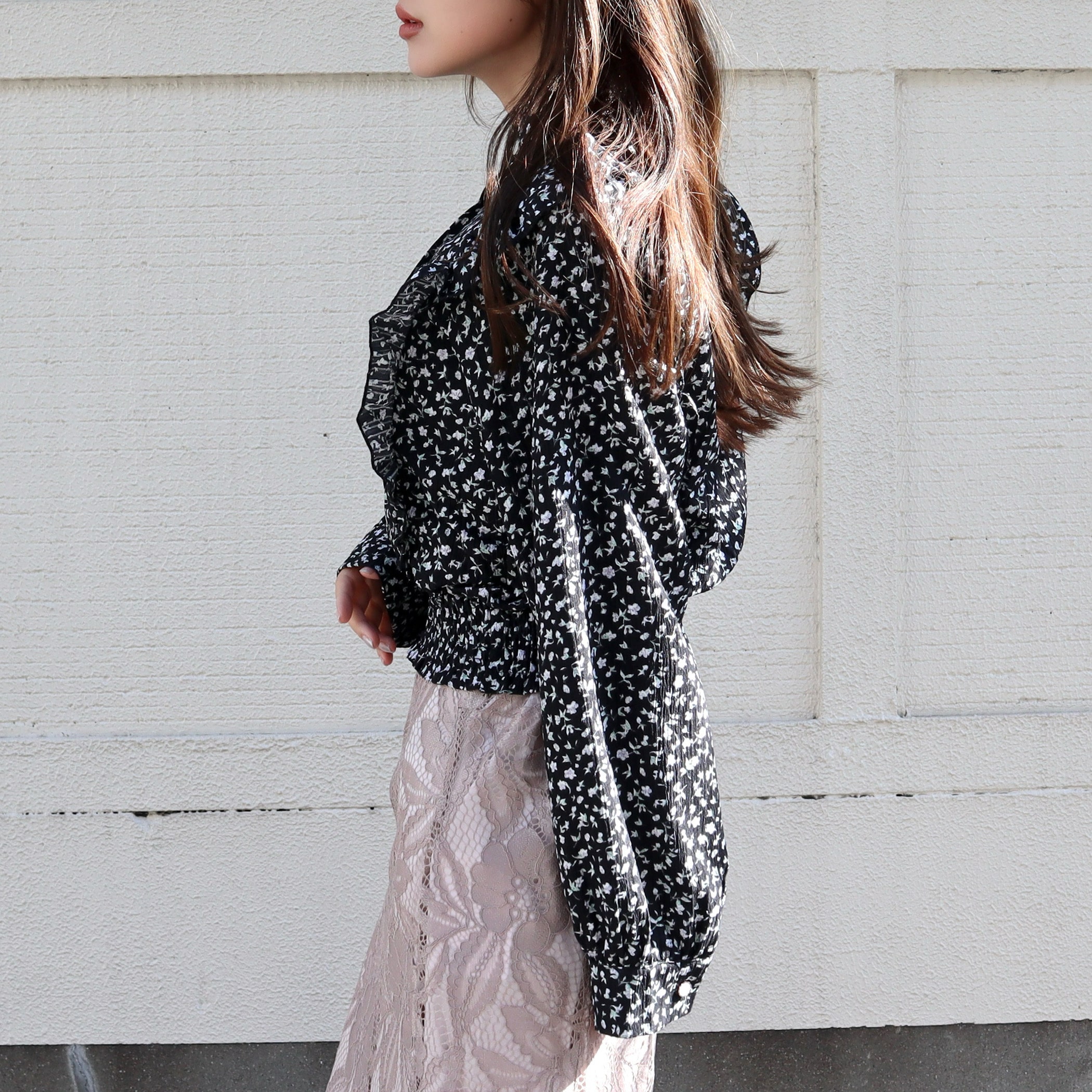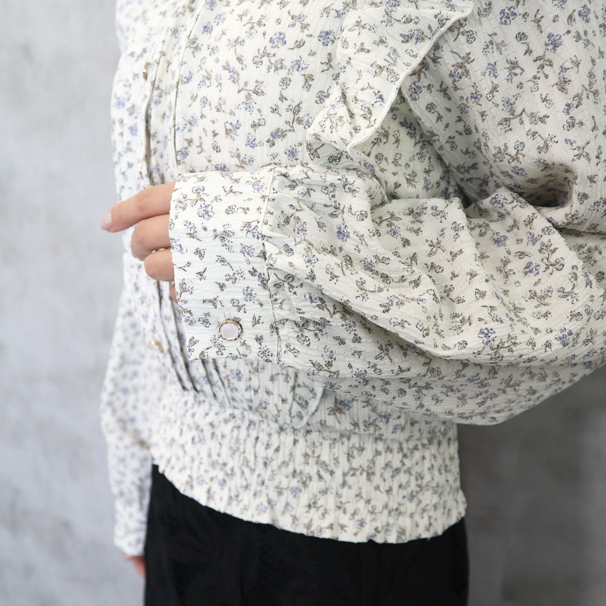 花柄が目を惹く、1枚で主役級のブラウス!フロントのピンタックとショルダーのフリルが華やかさをプラス。軽やかな素材を使用し、上品見えが叶います◎すっきりしたスタンドカラーがきれいめかつ大人なデザイン♪ボトムスはマーメイドスカートやフレアスカートとのコーデがおすすめ。デニムやパンツと合わせてきれいめカジュアルコーデに仕上げるのも◎ジャケットやカーディガンなどアウターを羽織ればロングシーズン活躍できます。デイリー使いはもちろん、オフィスやよそ行きなど特別な日にも♪