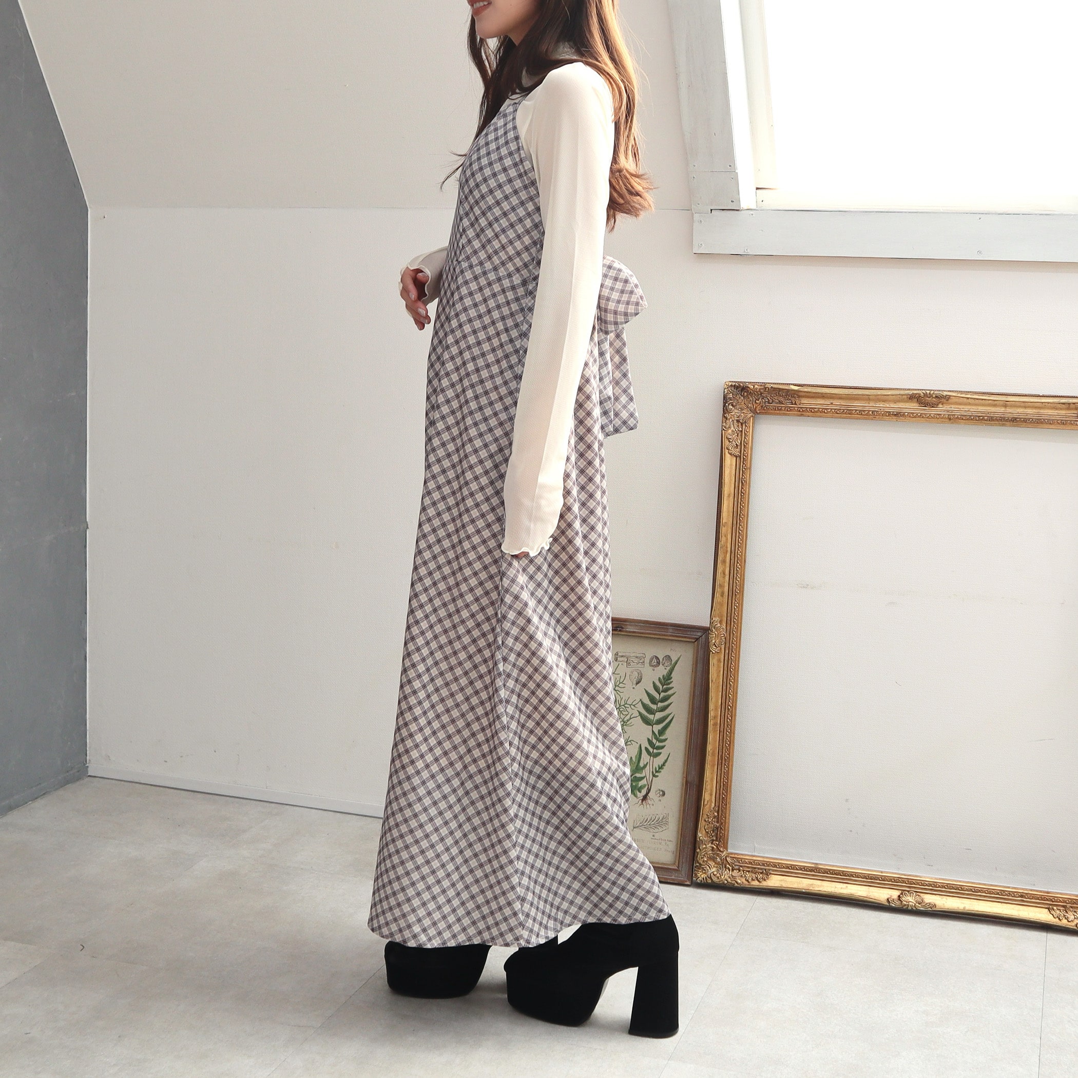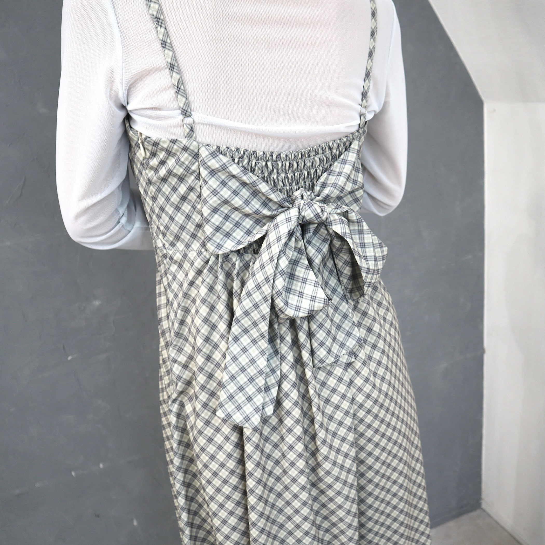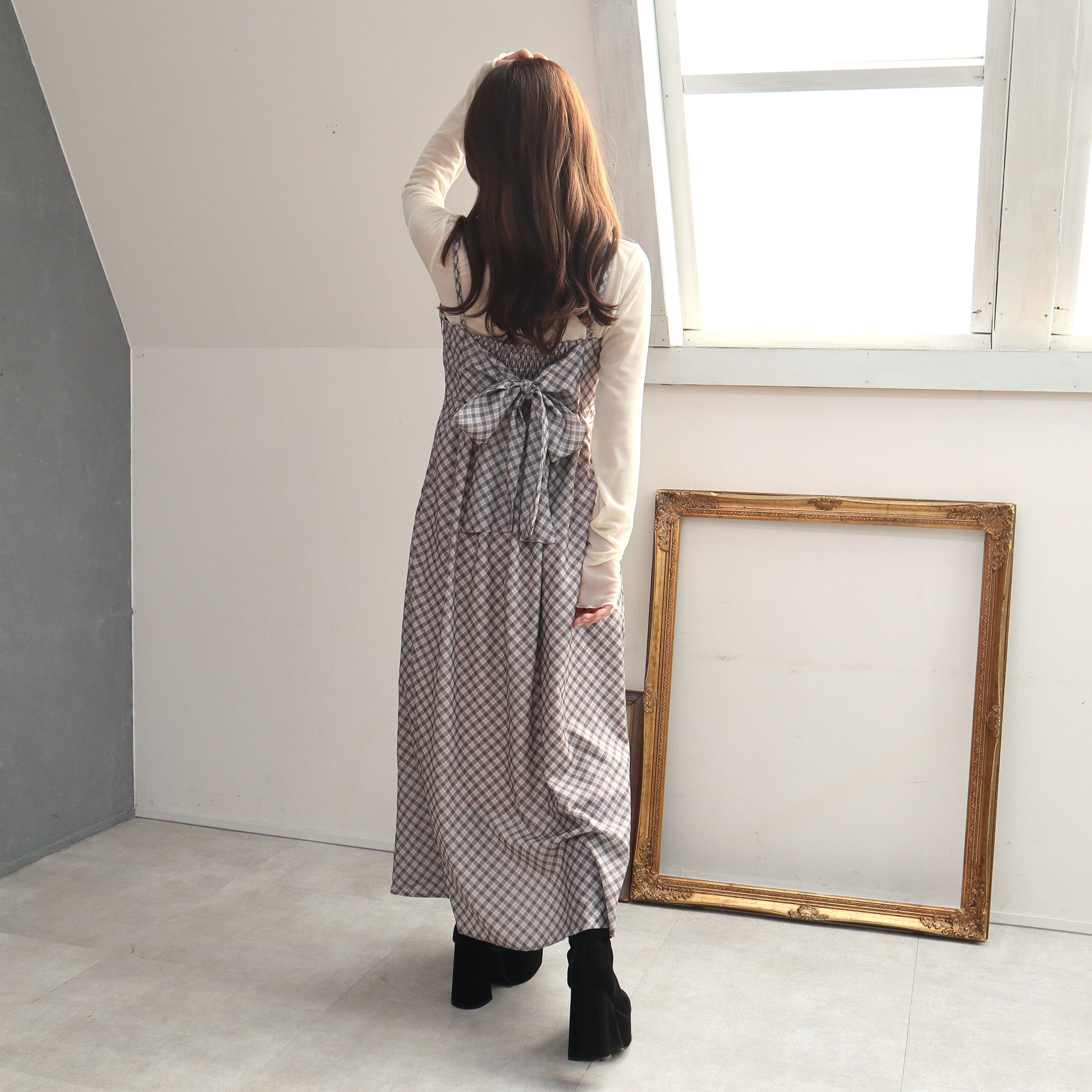 バックリボンが可愛らしいアクセントをプラスしてくれるキャミワンピース。胸下の切替で脚長なスタイルアップ効果も後押ししてくれます。裾に向かって広がる上品なフレアシルエットも魅力ポイント◎トラッドな雰囲気漂うチェック柄で、カジュアルにもガーリーにもコーディネートが楽しめます。