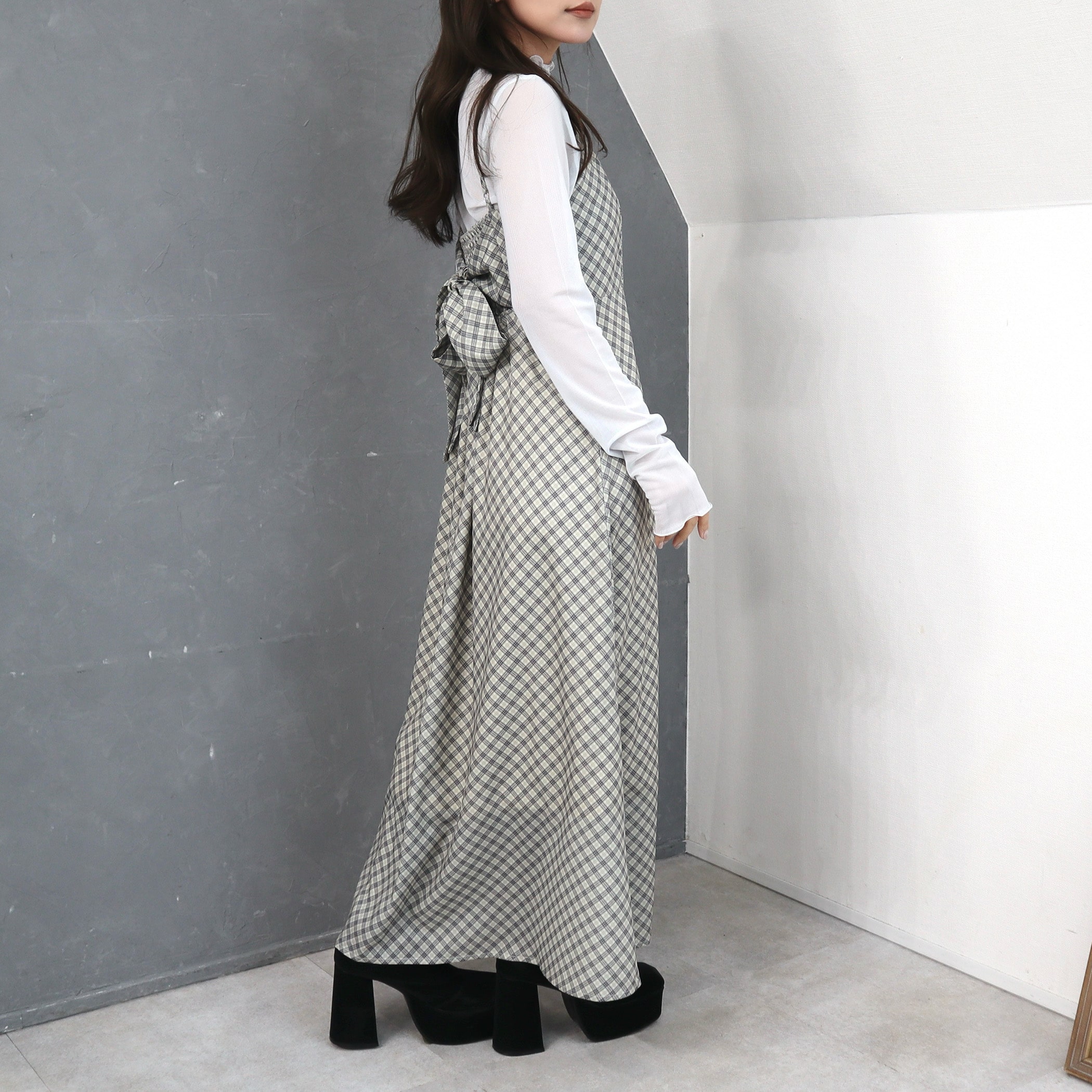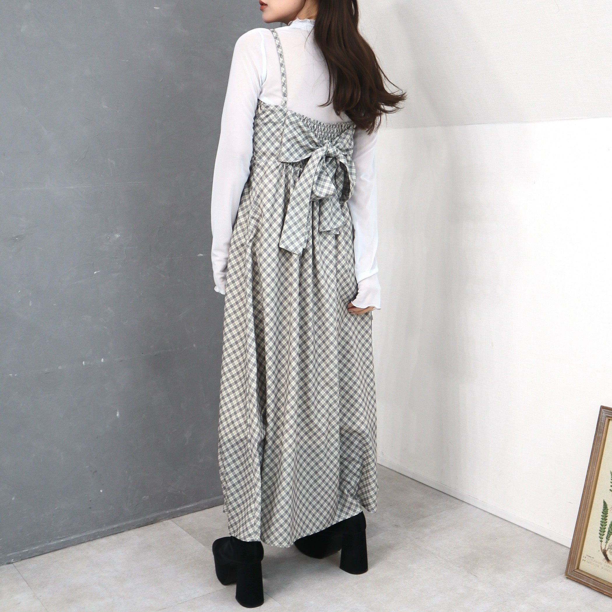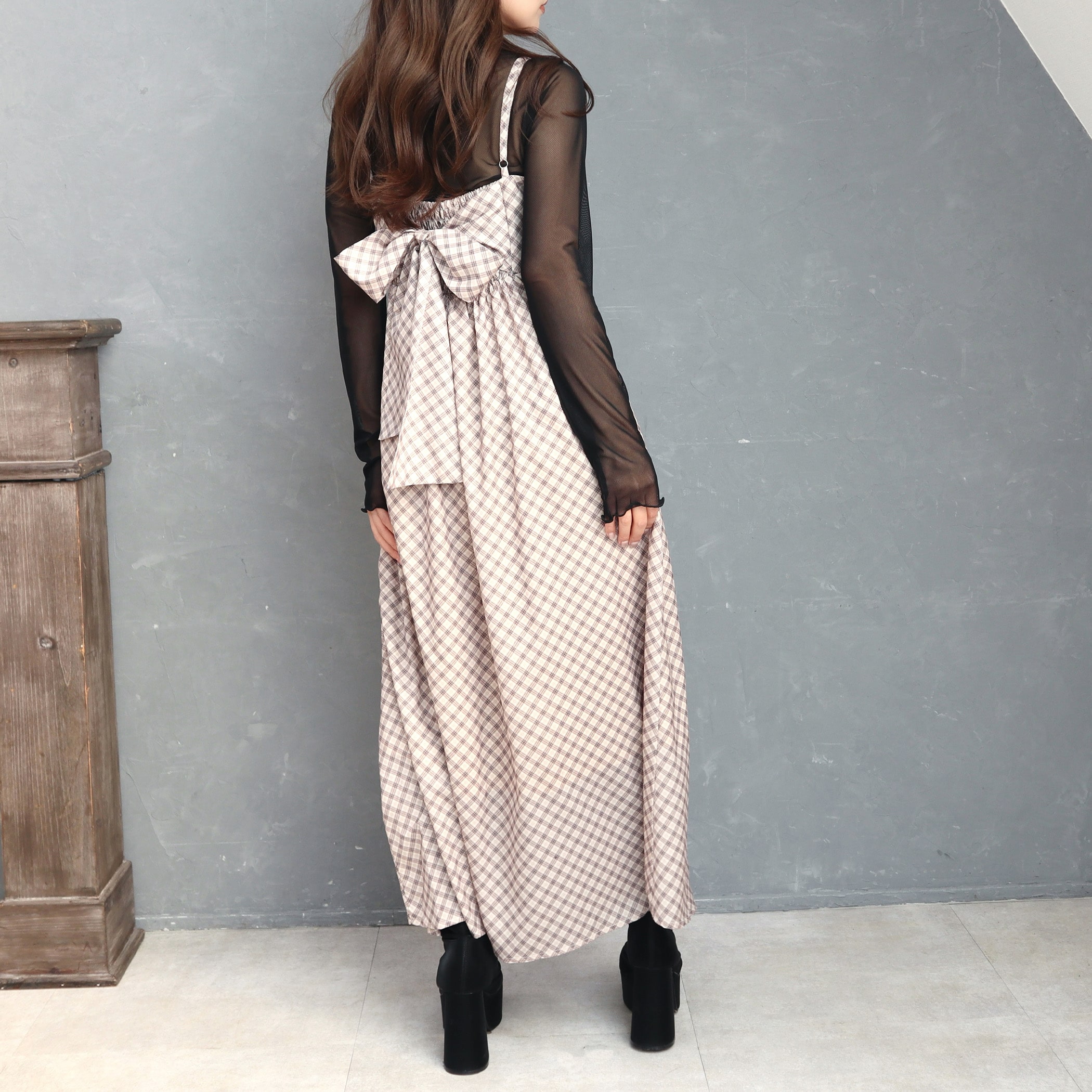 バックリボンが可愛らしいアクセントをプラスしてくれるキャミワンピース。胸下の切替で脚長なスタイルアップ効果も後押ししてくれます。裾に向かって広がる上品なフレアシルエットも魅力ポイント◎トラッドな雰囲気漂うチェック柄で、カジュアルにもガーリーにもコーディネートが楽しめます。