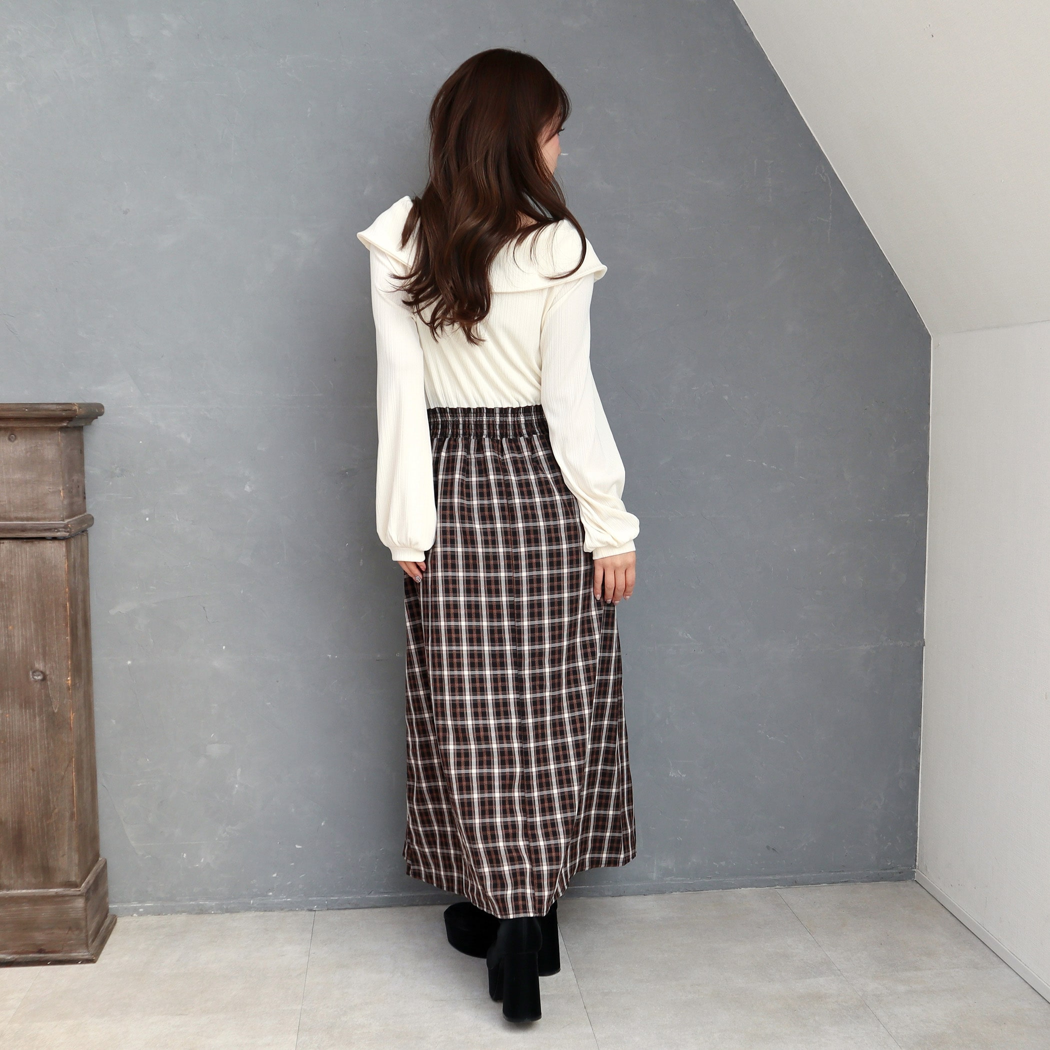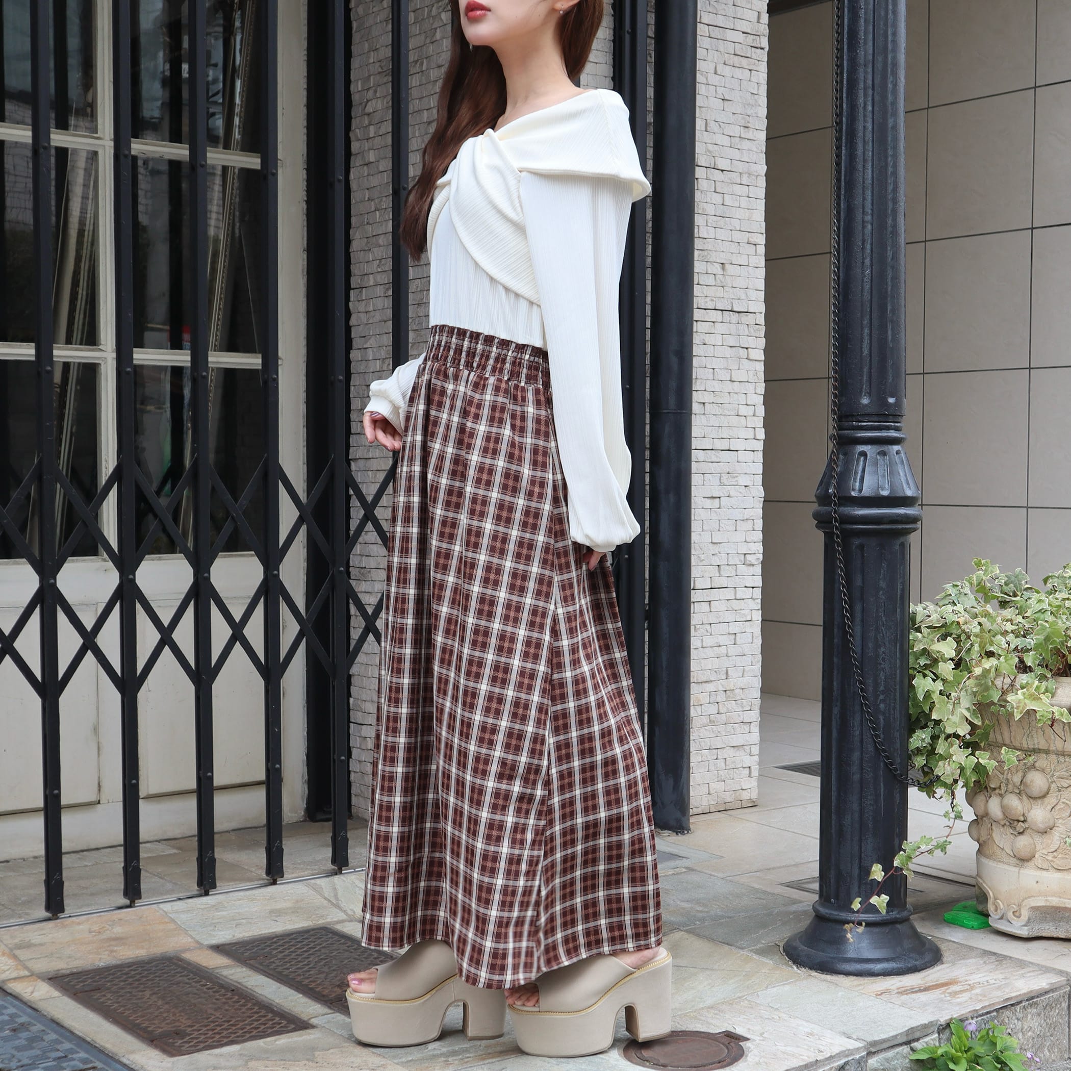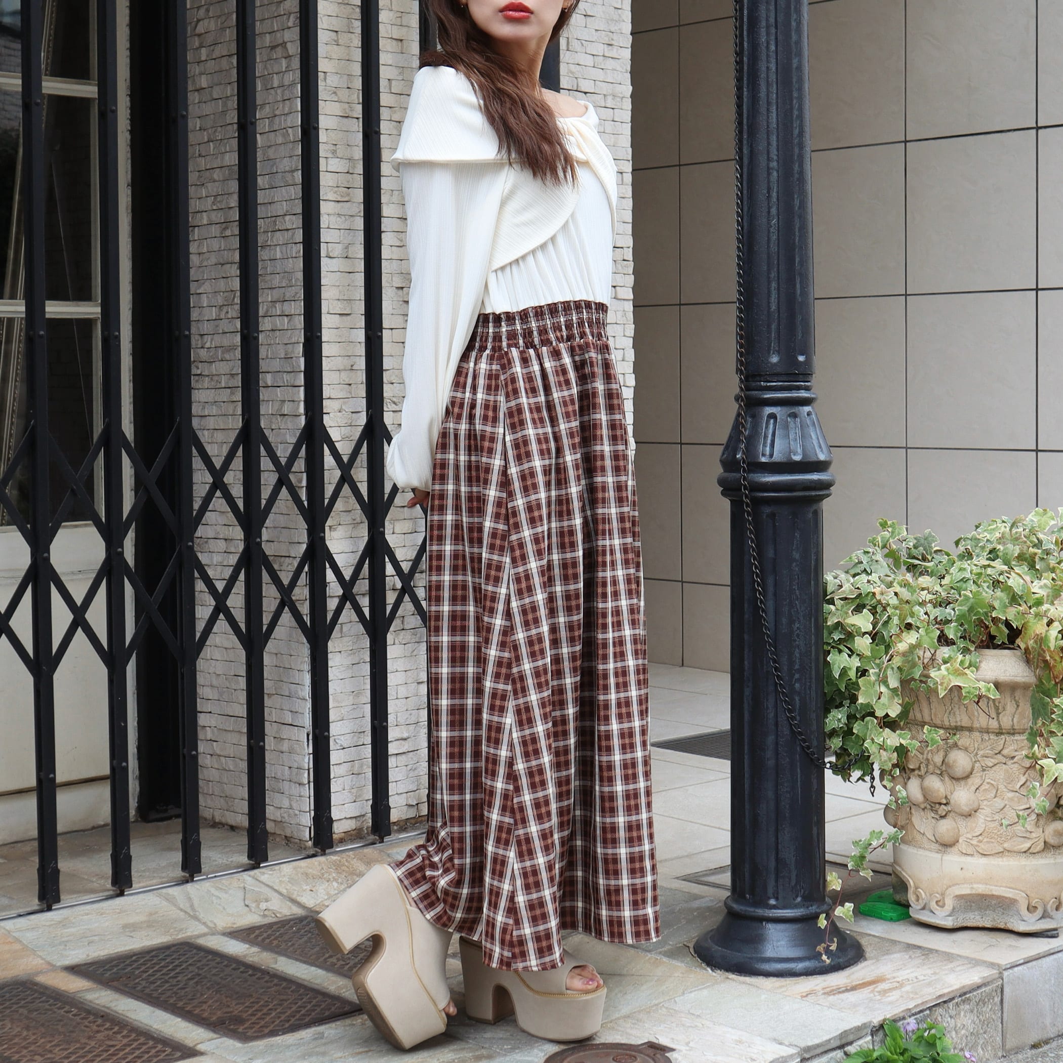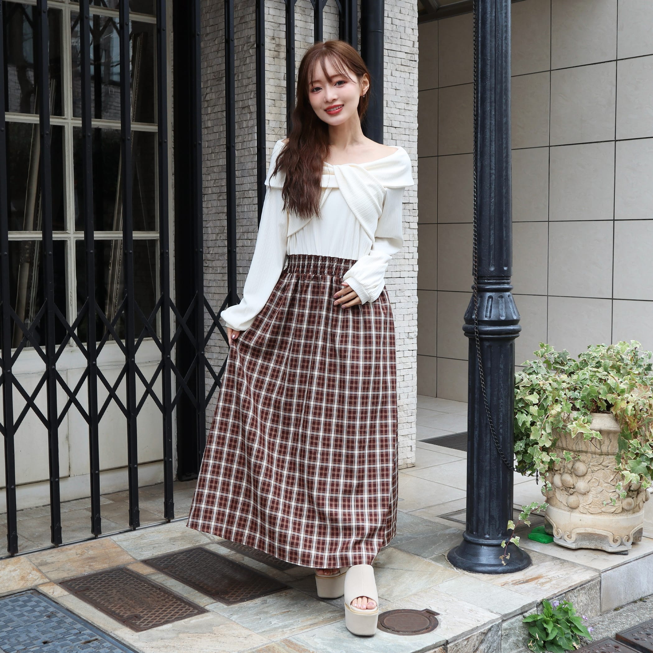 ネックラインををツイストさせたデザインでデコルテを綺麗に魅せてくれるワンピース。チェック柄の切替えが大人可愛く、ふんわりシルエットのスカートで体系もカバーしてくれます◎