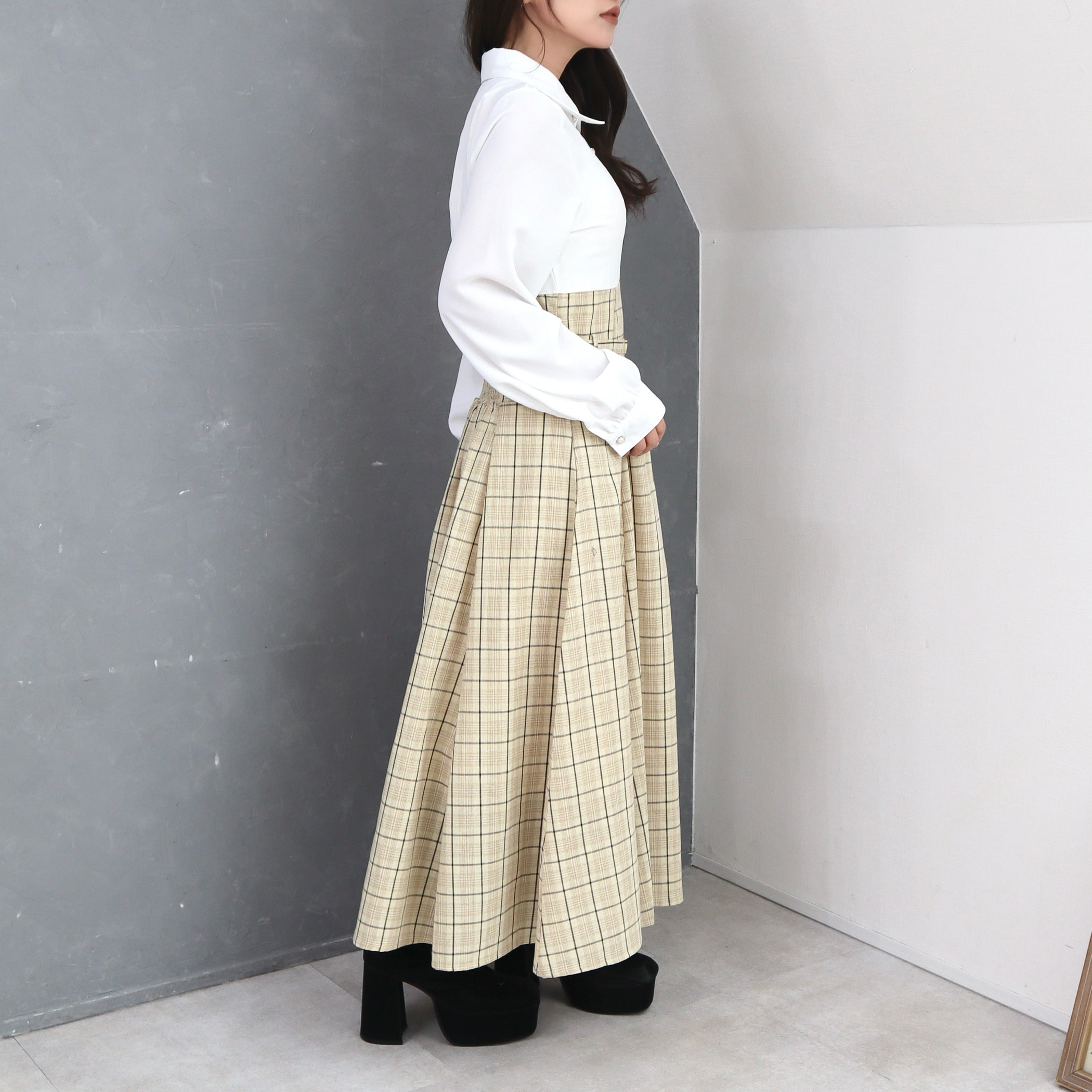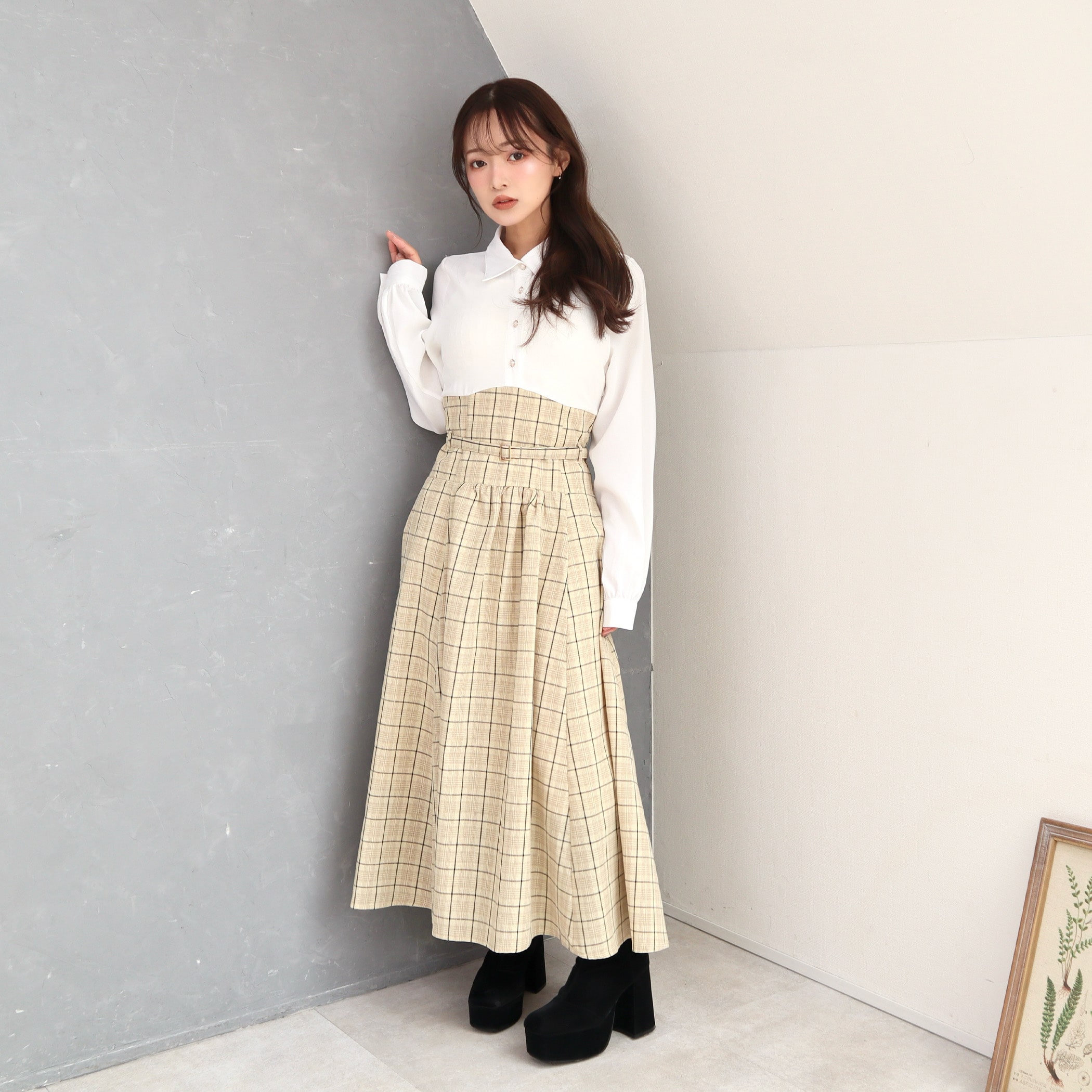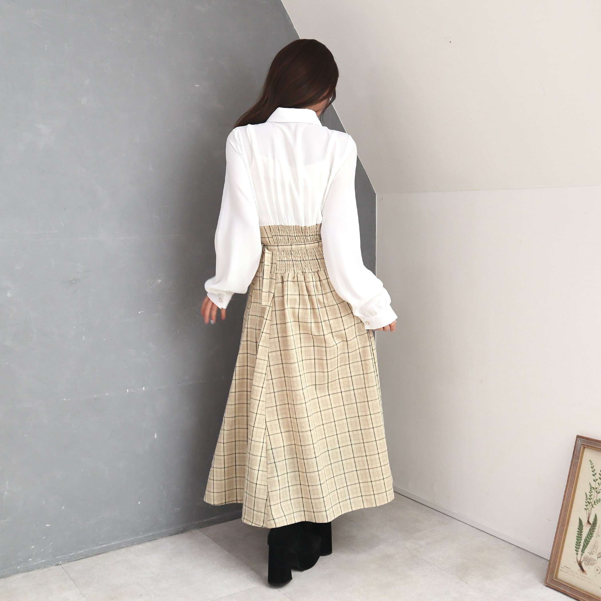 シャツxチェックコルセットドッキングワンピース