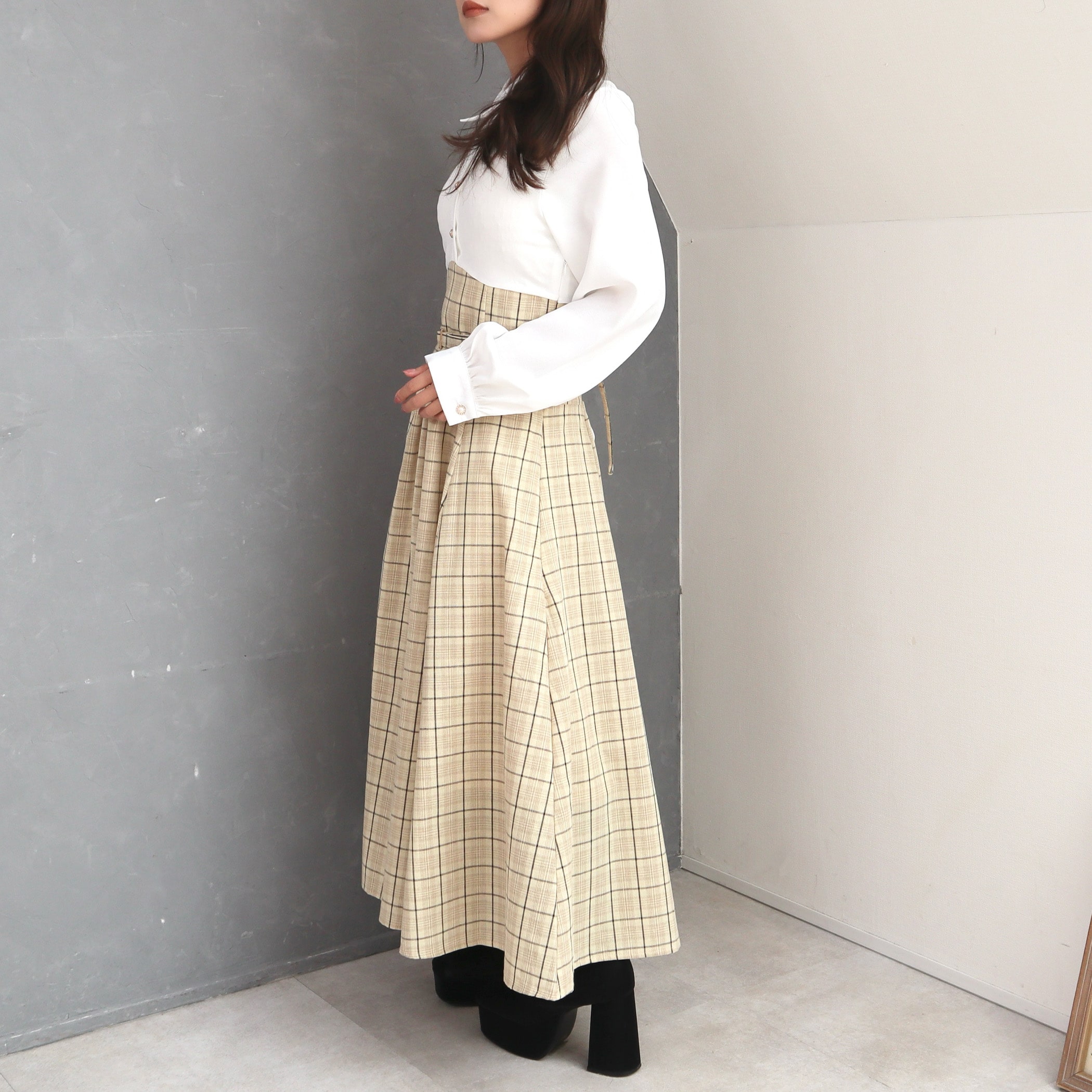 チェックスカート×ブラウスのドッキングデザインが上品でフェミニンな印象のワンピース。着用するだけでかわいらしい春コーデが完成するアイテムです。スカートはふんわりとしたフレアシルエットでハイウエスト風の切り替えと付属ベルトで、着用するだけでスタイルアップ効果も◎きちんとした印象のアイテムなので、ちょっとしたお呼ばれや特別なシーンにもおすすめのワンピースです。1枚で着用はもちろん、ニットカーディガンなどとレイヤードして着用していただくのもおすすめです。さらっとした素材なので、春服夏服シーンにぴったりです。春服夏服シーズンの大人フェミニンコーデにぴったりのワンピースです。