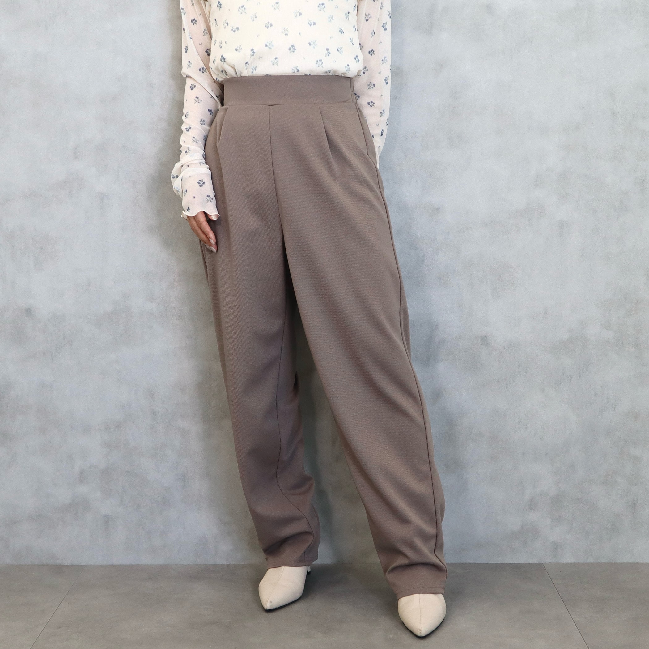 一枚でコーデが完成する、きれい見えセットアップ。すっきりとしたノースリーブトップスに、動きのあるフレア切替デザインをプラスし、女性らしさと上品さを兼ね備えた印象に仕上げました。パンツは脚のラインを美しく見せるテーパードシルエットで、腰まわりはゆとりがありながら裾に向かってすっきりと細見え。それぞれ単品使いもでき、オンオフ問わず着回し力抜群のアイテムです。