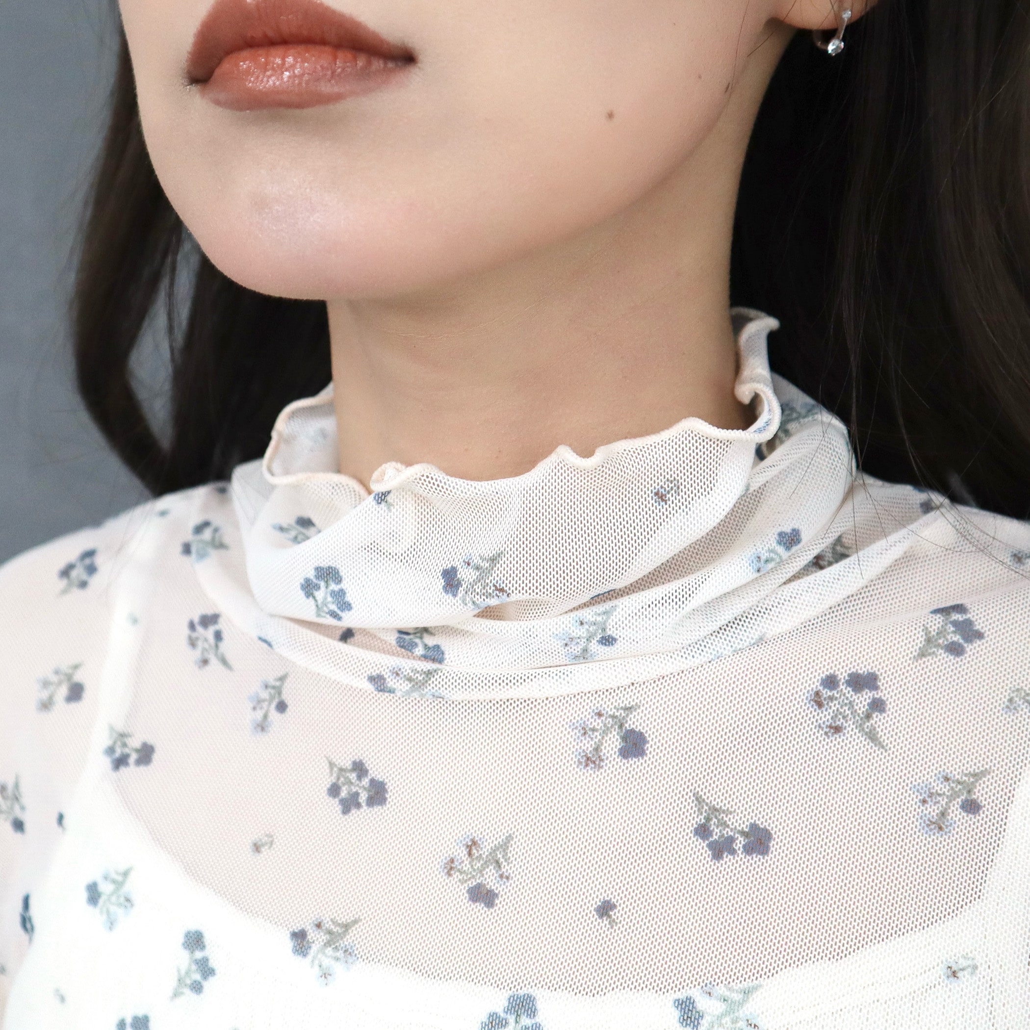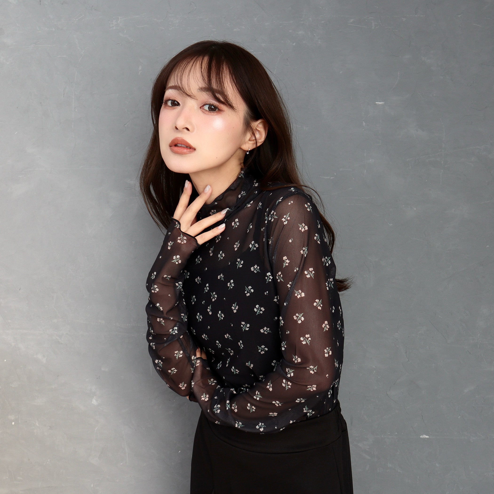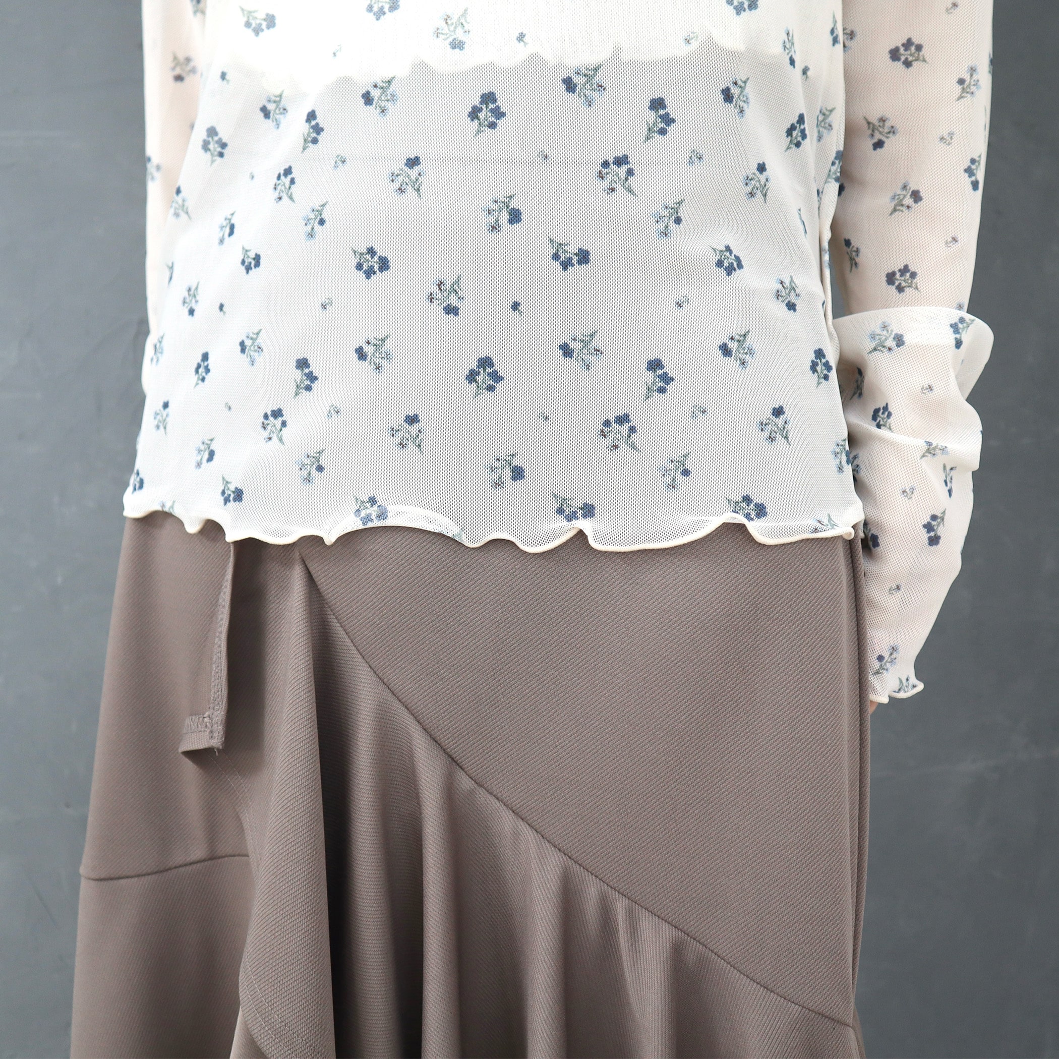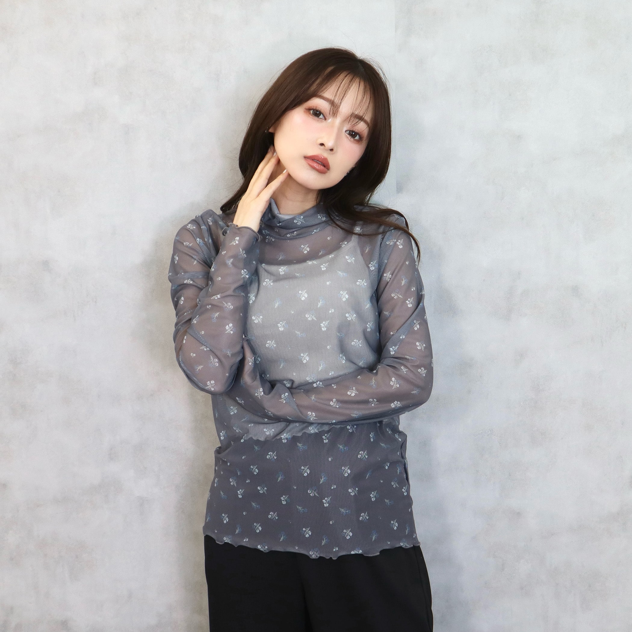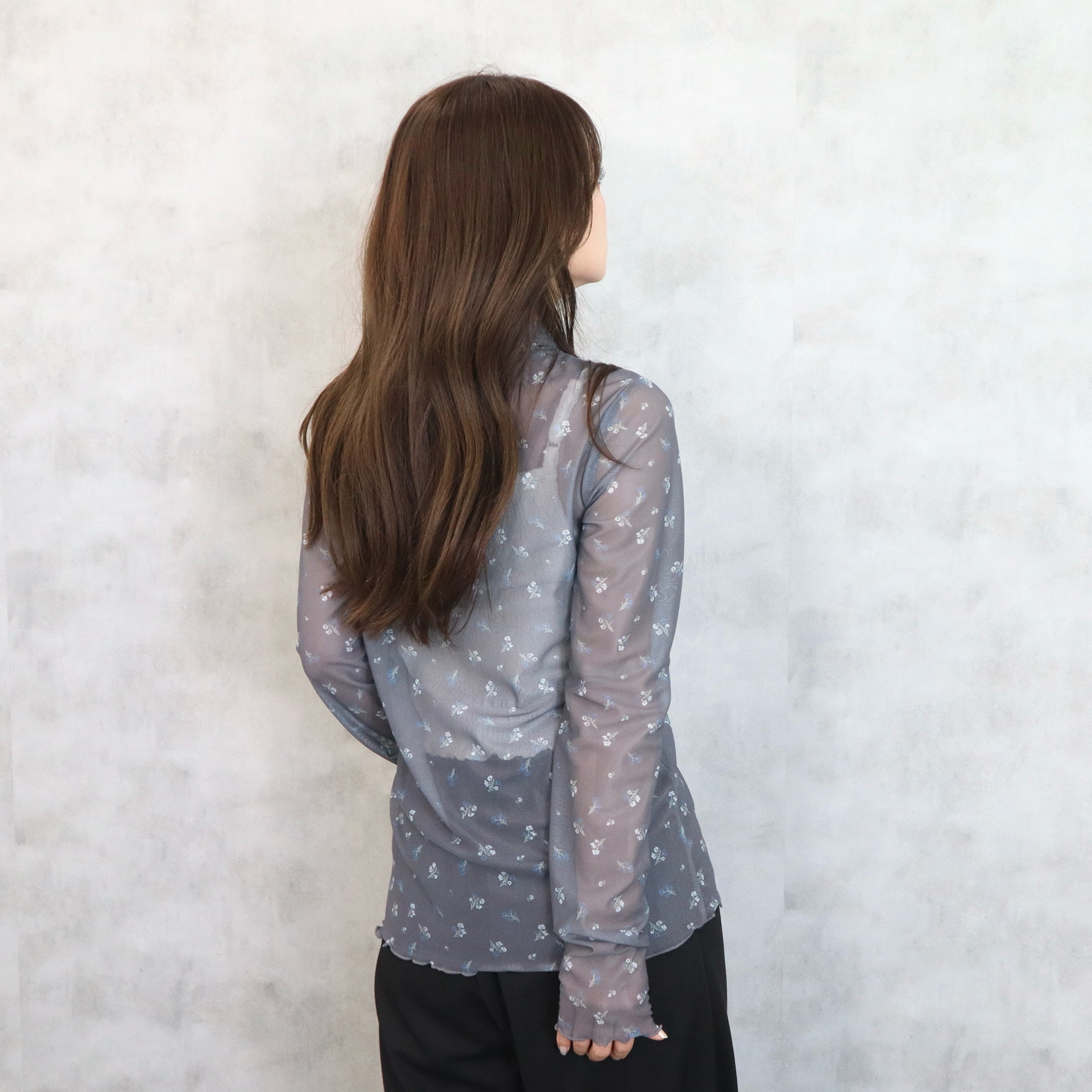 小花柄がガーリーでオシャレなメロウトップス。トップスとしてはもちろん、ワンピースやベストなどと合わせてトレンドのレイヤードスタイルも楽しめるアイテムです。薄手の生地ですが上品な透け感なので肌見せが苦手な方にもおすすめです。