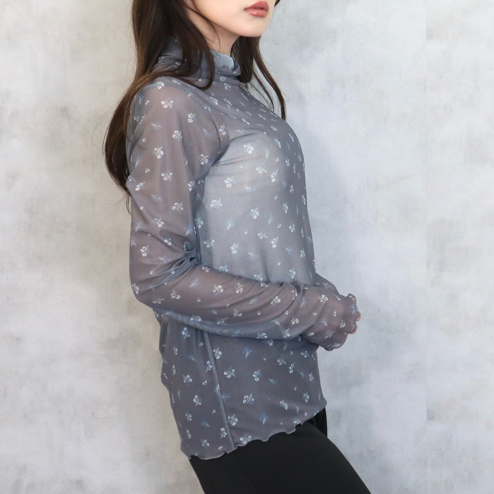 パワーネット小花柄タートルネック