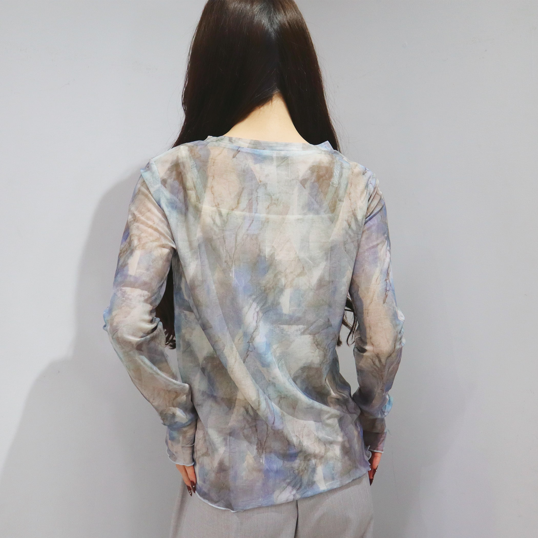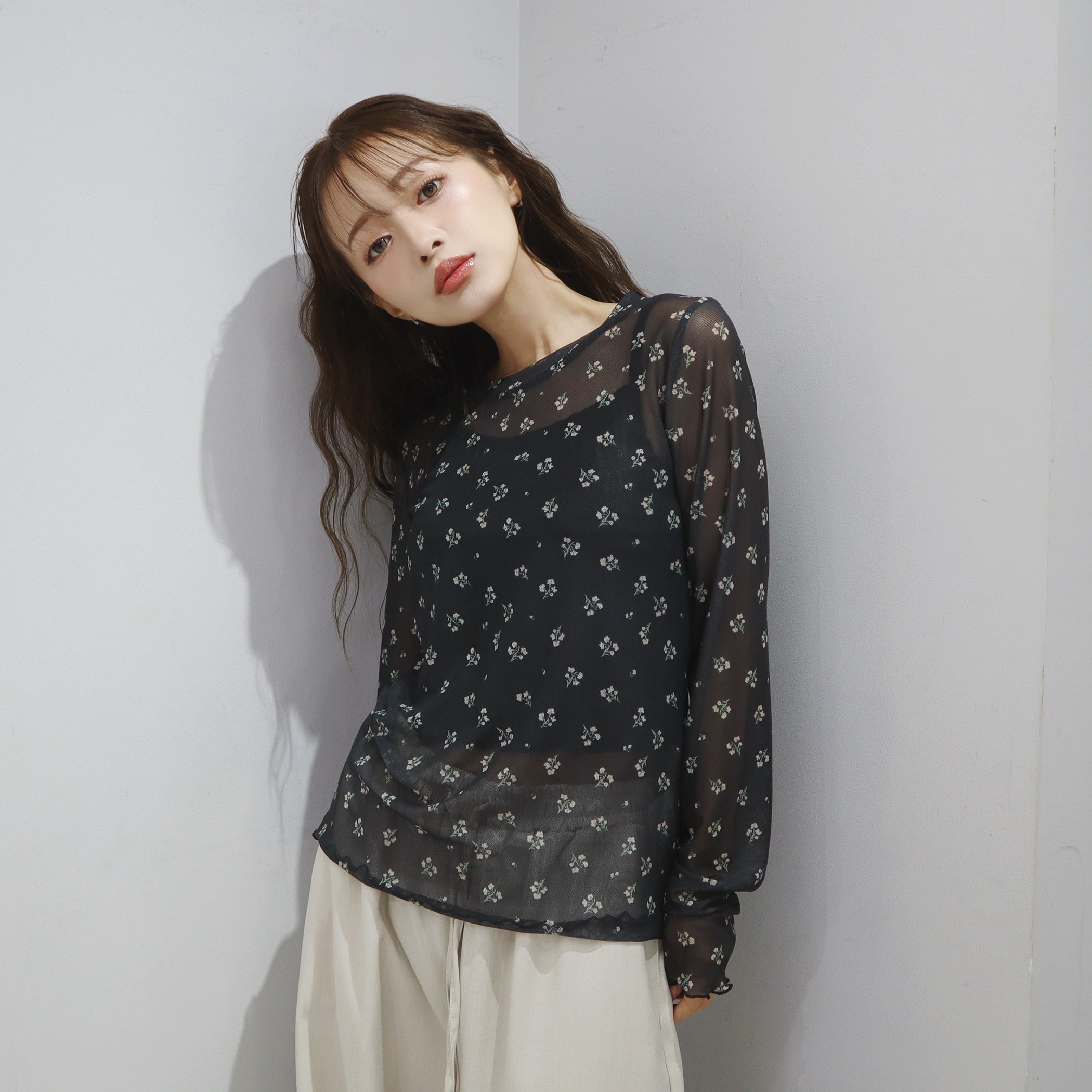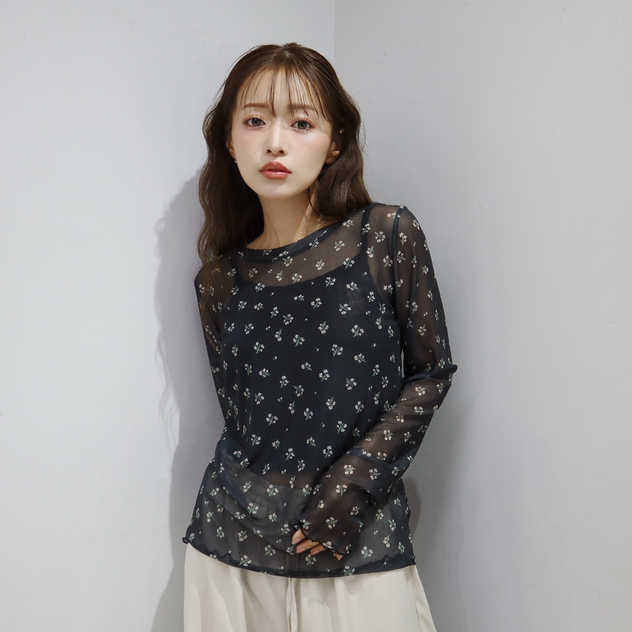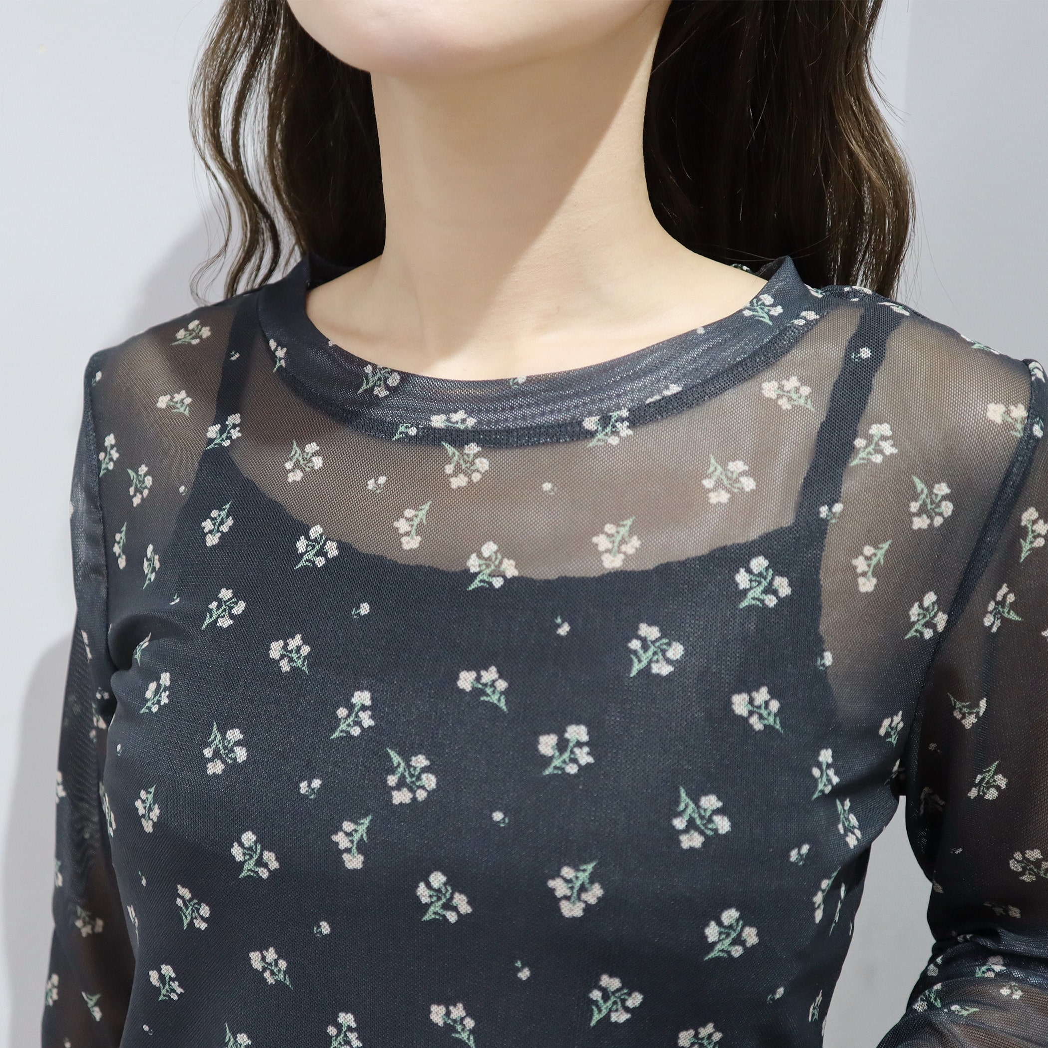 トップスとしてもレイヤードアイテムとしても着用できるシアートップス。透け感がありますが透け過ぎないので、肌見せが苦手な方も着用しやすいアイテムです。着膨れしないサイズ感になっているので、トレーナーやTシャツやワンピなどの下に着用いただくとトレンドのレイヤードスタイルをお楽しみいただけます。