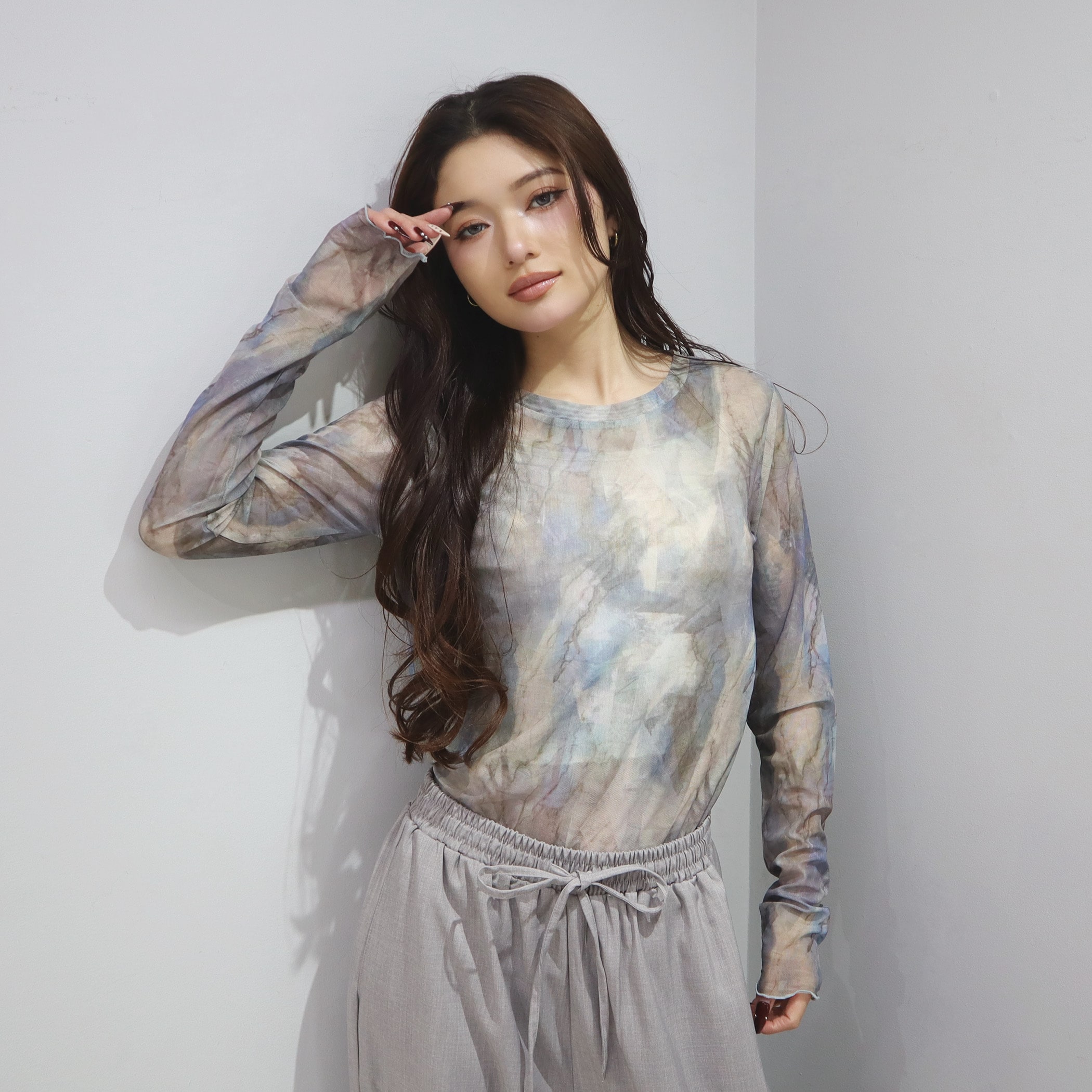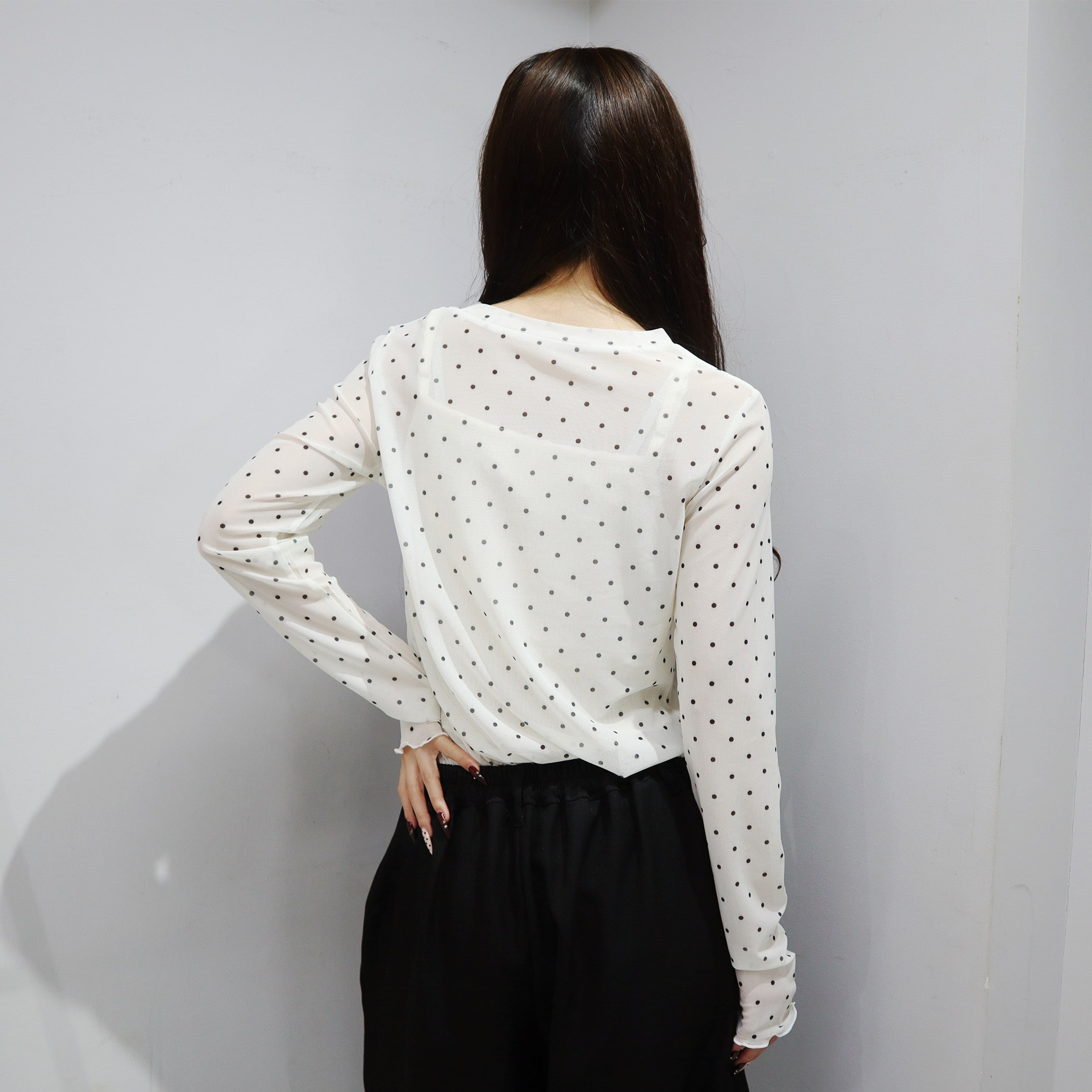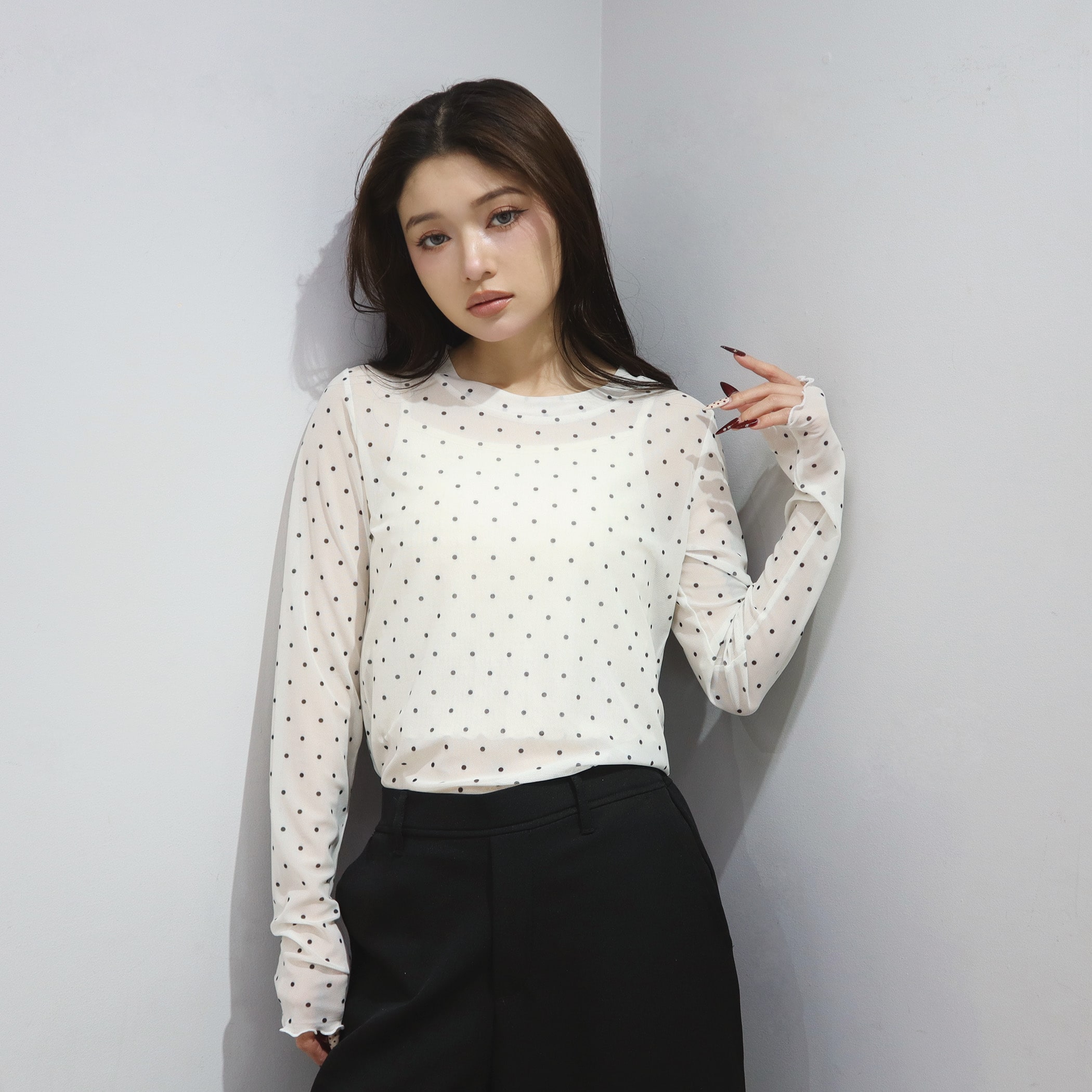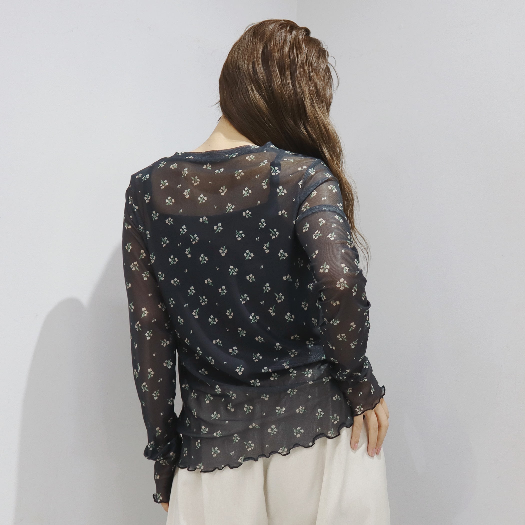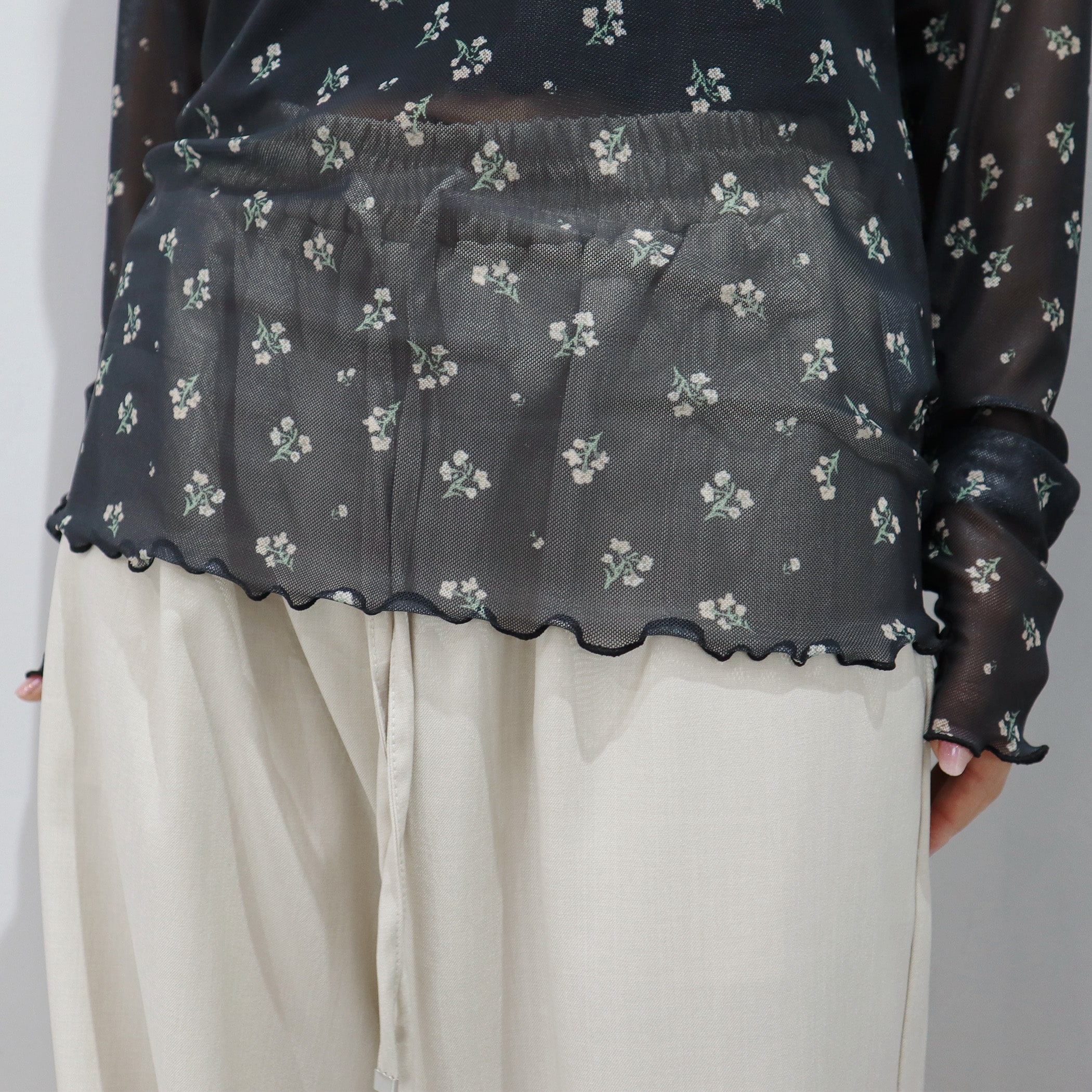 トップスとしてもレイヤードアイテムとしても着用できるシアートップス。透け感がありますが透け過ぎないので、肌見せが苦手な方も着用しやすいアイテムです。着膨れしないサイズ感になっているので、トレーナーやTシャツやワンピなどの下に着用いただくとトレンドのレイヤードスタイルをお楽しみいただけます。