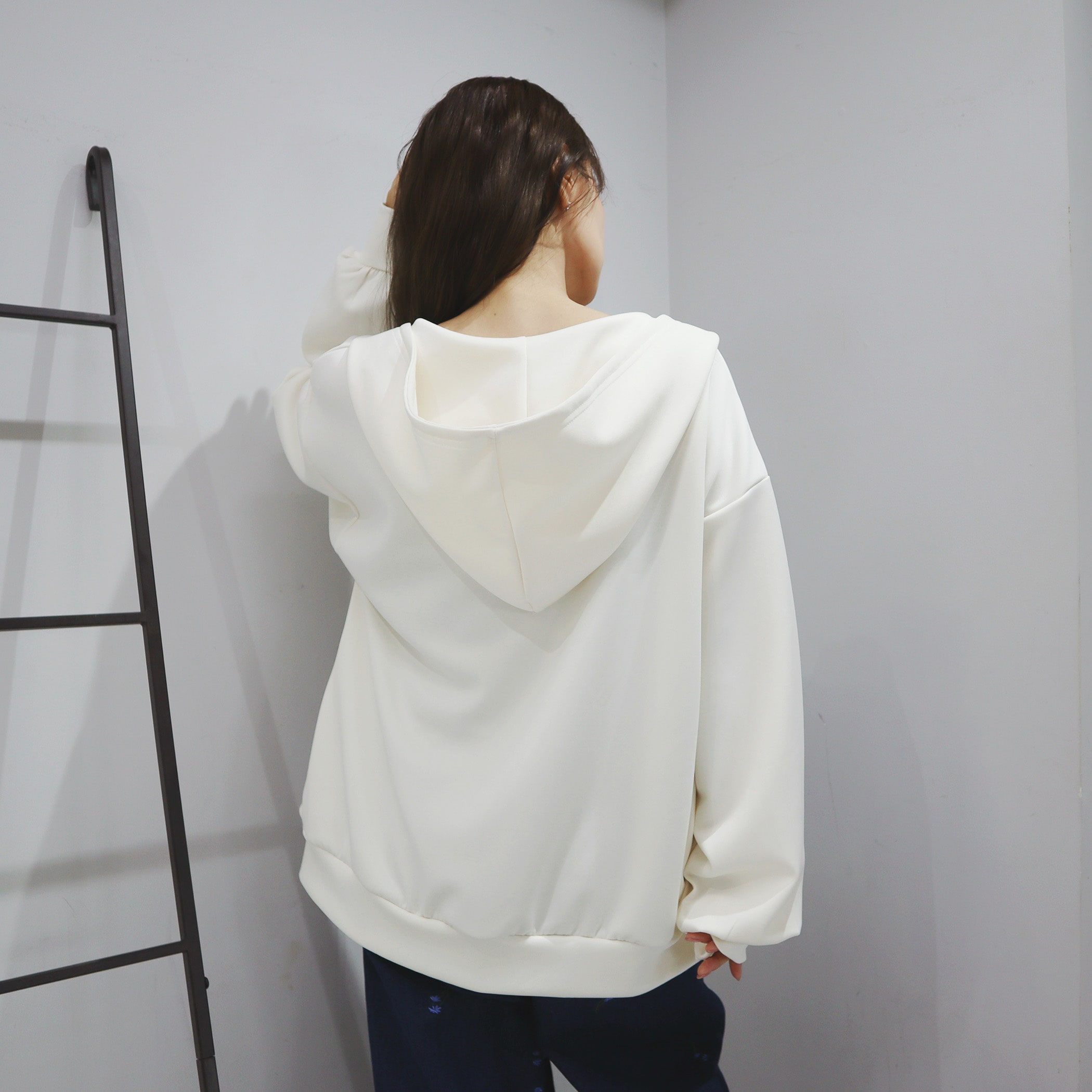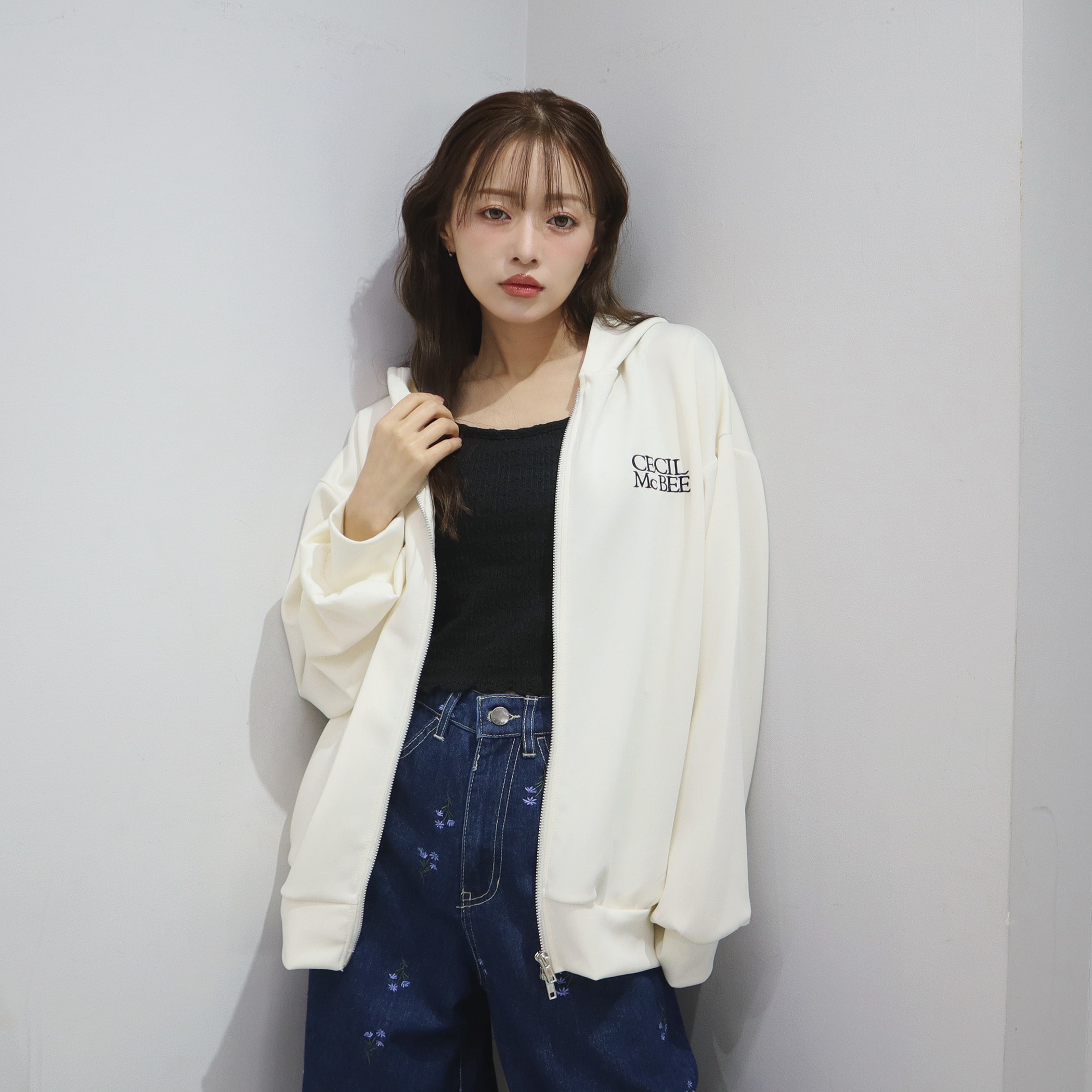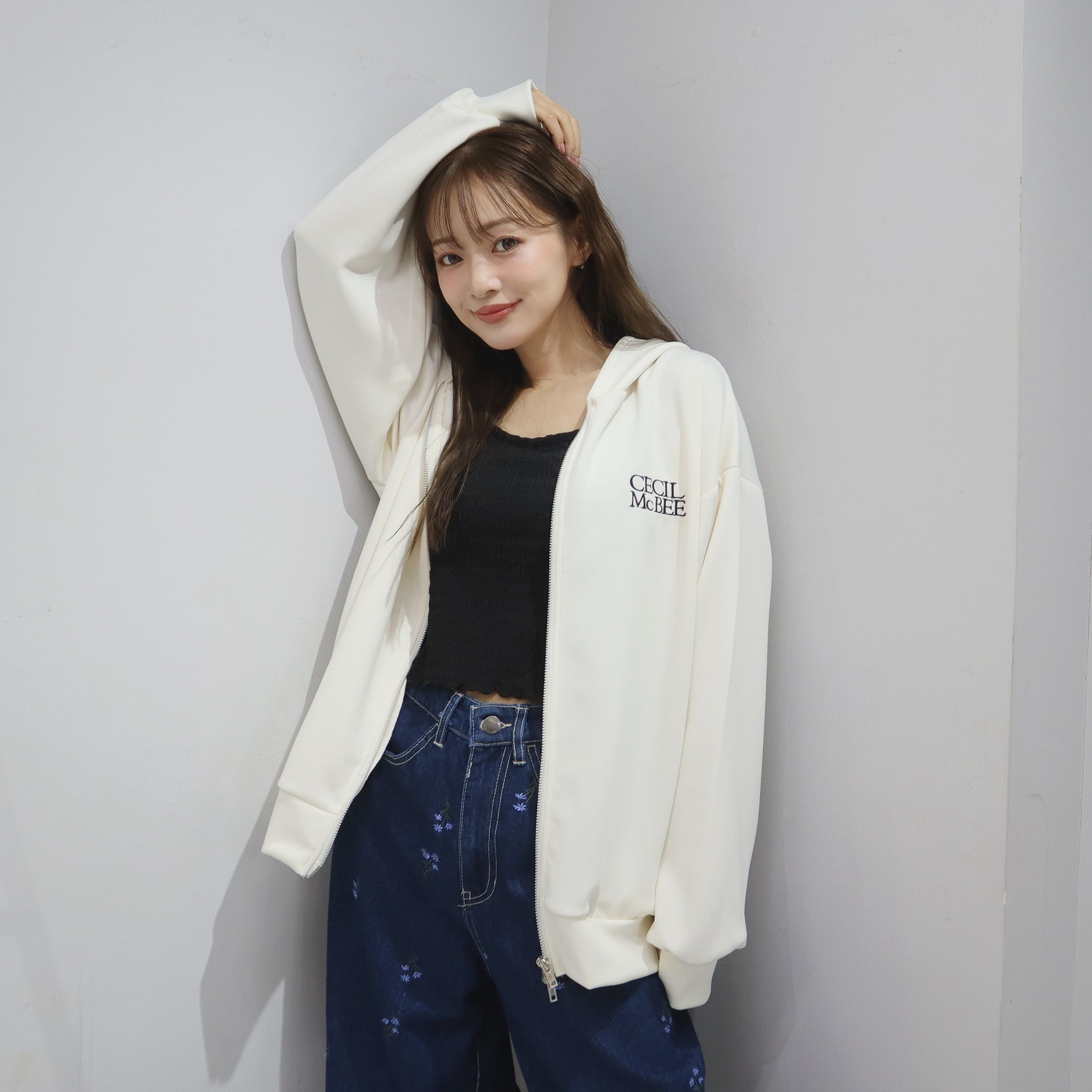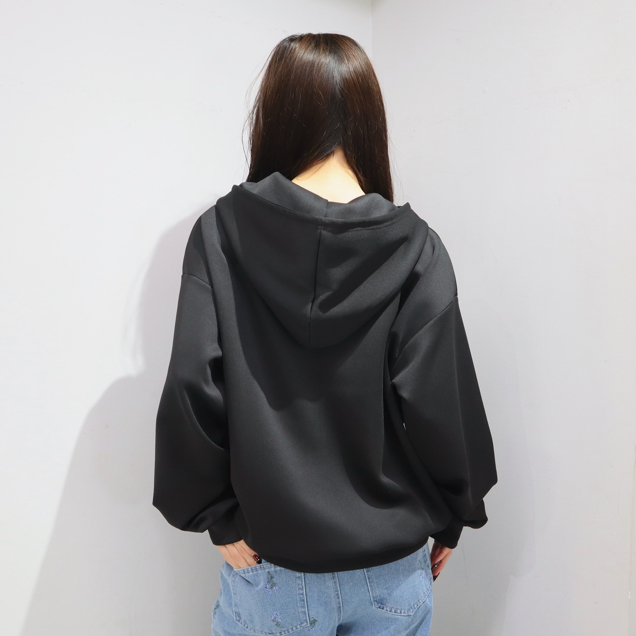 左胸ブランドロゴ刺繍がさりげなくオシャレなパーカー。きれいめなダンボール素材なのでカジュアルになりすぎず、肩の落ちたゆとりのあるシルエットなので華奢見えとこなれ感を持たせてくれます。パンツにもスカートにも合わせやすく、普段使いしやすい一枚です。