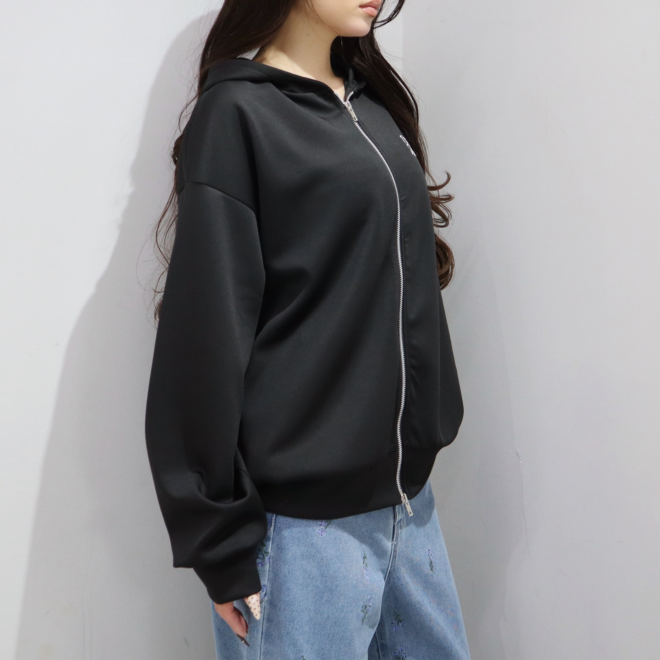 刺繍ロゴジップアップパーカー