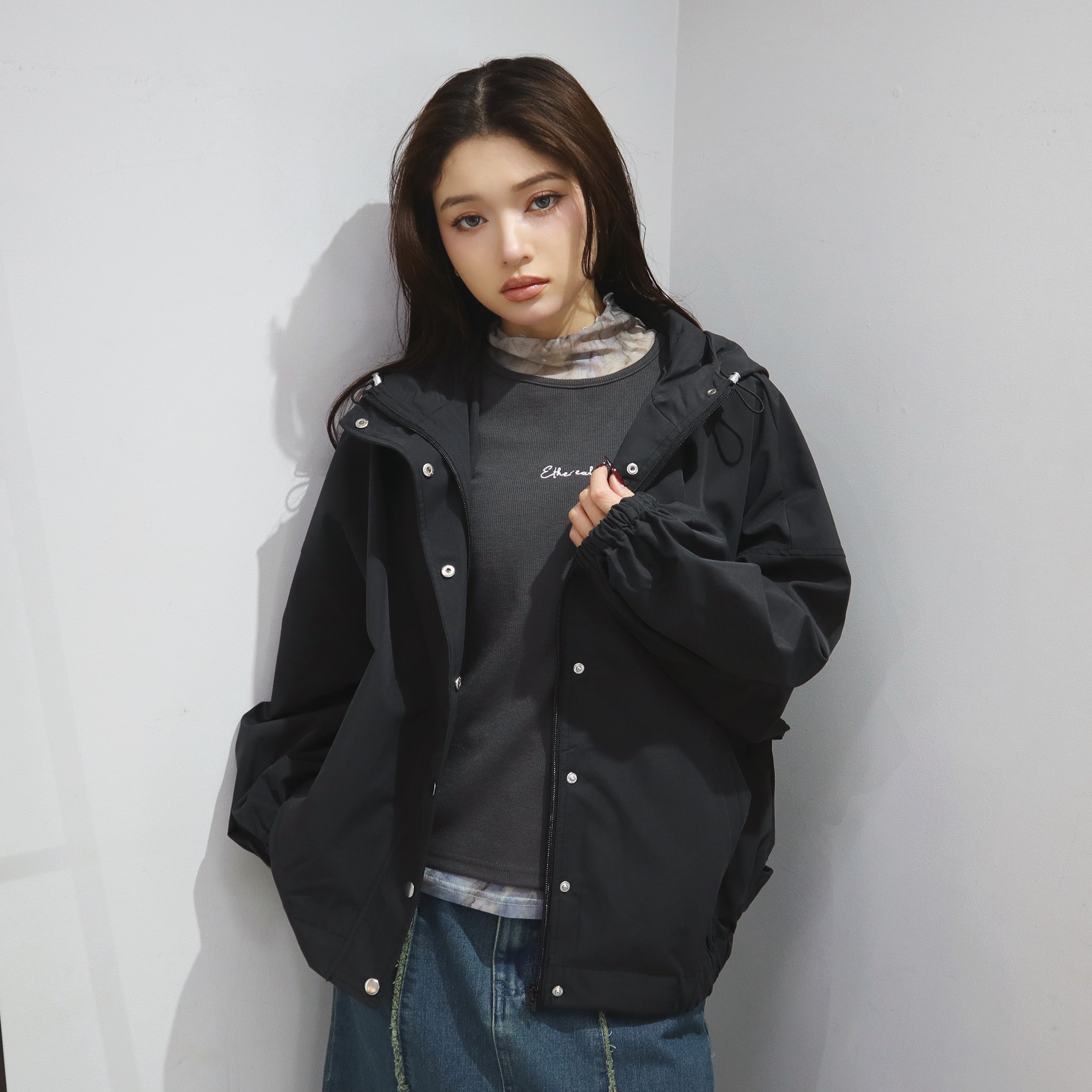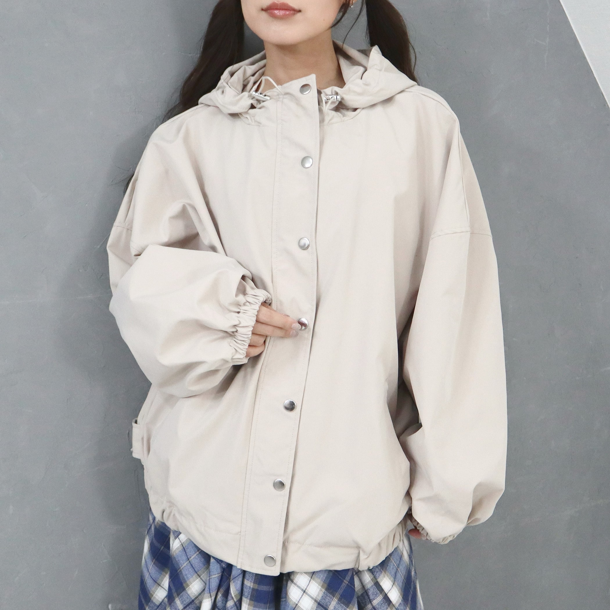 トレンドに左右されないオーバーサイズのフーディアウター。UV加工と撥水加工が施されていて、デザイン性もあり機能性もある優秀アイテムです。オーバーサイズにドロップショルダーが羽織るだけで華奢見せさせてくれて、こなれ感を持たせてくれます。