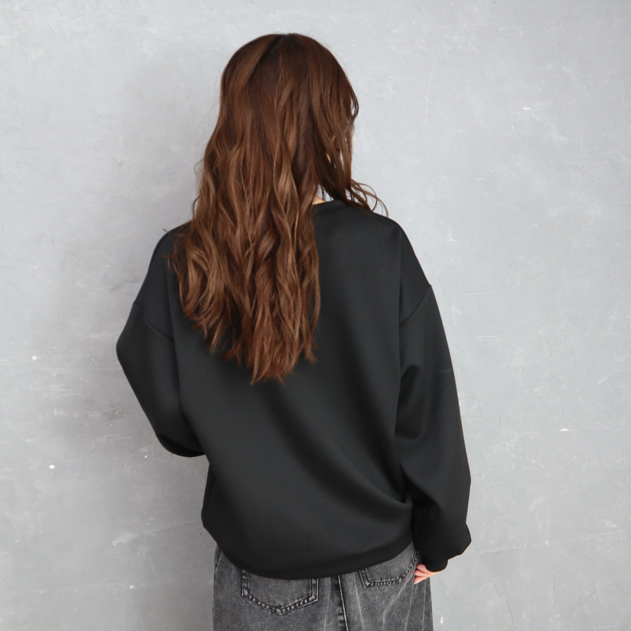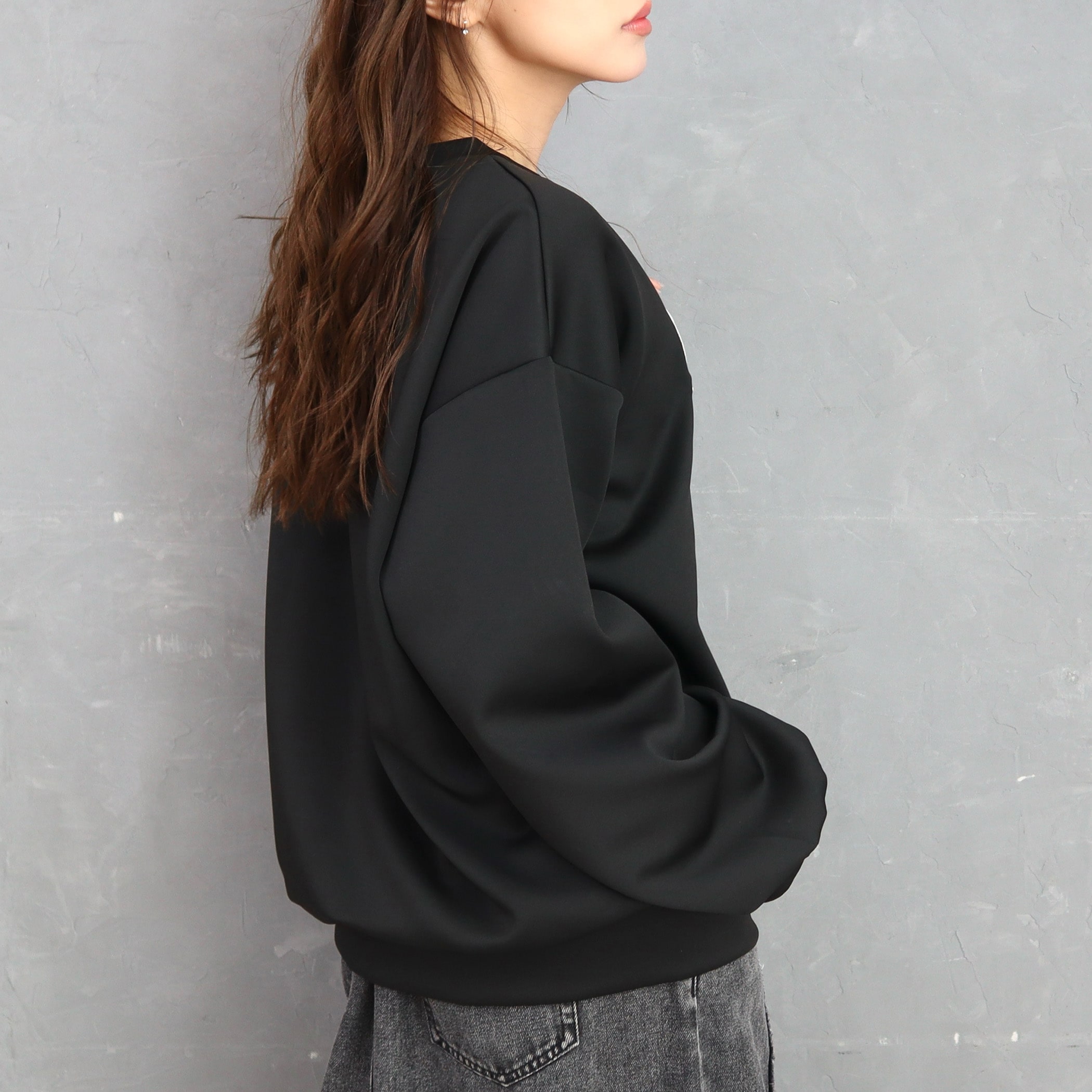 フロントのブランドロゴがアクセントになったトレーナー。きれいめなダンボール素材なのでカジュアルになりすぎず、肩の落ちたゆとりのあるシルエットなので華奢見えとこなれ感を持たせてくれます。パンツにもスカートにも合わせやすく、普段使いしやすい一枚です。