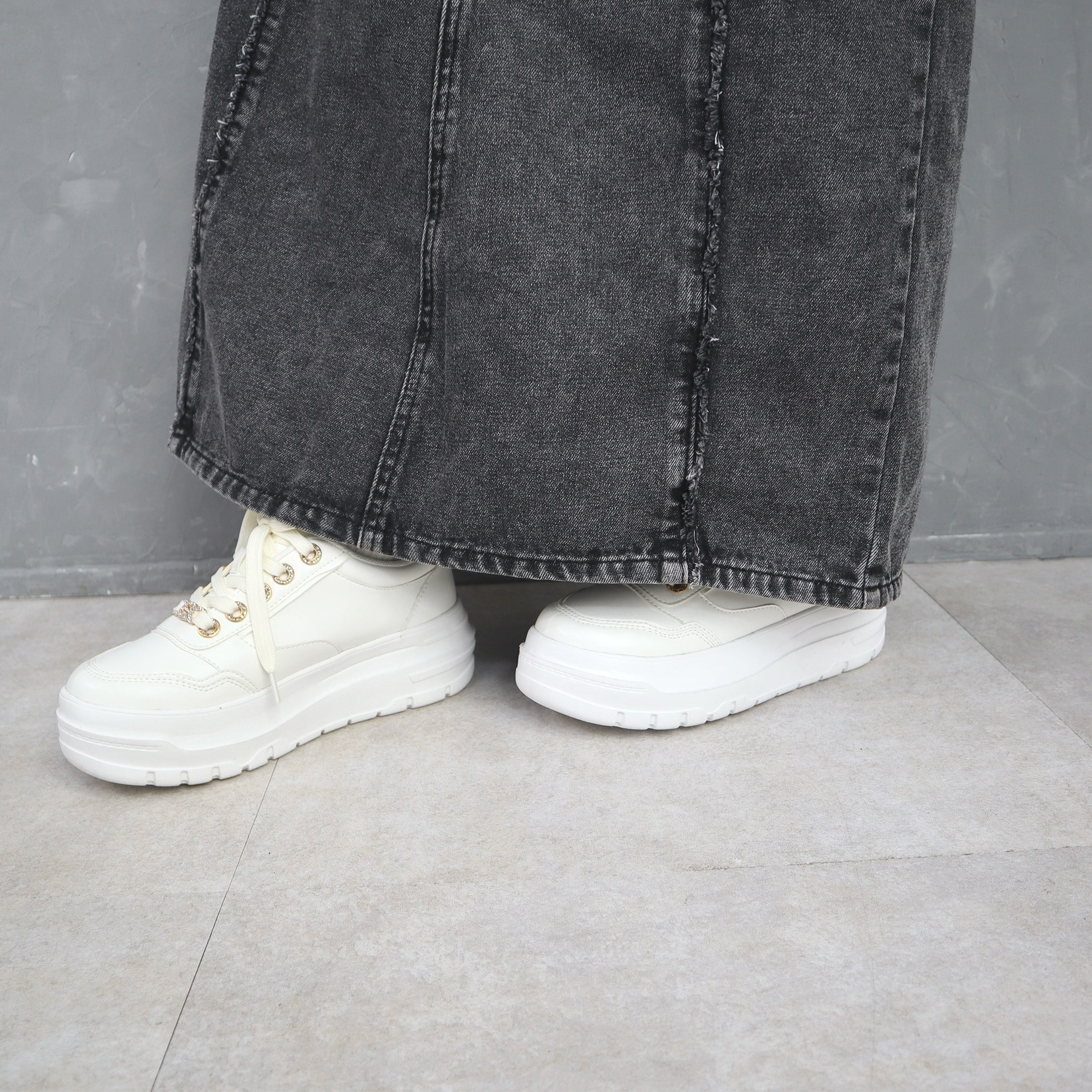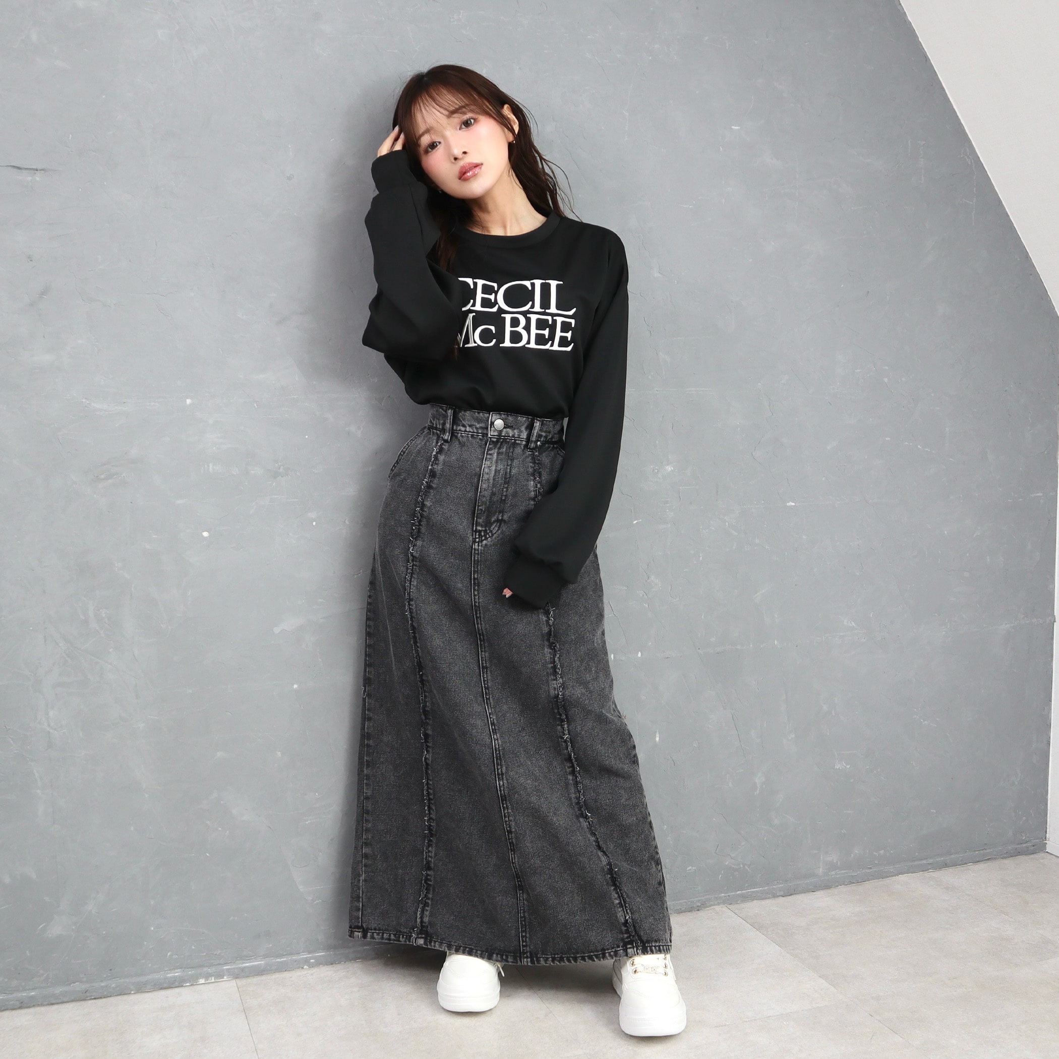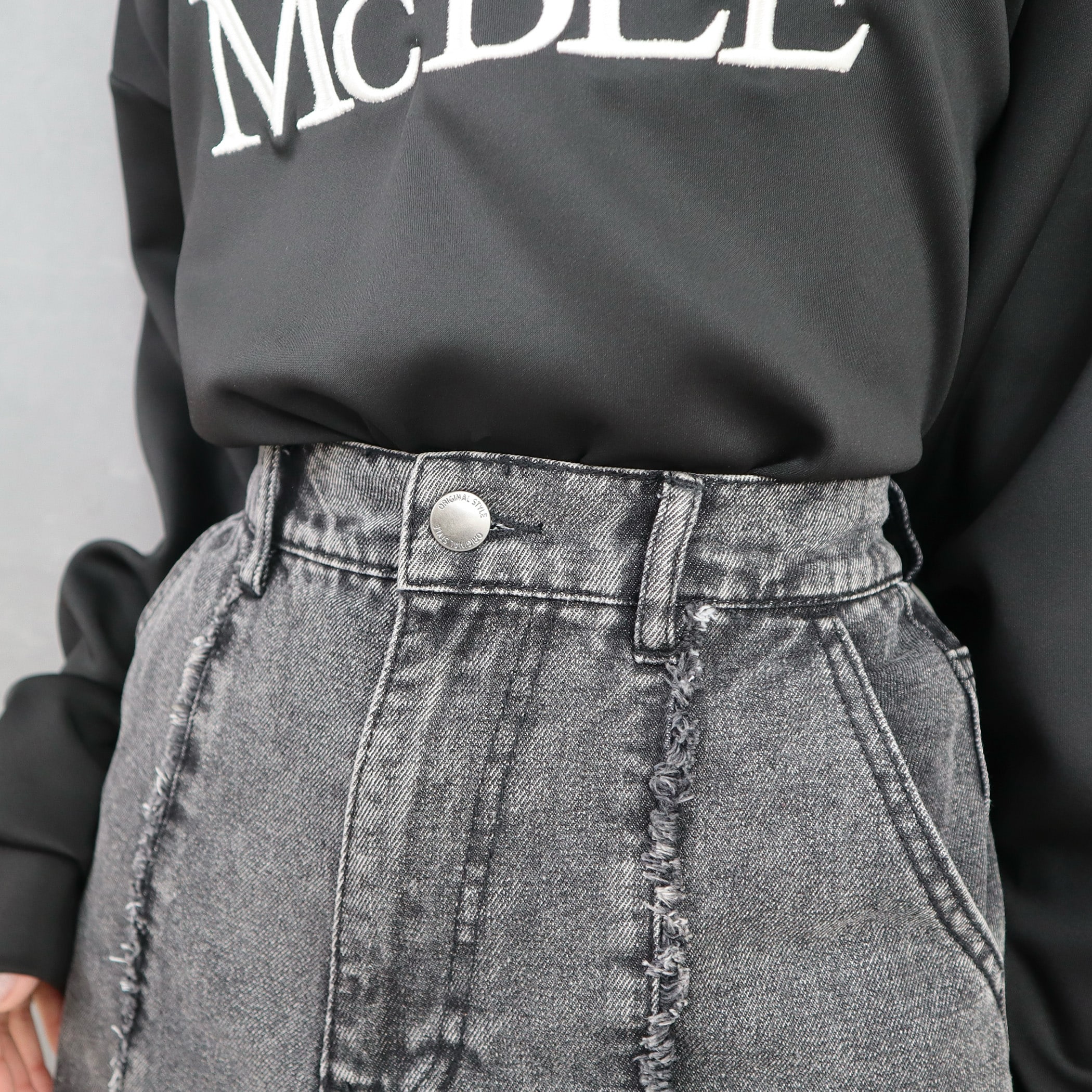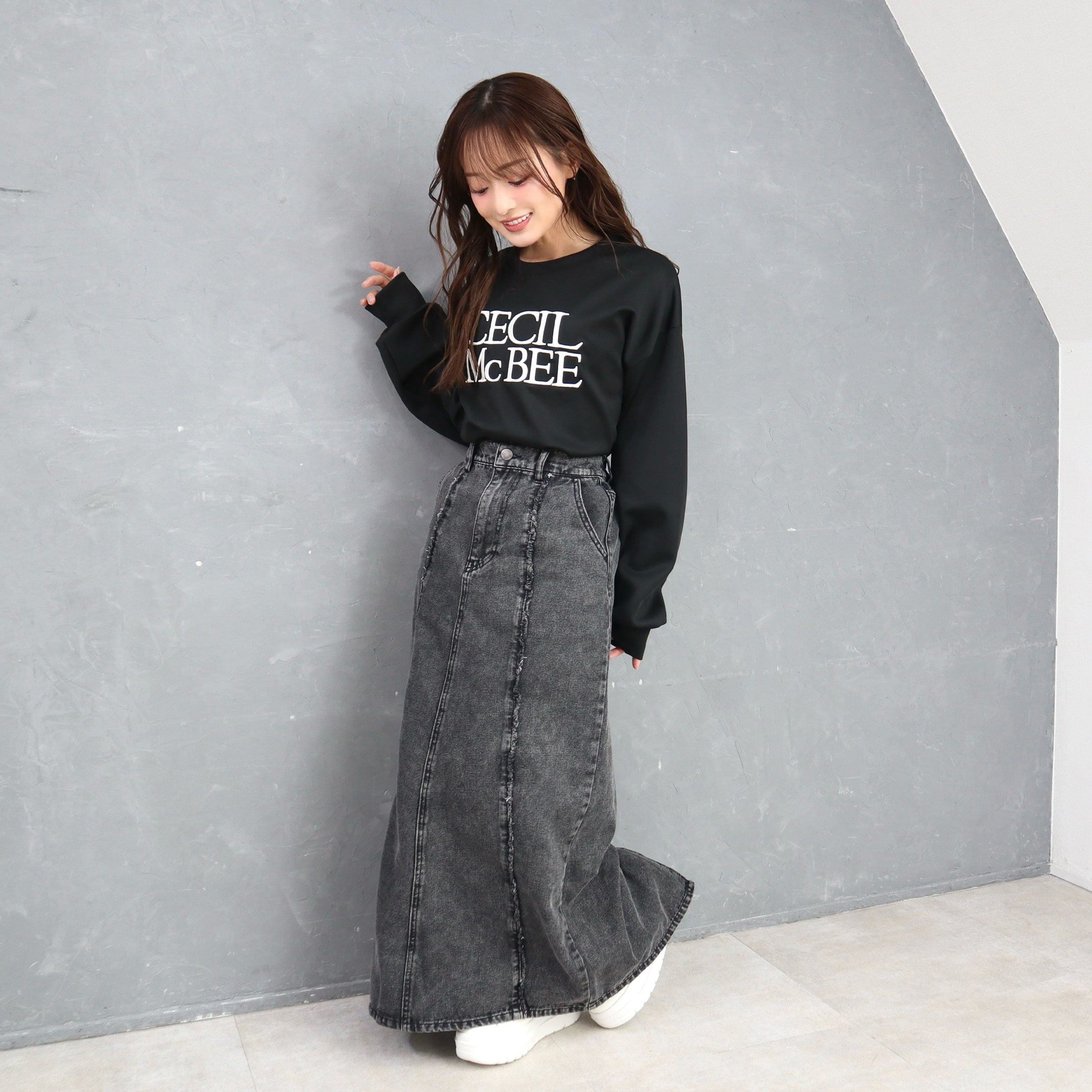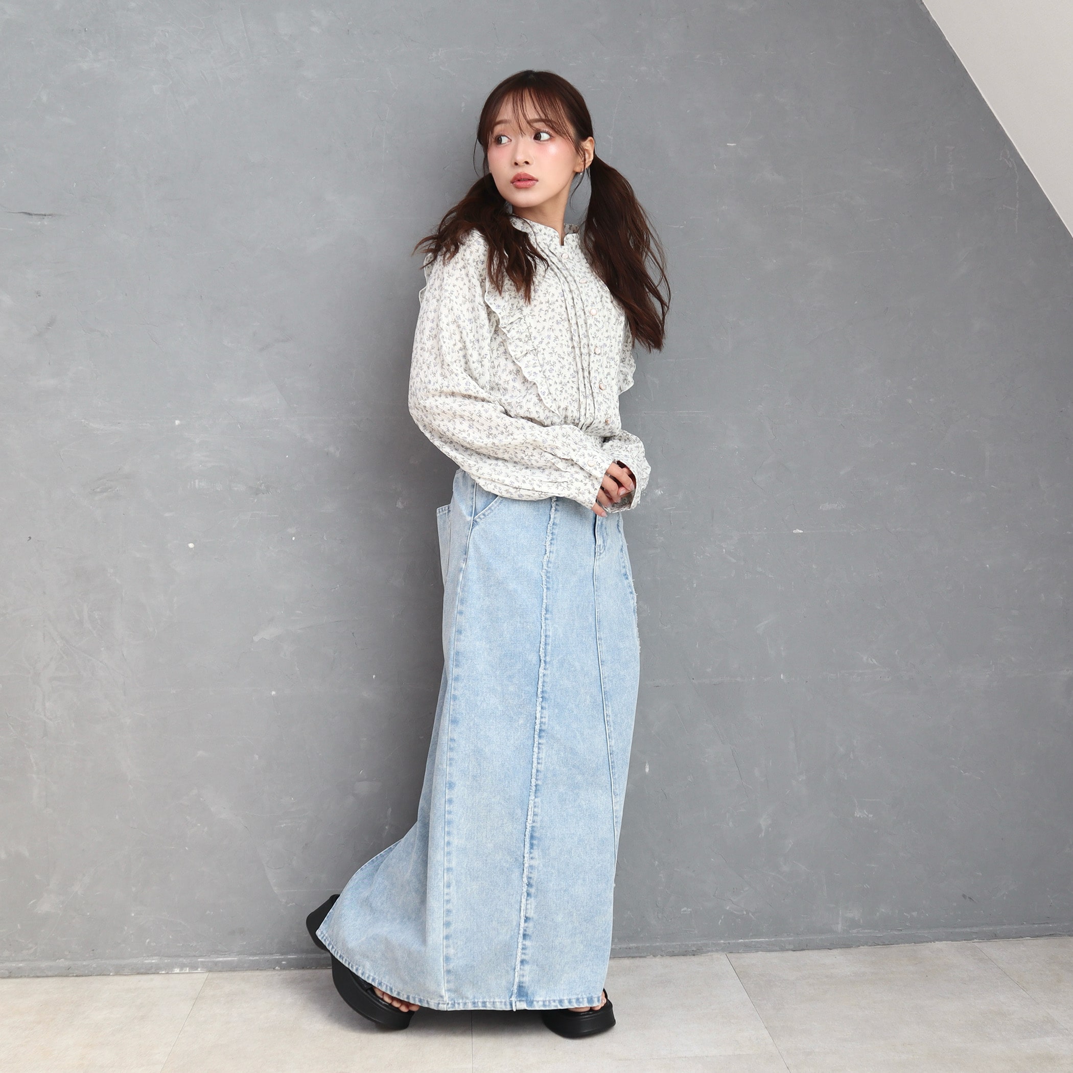 9.5ozデニムフロントフリンジロングスカート