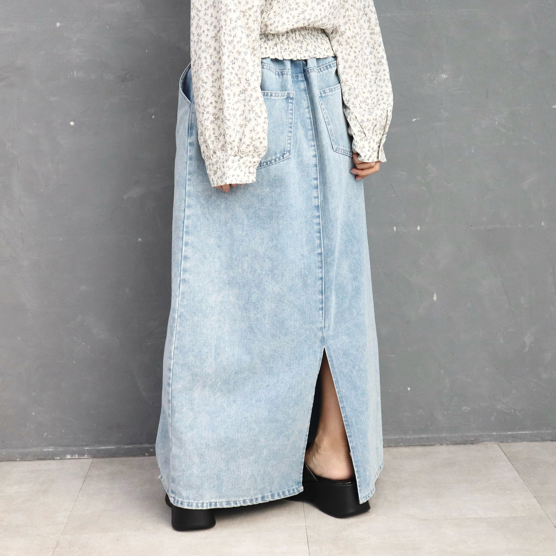 裾に向かってきれいに広がるAラインシルエットが魅力のデニムスカート。腰まわりはすっきりとフィットし、自然なフレア感で脚を長く美しく見せてくれます。縦ラインを強調する切替デザインがスタイルアップ効果をプラス。カジュアルなデニム素材ながら、女性らしくきれい見えする一枚に仕上げました。Tシャツからブラウスまで合わせやすく、デイリーからお出かけまで幅広く活躍する万能スカートです。