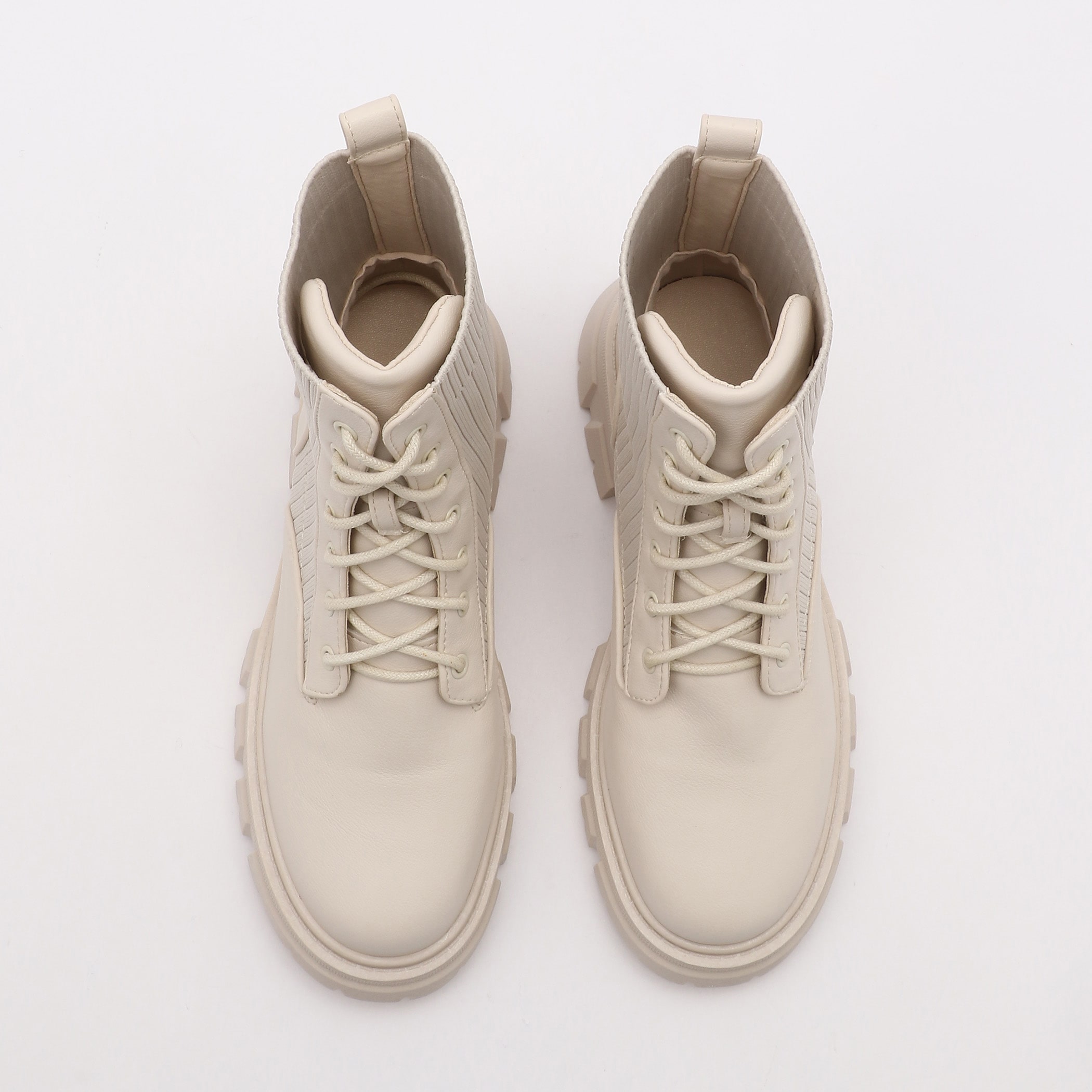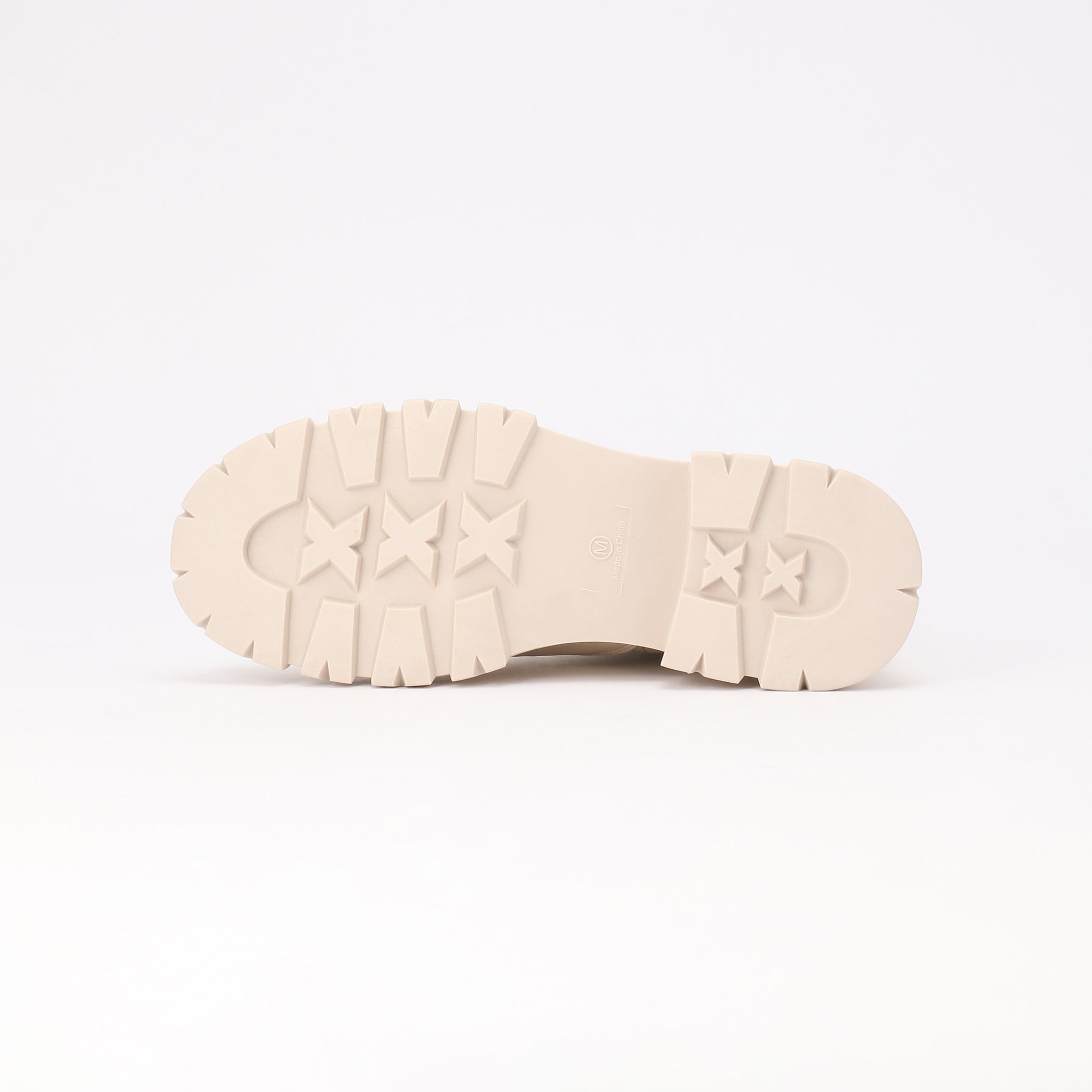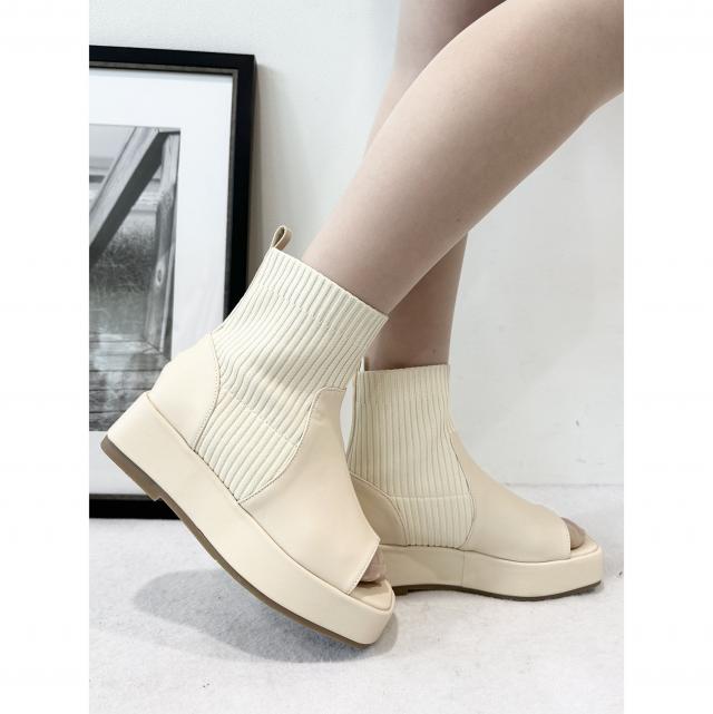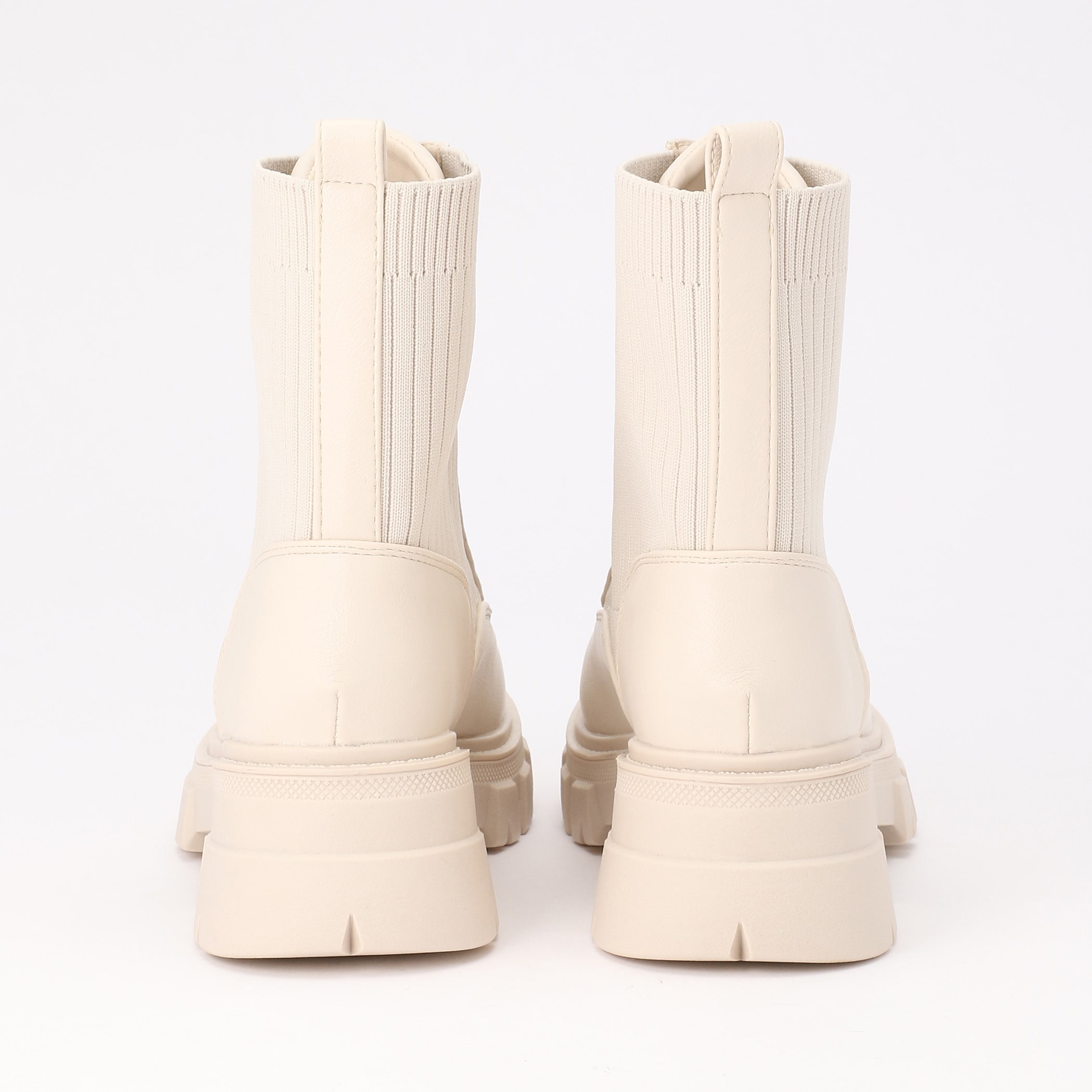 今シーズンも人気のミリタリーテイストのコンバットブーツ。トレンドのサイドニット素材の切り替えはデザイン性と足にフィットする履き心地の機能性両方兼ね備えています。程よい厚底でスタイルアップを叶えつつ、レースアップ初心者でも取り入れやすい形です。