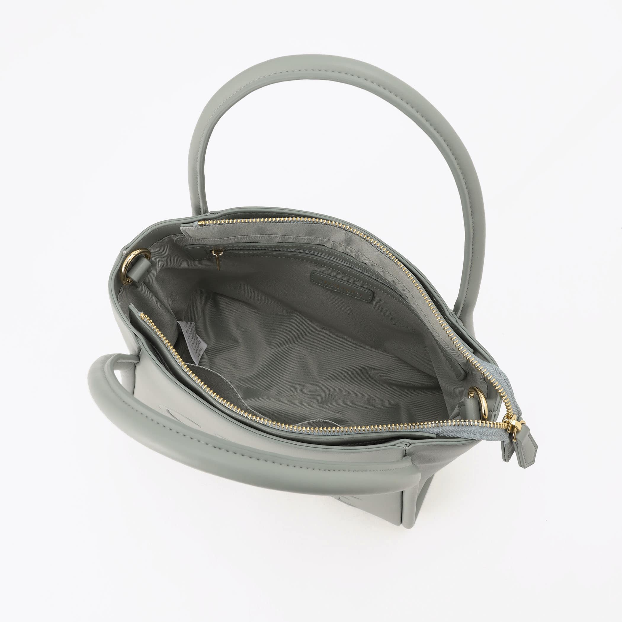 インパクトのある凸ロゴがポイントのシリーズ。丸みのあるコロンとしたシルエットが柔らかな印象で春の装いにぴったり トレンドのビッグトートはフォルムを変えられる7WAY使用