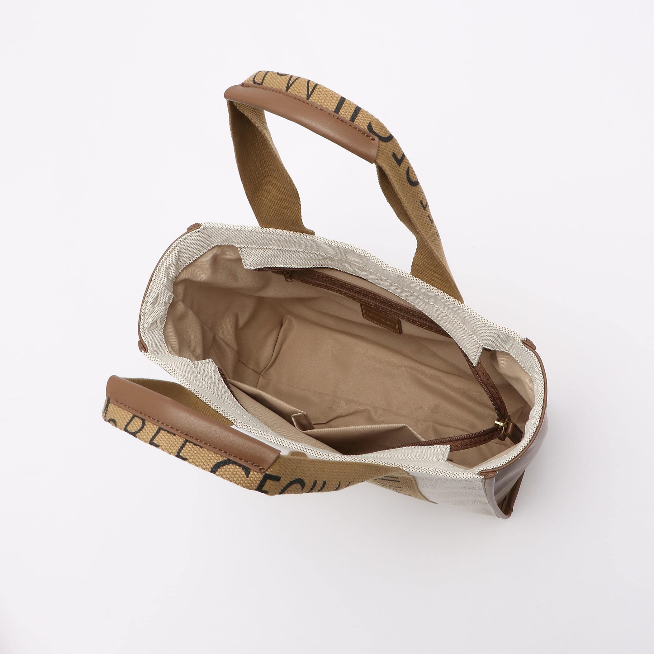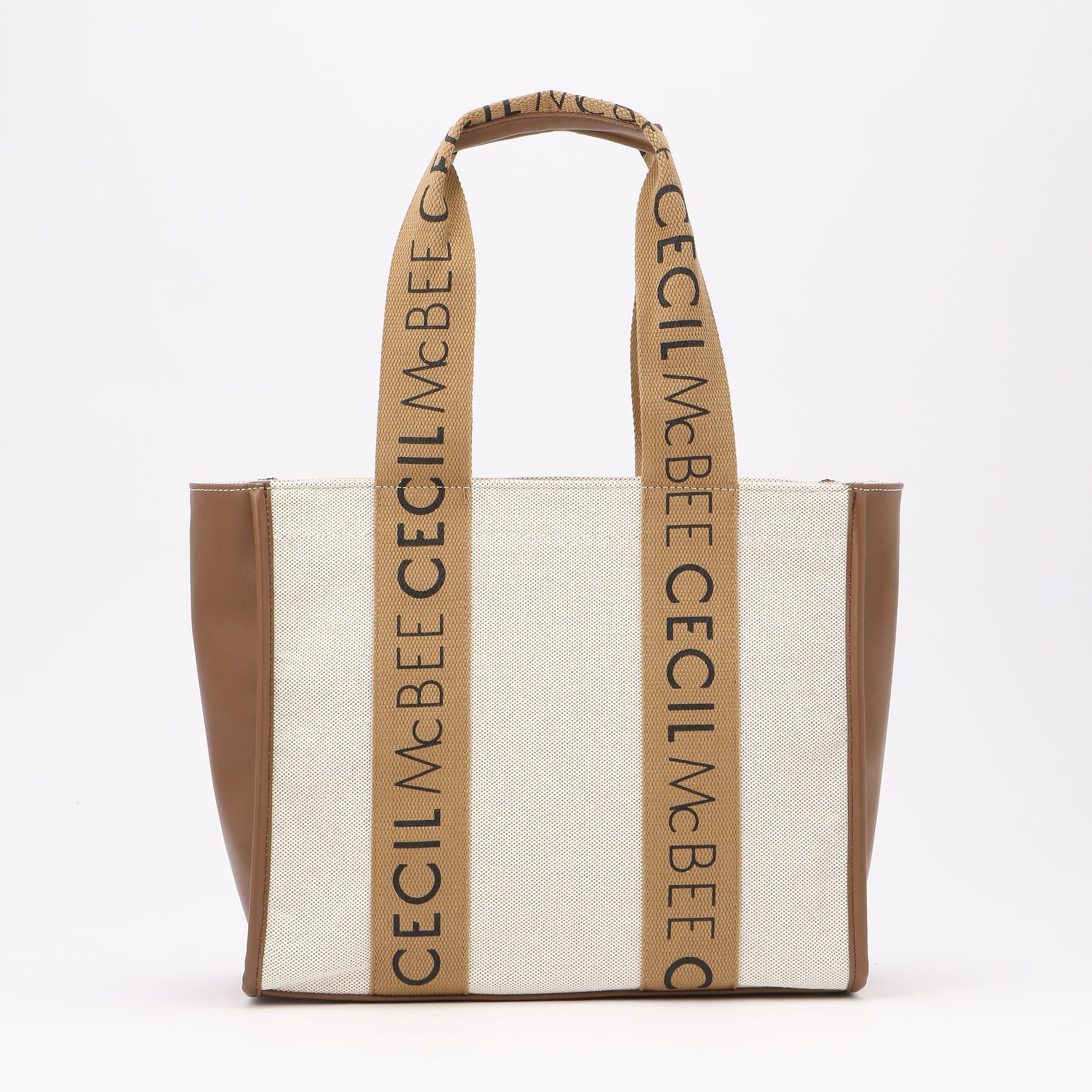 キャンバス素材が季節感を演出。CECILMcBEEのロゴでアクセントをプラスしています 春夏の装いにぴったりなバッグに仕上げました