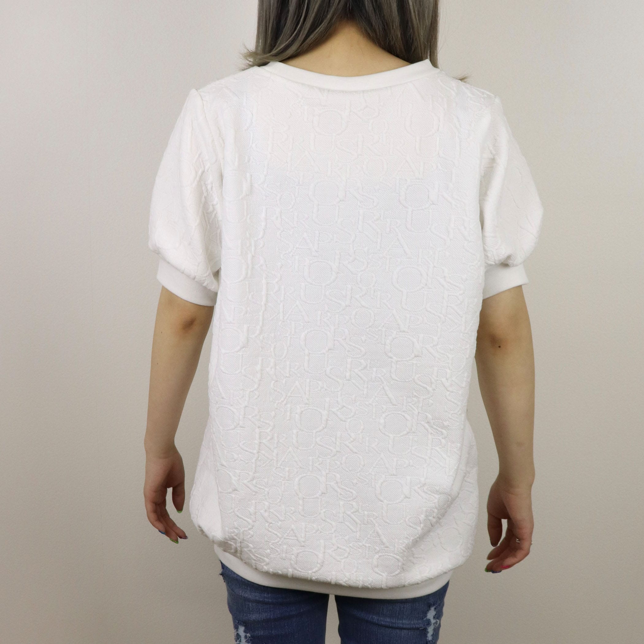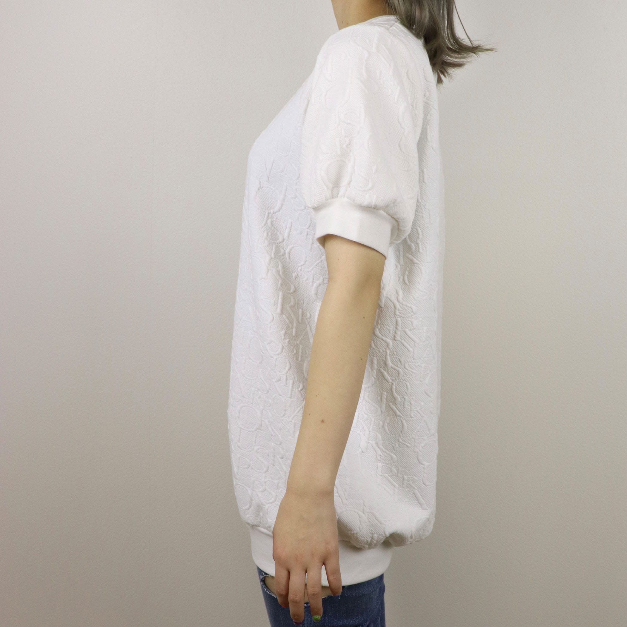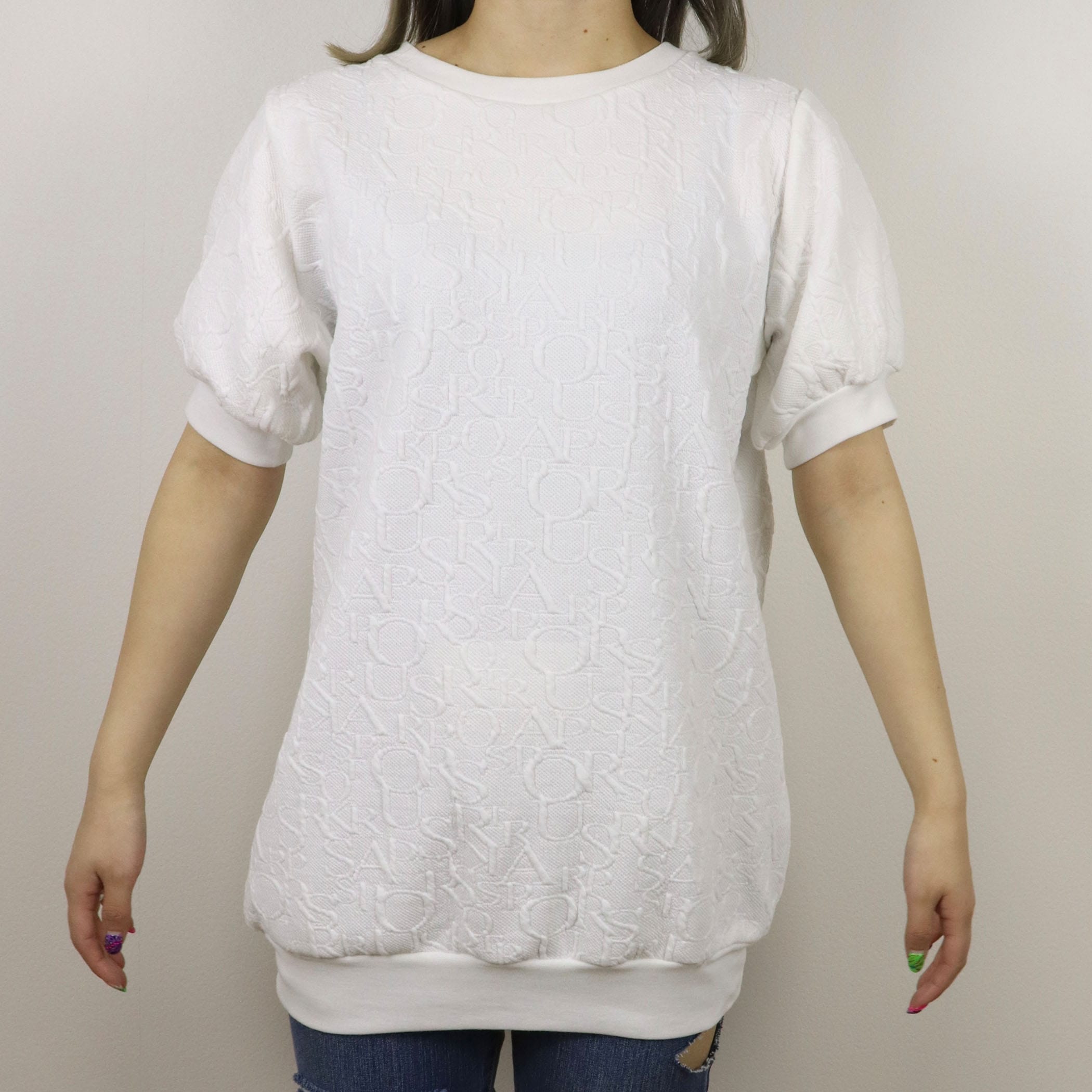 凹凸感のある英字柄が高見えする、ミニ丈ワンピース。