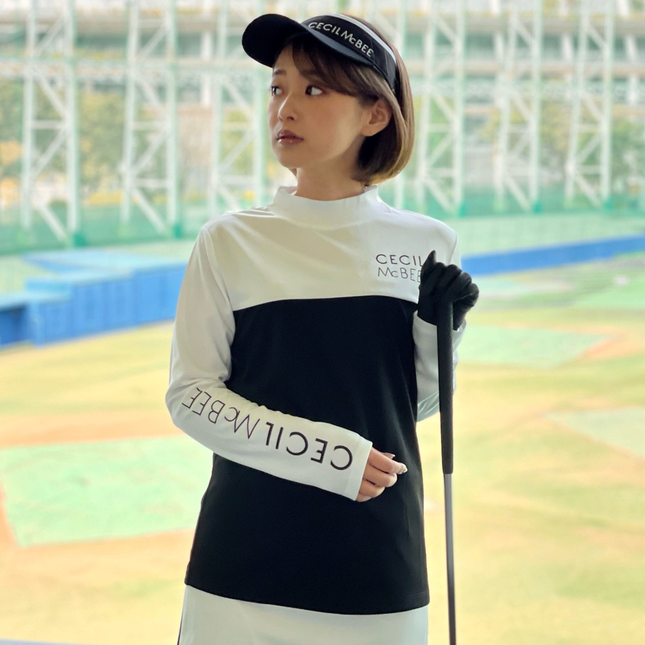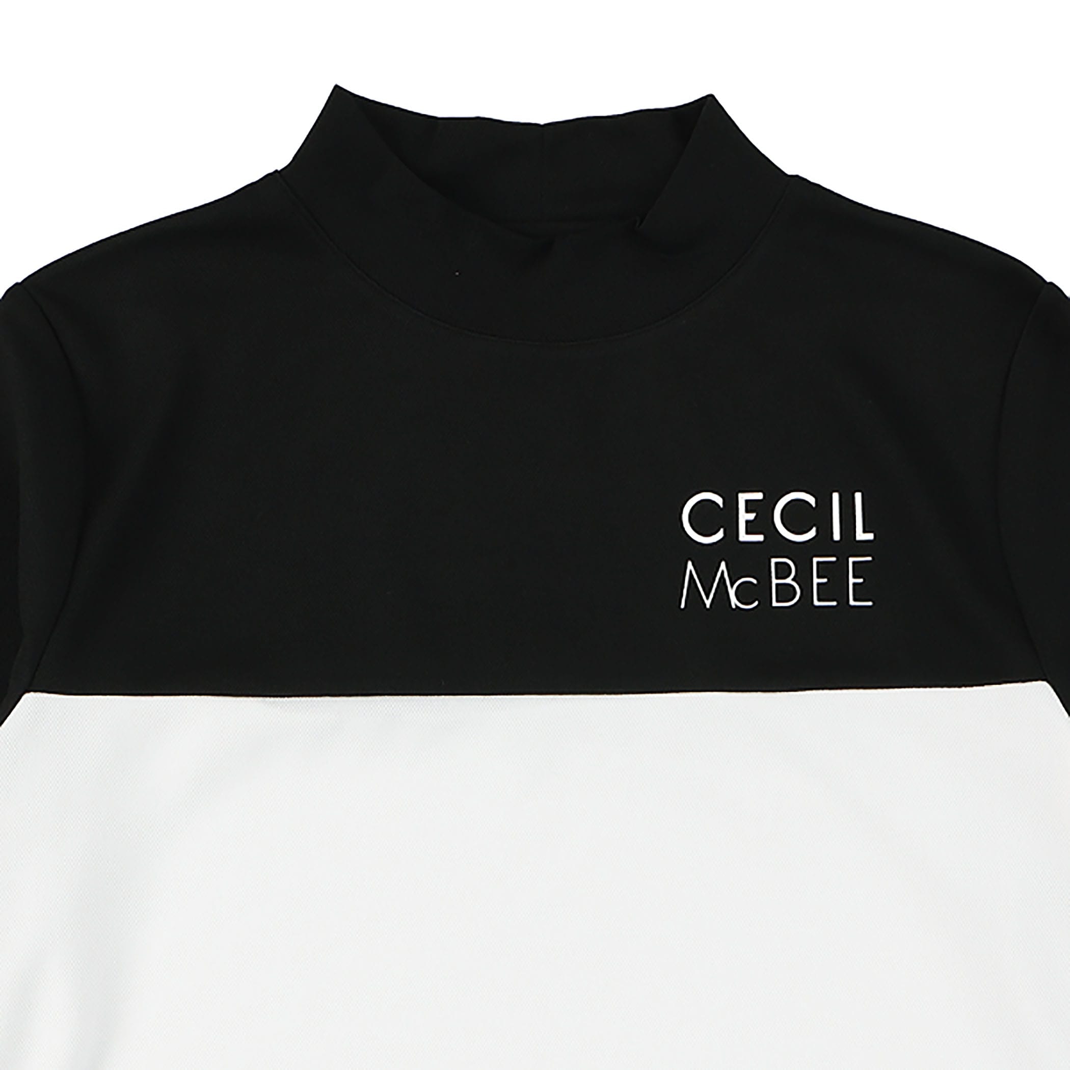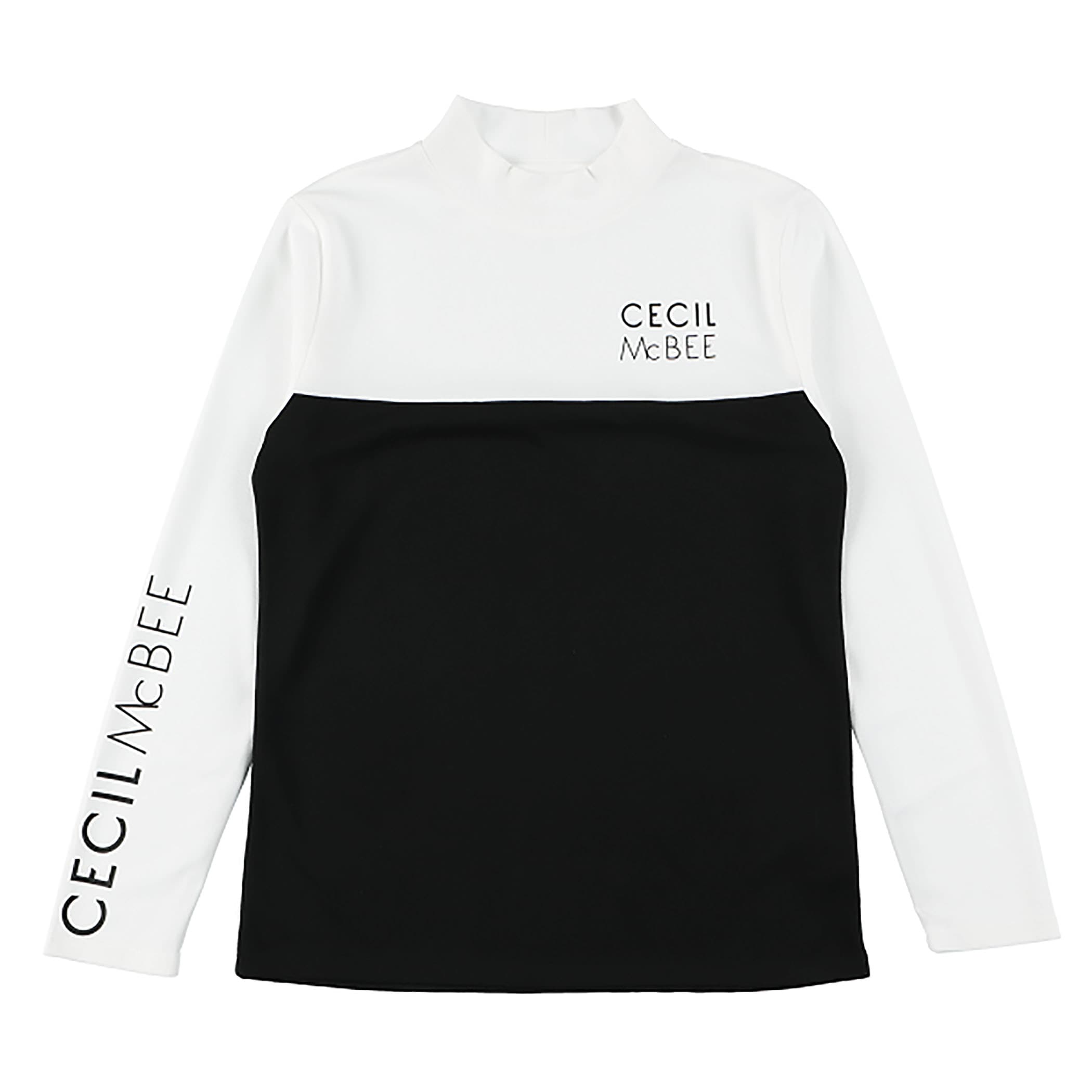 左胸と右袖ににCECIL McBEE のロゴが入ったモックネックバイカラーロングスリーブTシャツ。バイカラーで1枚で着てもオシャレでスポーティな印象になります。ウエストを少し絞っているので、着やせ効果もあるシルエットにしています。シンプルなモックネックロングTシャツなので、1枚で着るのはもちろん、ベストやアウターのインナーとしても、コーディネートの幅が広がります。ポリエステルなので、速乾性があります。