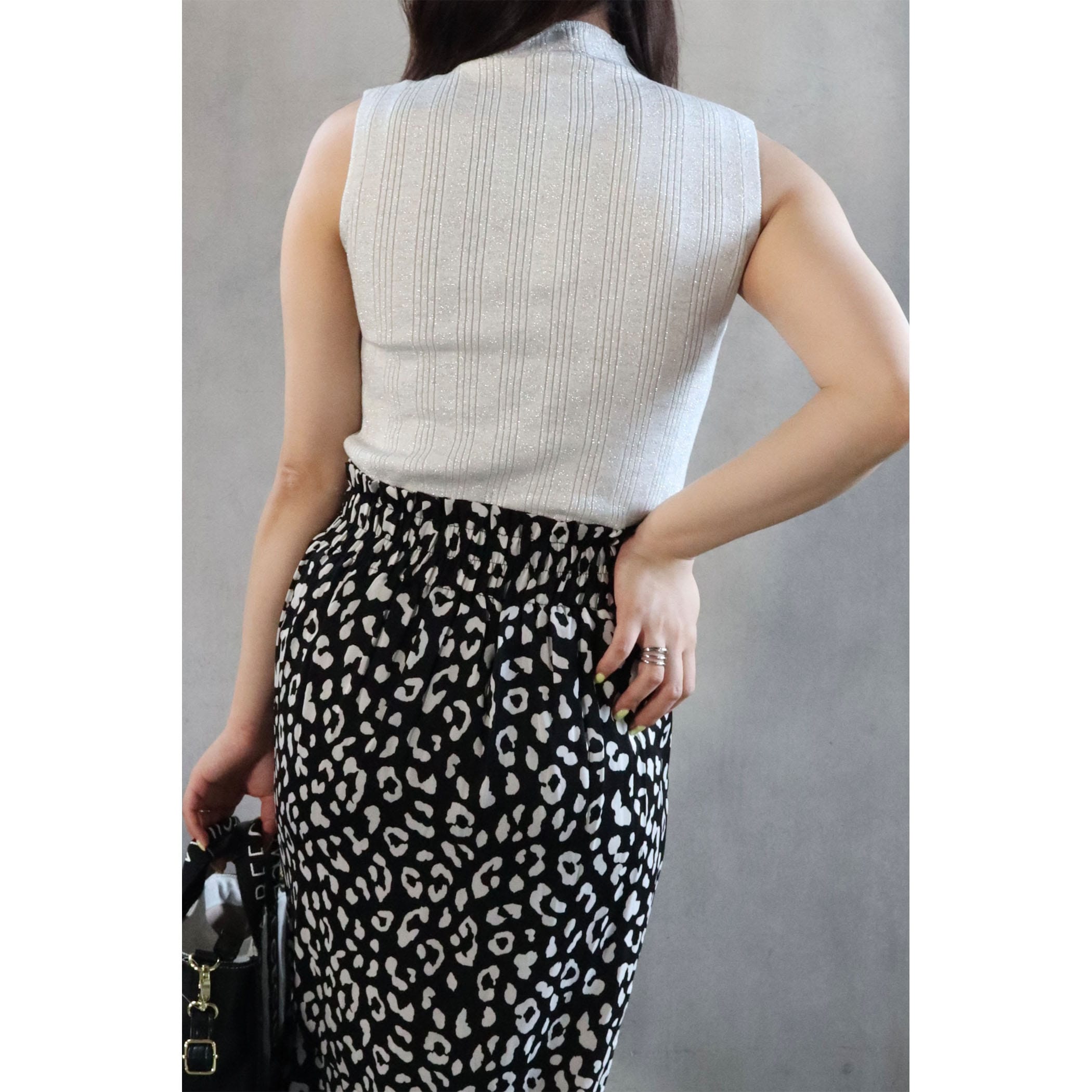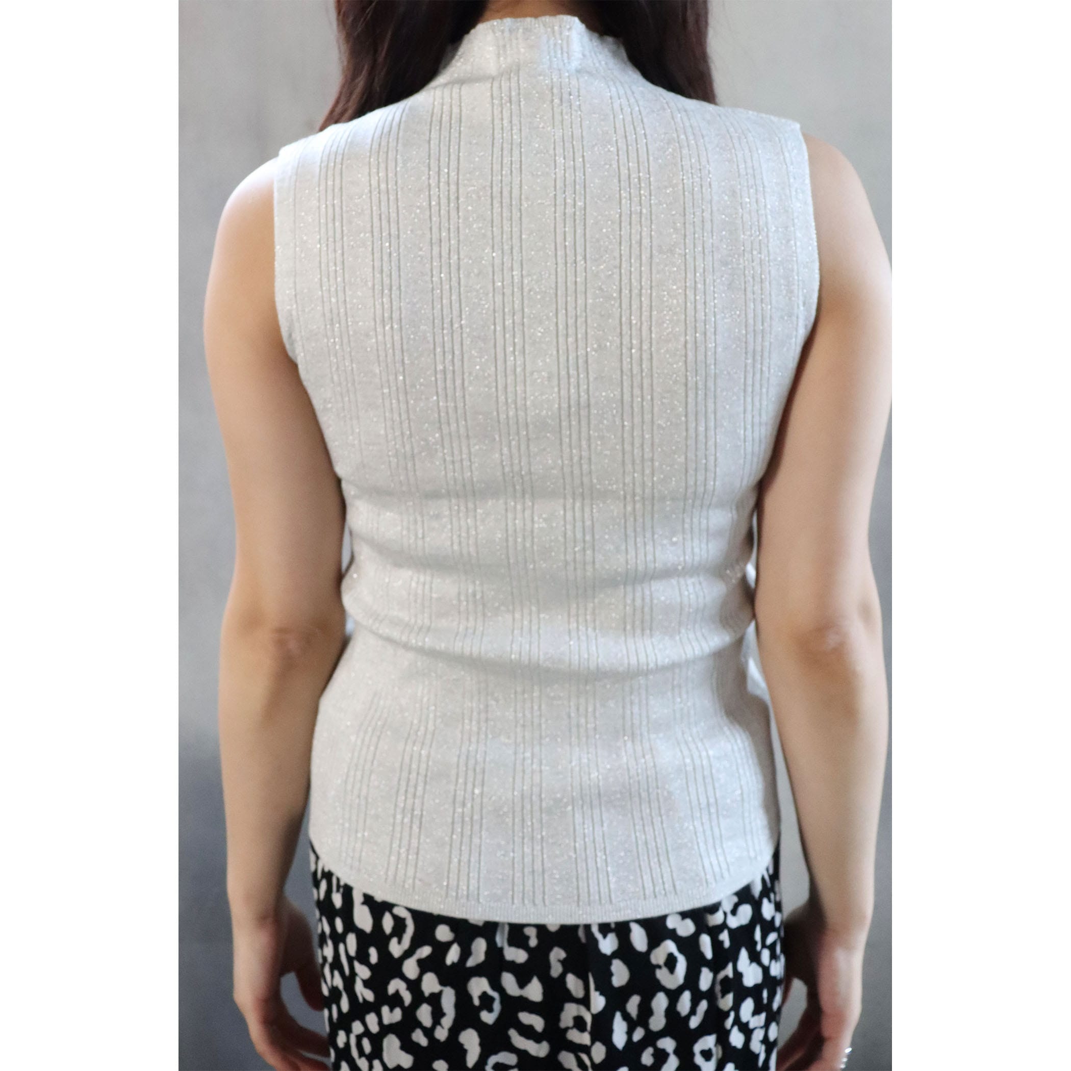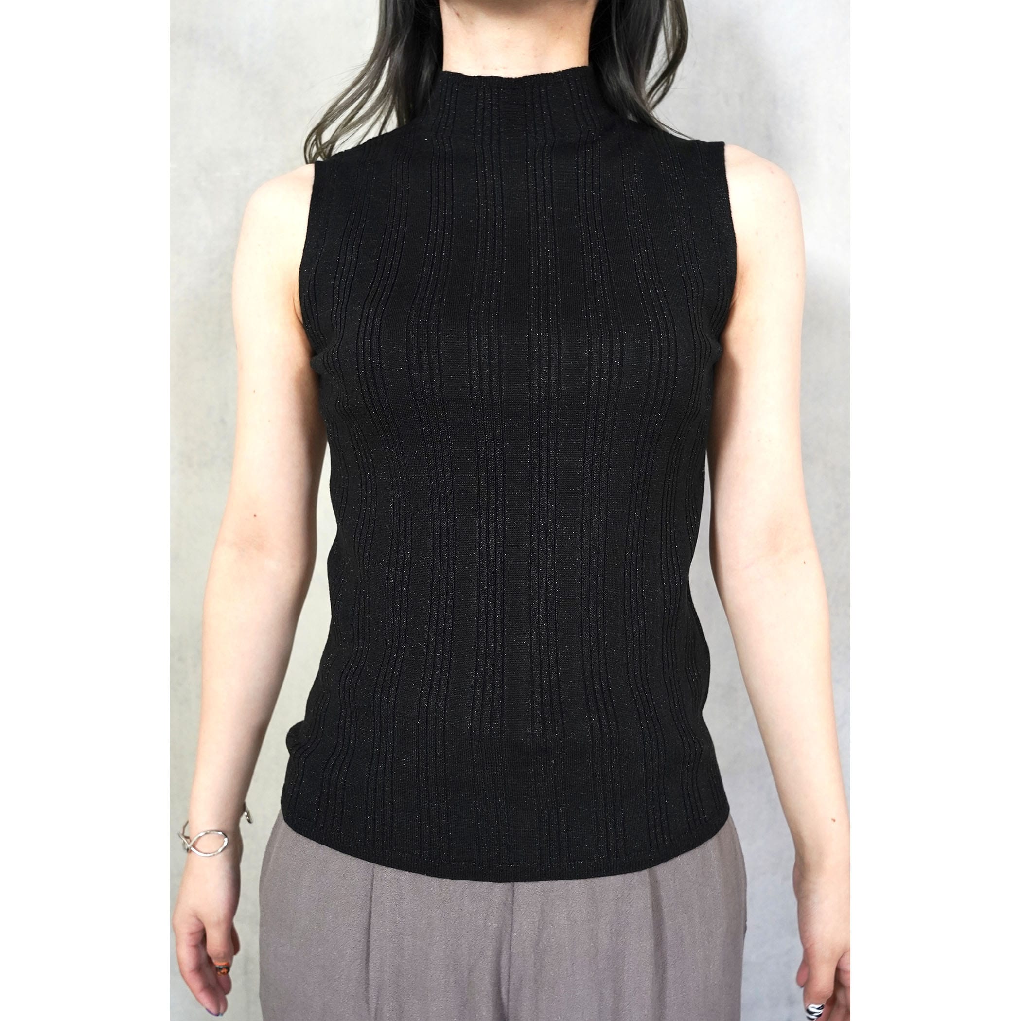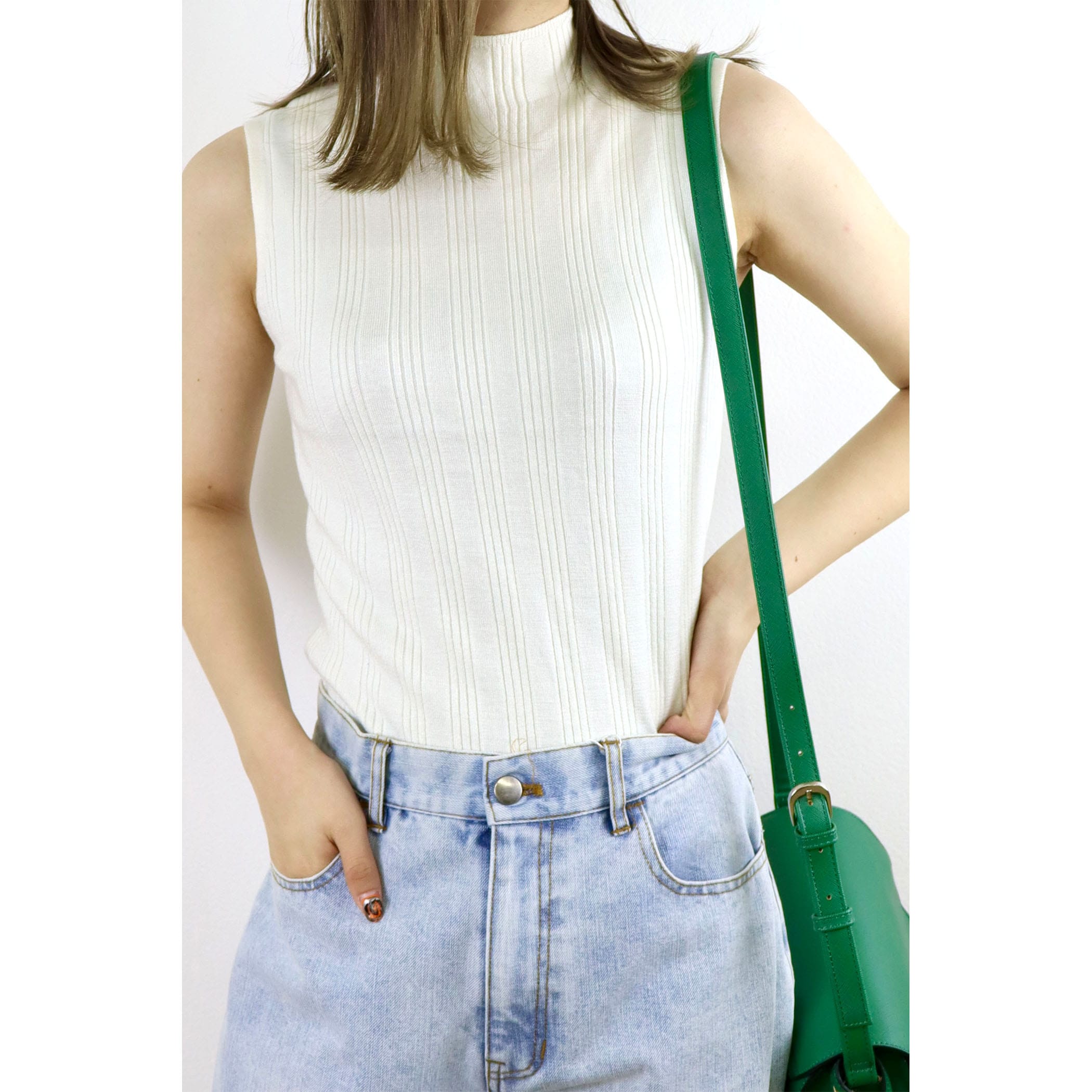 顔まわりをスッキリまとめたボトルネックノースリーブニット。程よく体にフィットするベーシックなデザインと目の詰まったハイゲージで着心地も抜群です。縦リブはスタイルアップを演出。。スカートにもパンツにも合わせやすく、カジュアルからキレイめスタイルまで着回しできます。