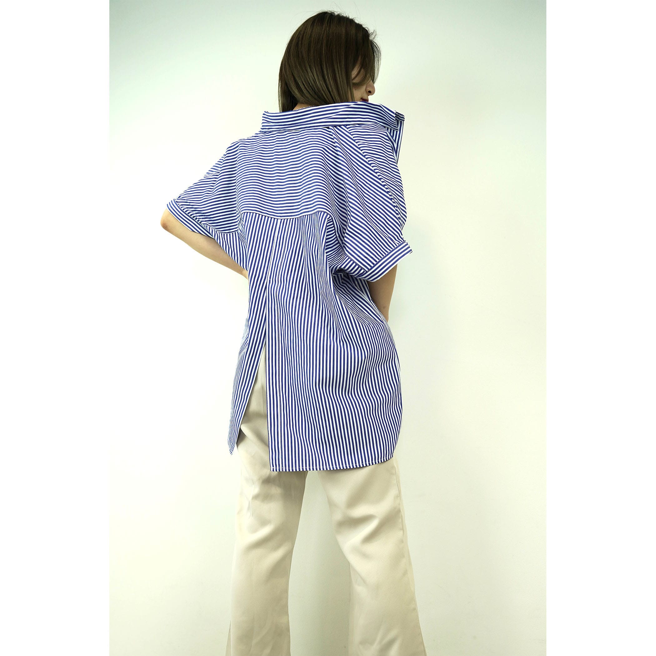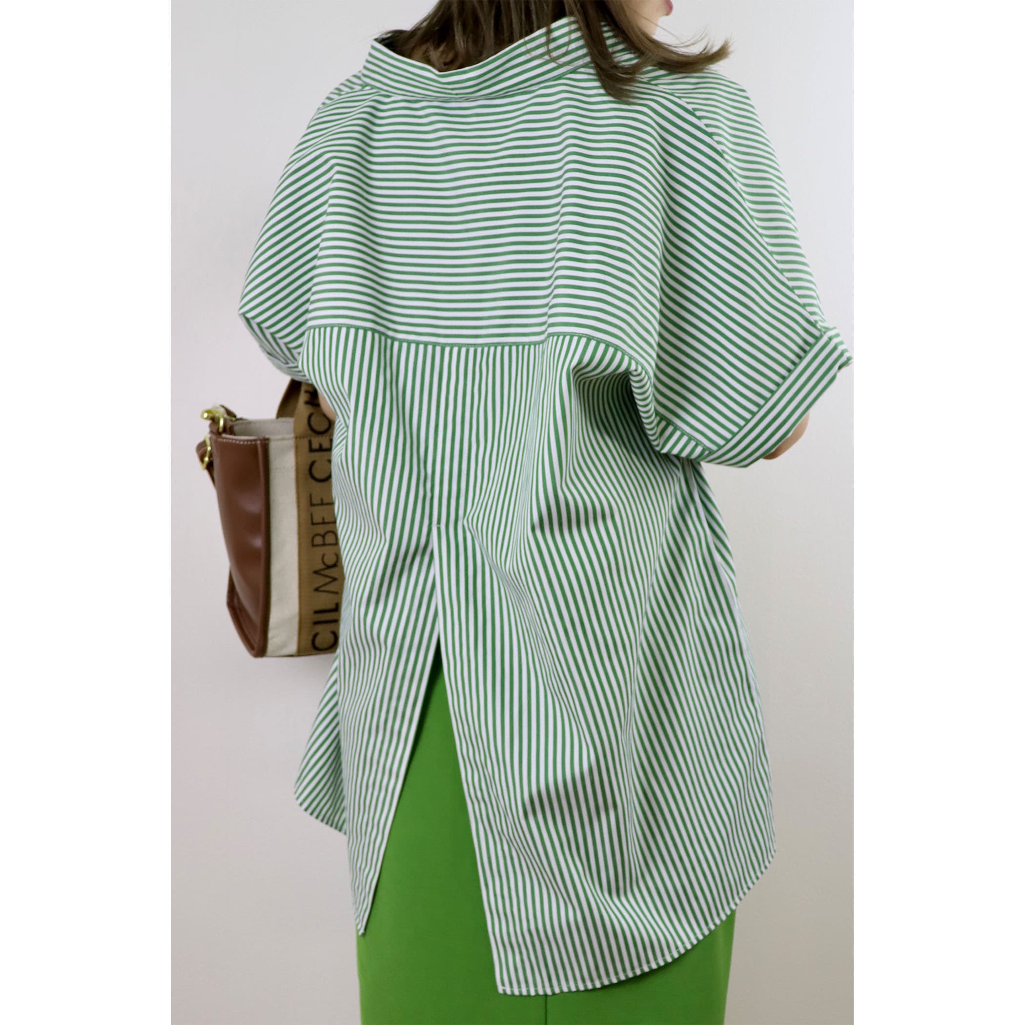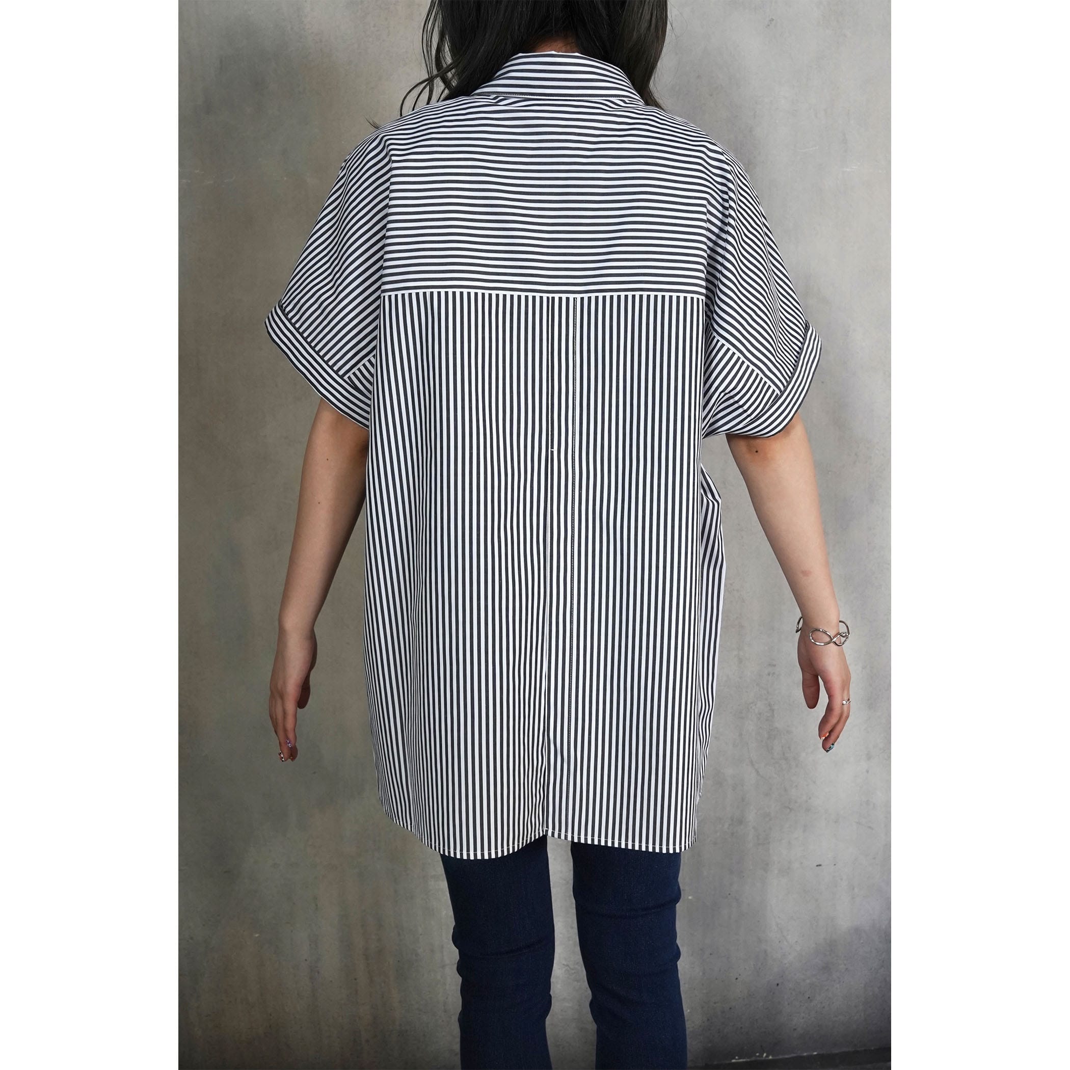 春夏のカジュアルシーンを軽やかに演出する、フレンチスリーブのストライプシャツ。ゆったりしたシルエットなので、体形もカバーしてくれます。身頃と袖が一続きになったフレンチスリーブは、肩の丸みに沿って、女性らしい柔らかなシルエットに。後のスリットとヨーク切替があることで、後からも見てもデザイン性のあるアイテムです。