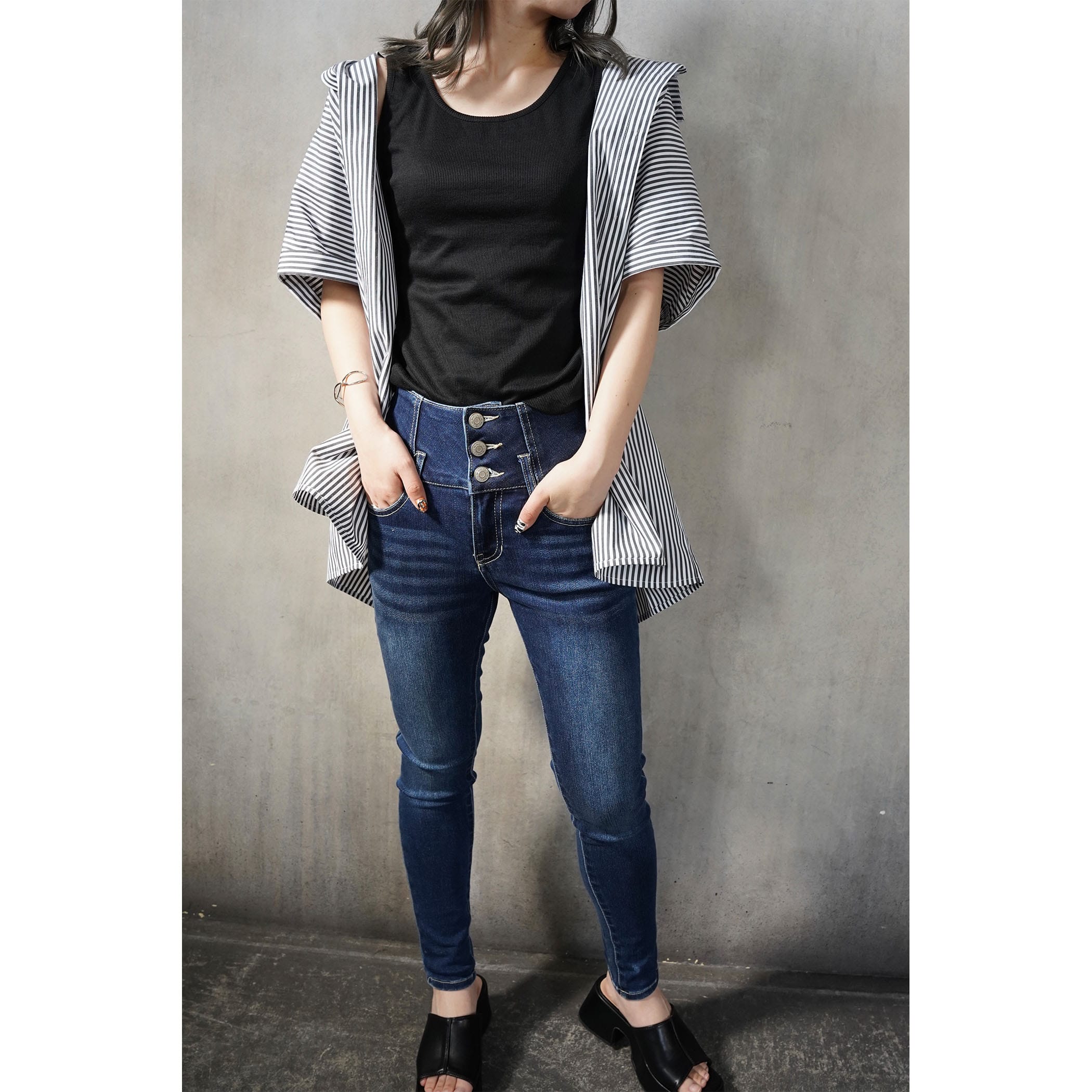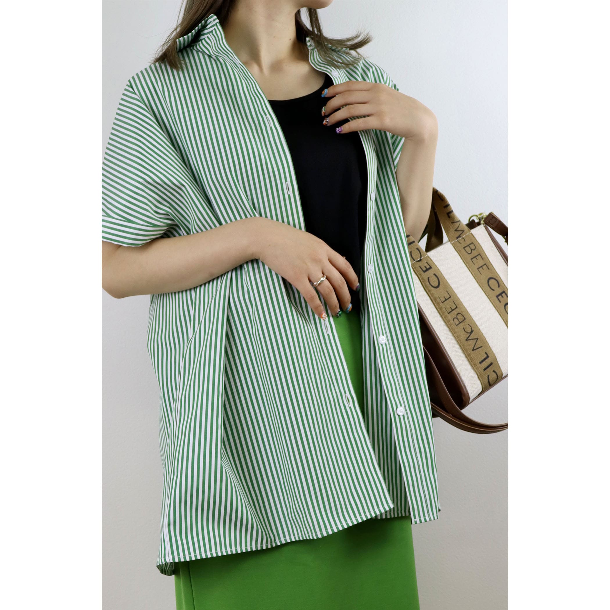 ストライプフレンチスリーブシャツ