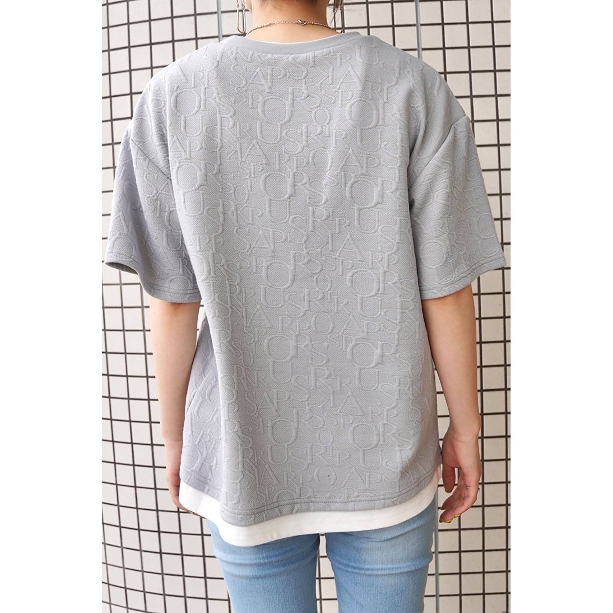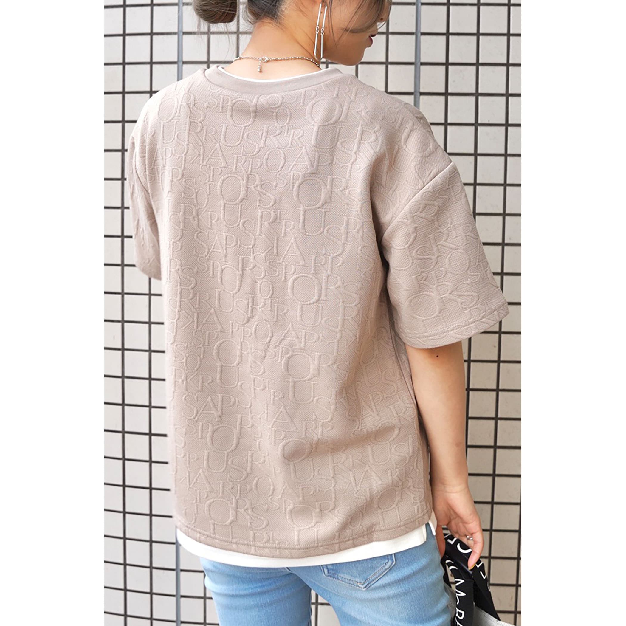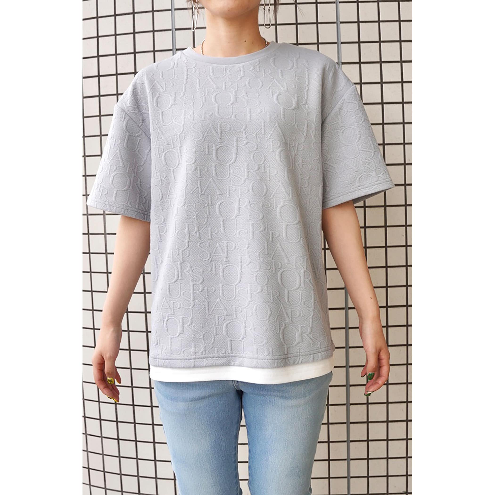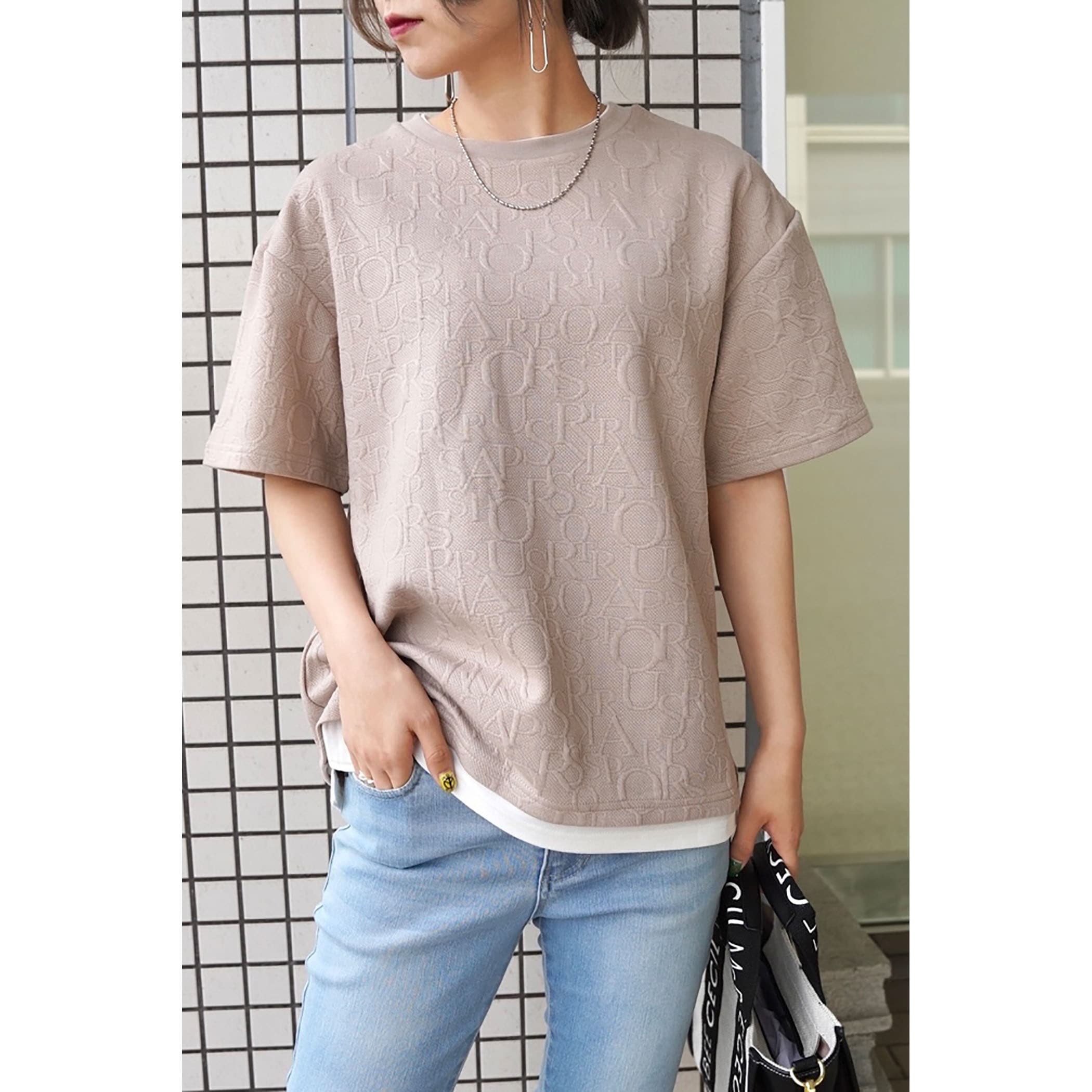 ぽこぽこした英字柄が高見えするレイヤードトップス。ドロップショルダーゆったりしたシルエットなので、程よく抜け感のある一枚。デニムや細めのパンツとの相性抜群です。
