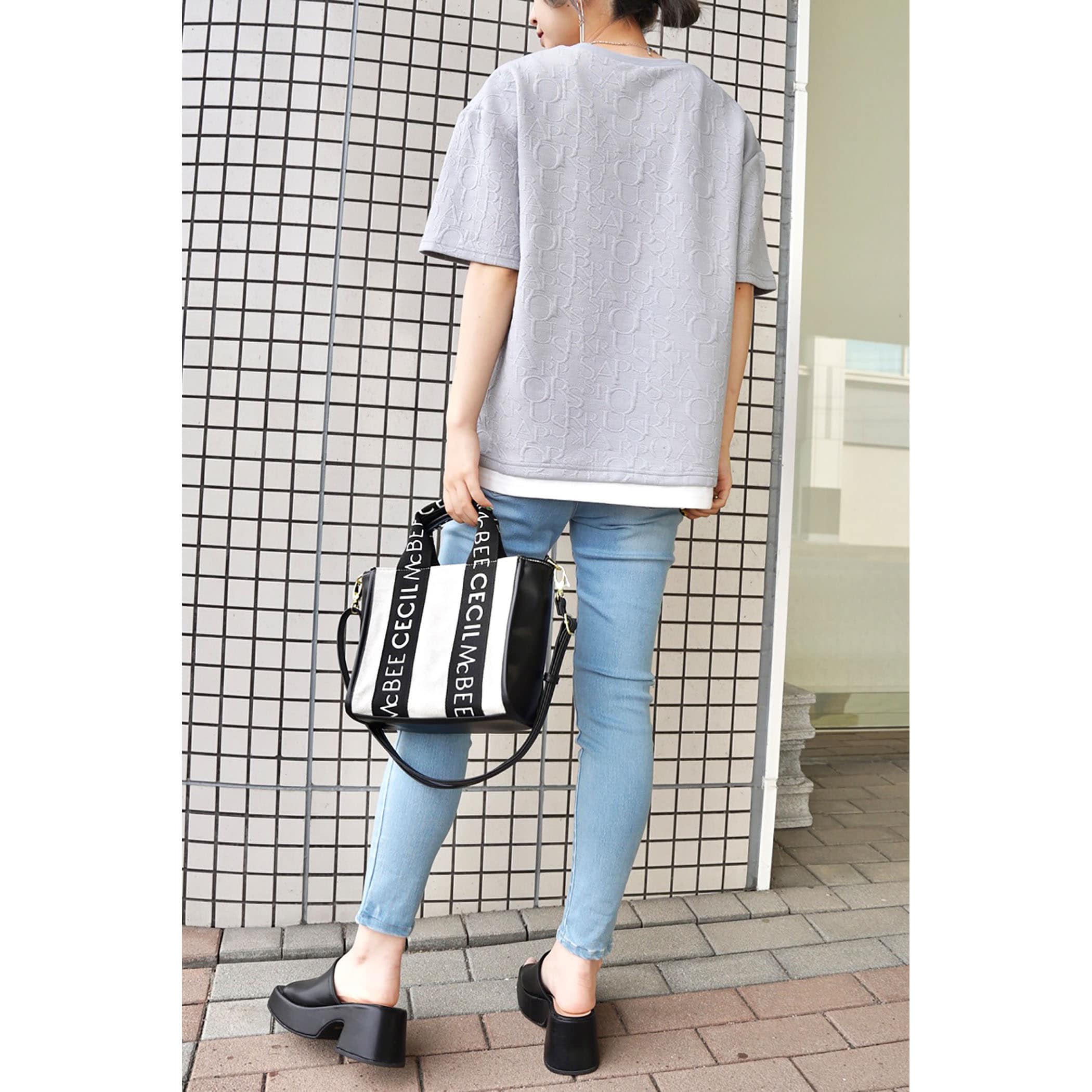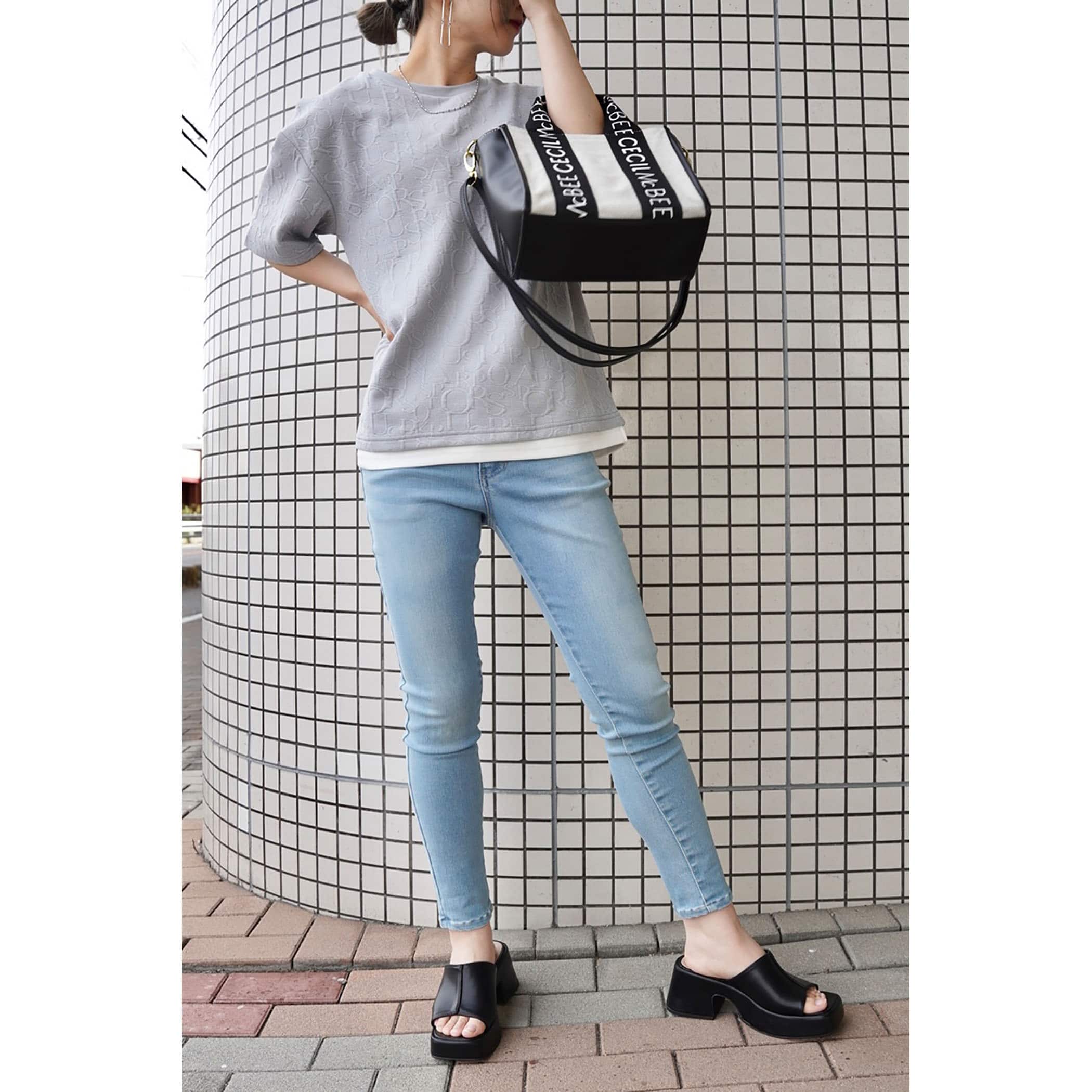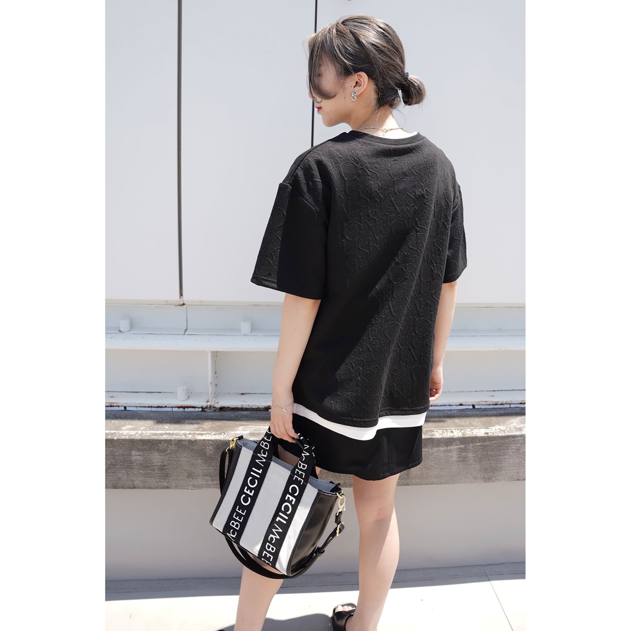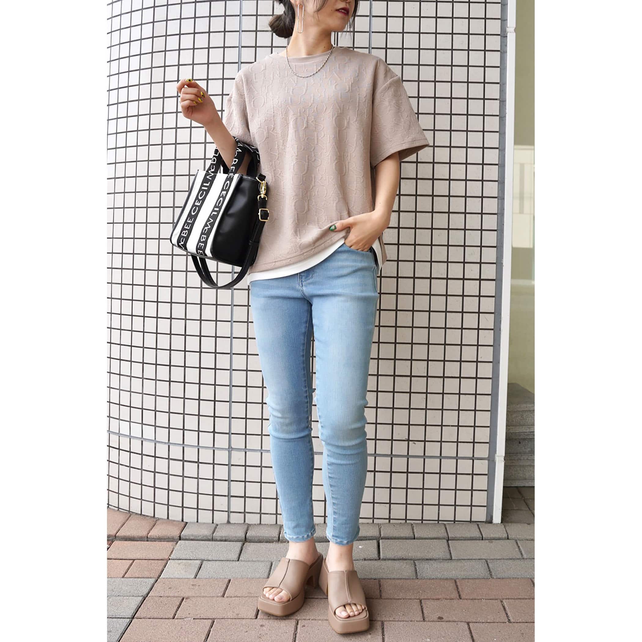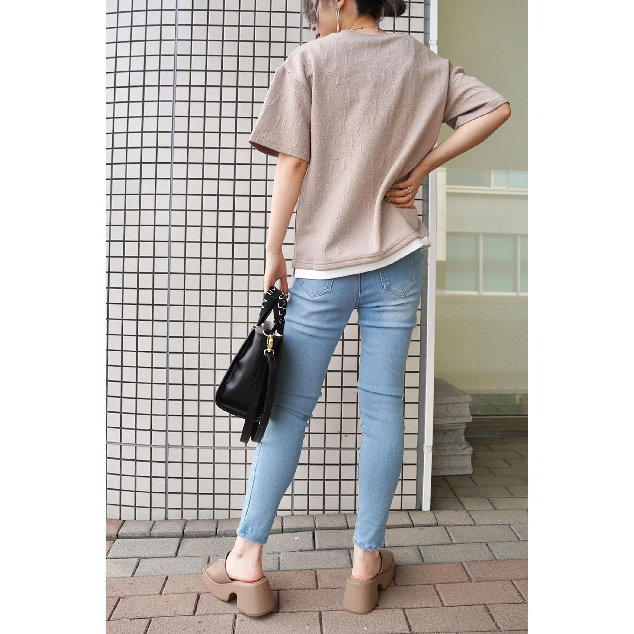 ぽこぽこした英字柄が高見えするレイヤードトップス。ドロップショルダーゆったりしたシルエットなので、程よく抜け感のある一枚。デニムや細めのパンツとの相性抜群です。