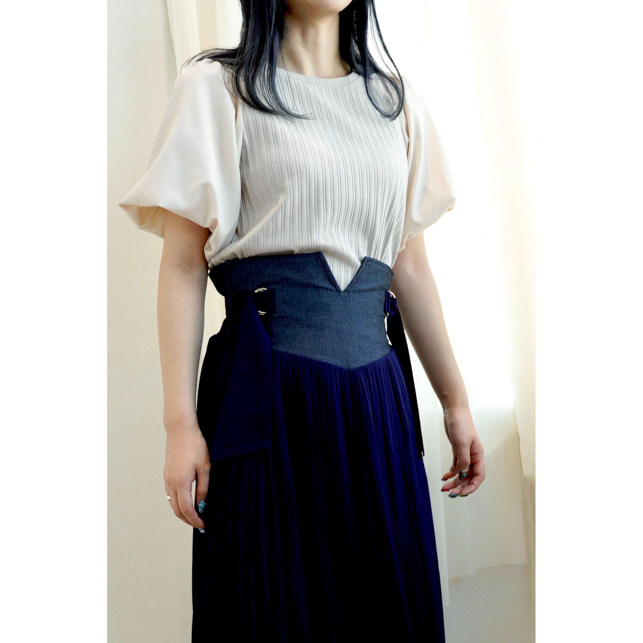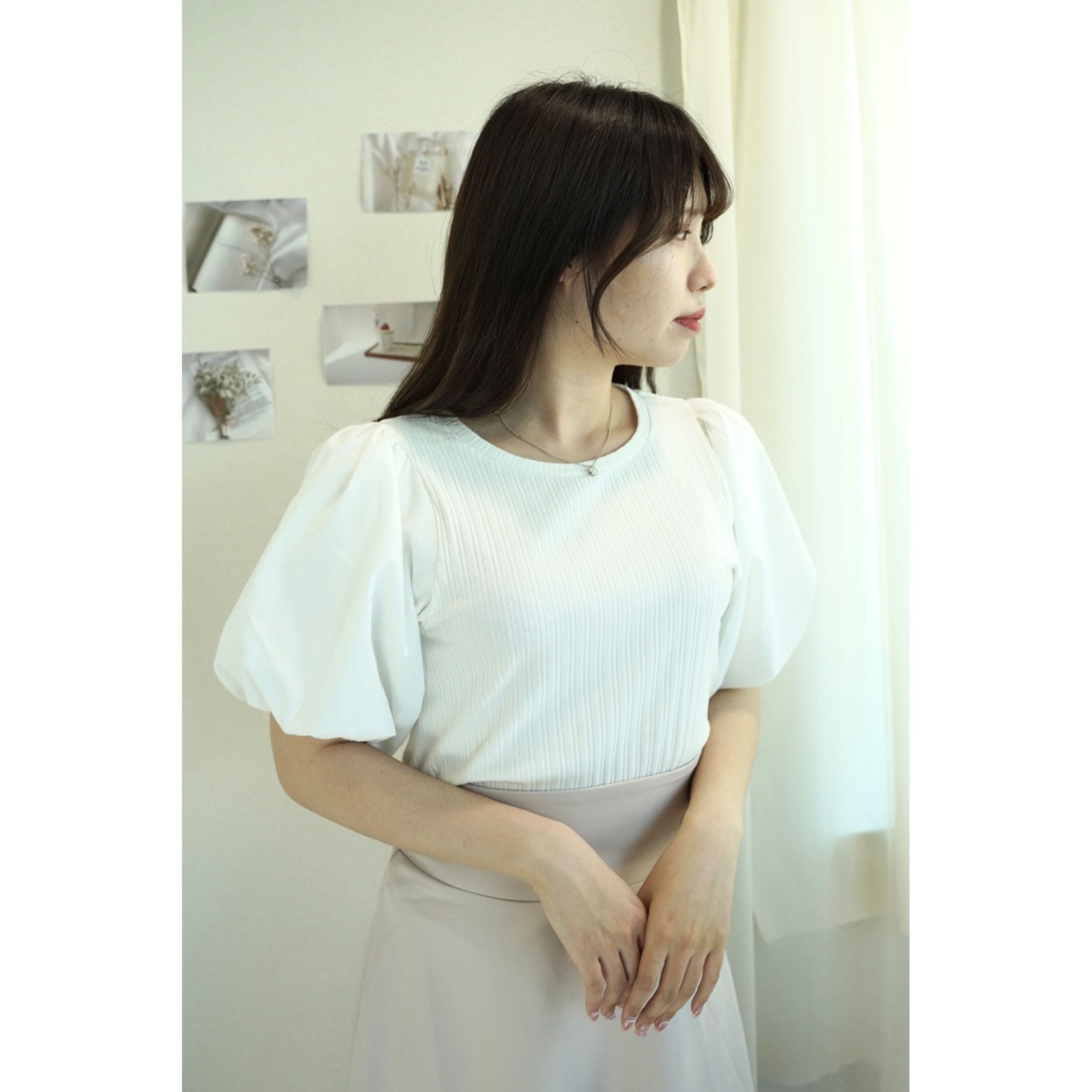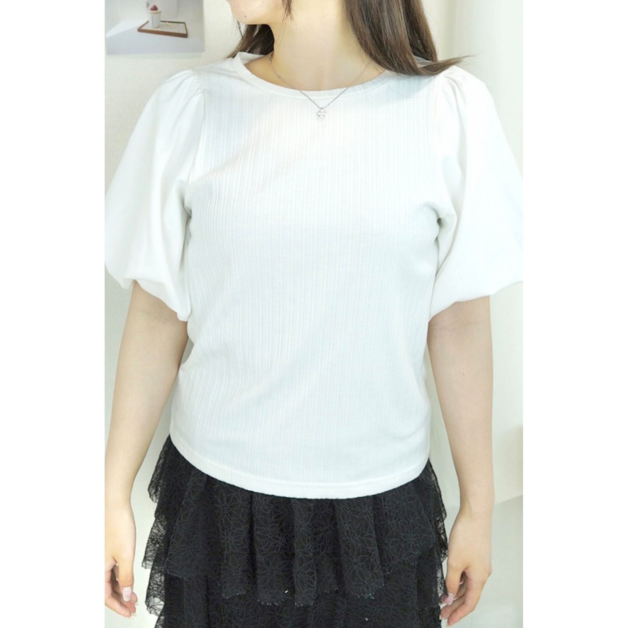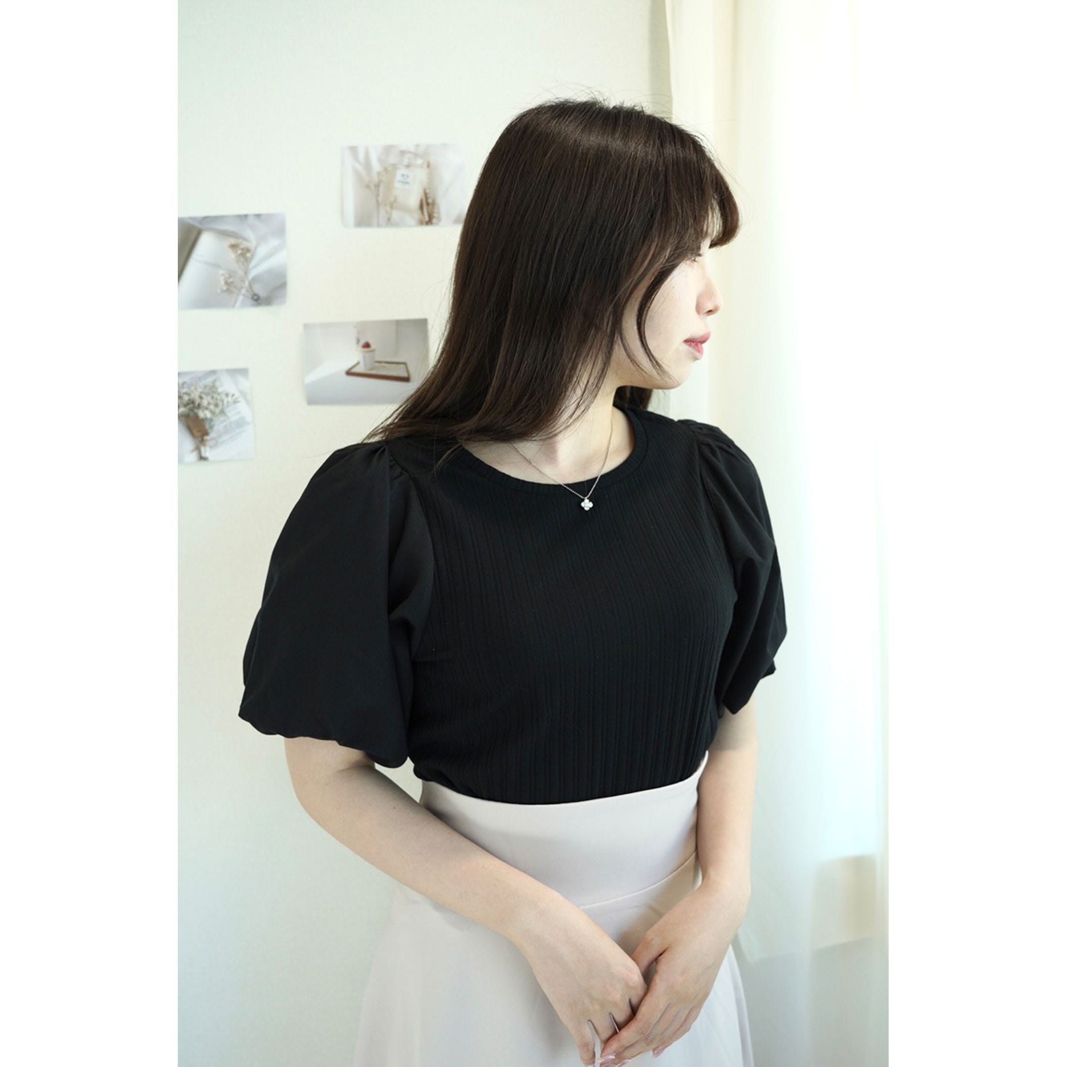 伸縮性抜群のランダムテレコリブトップス。シフォンで切り替えたふんわりパフスリーブがとってもキュート。いつものボトムスと合わせるだけでフェミニンコーデの完成。デイリー使いはもちろん、キレイ目な着こなしにも◎