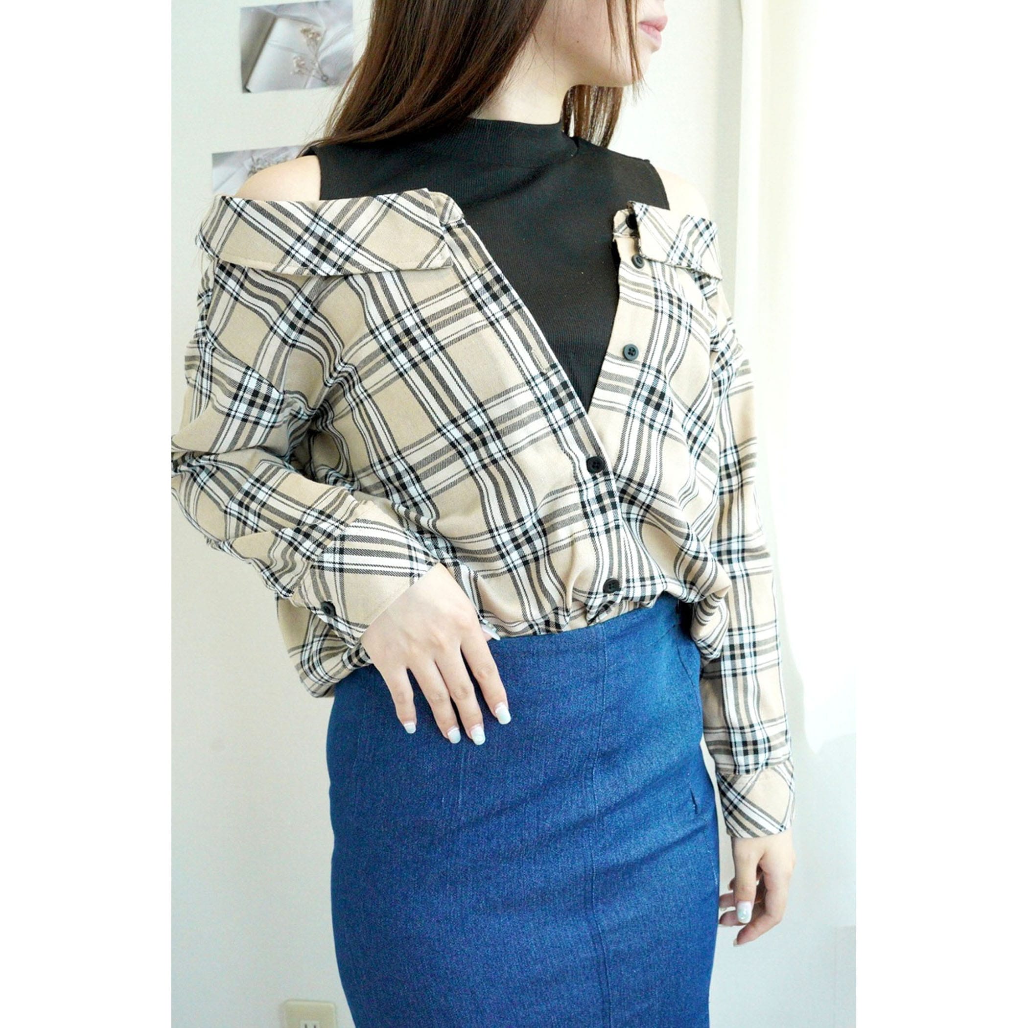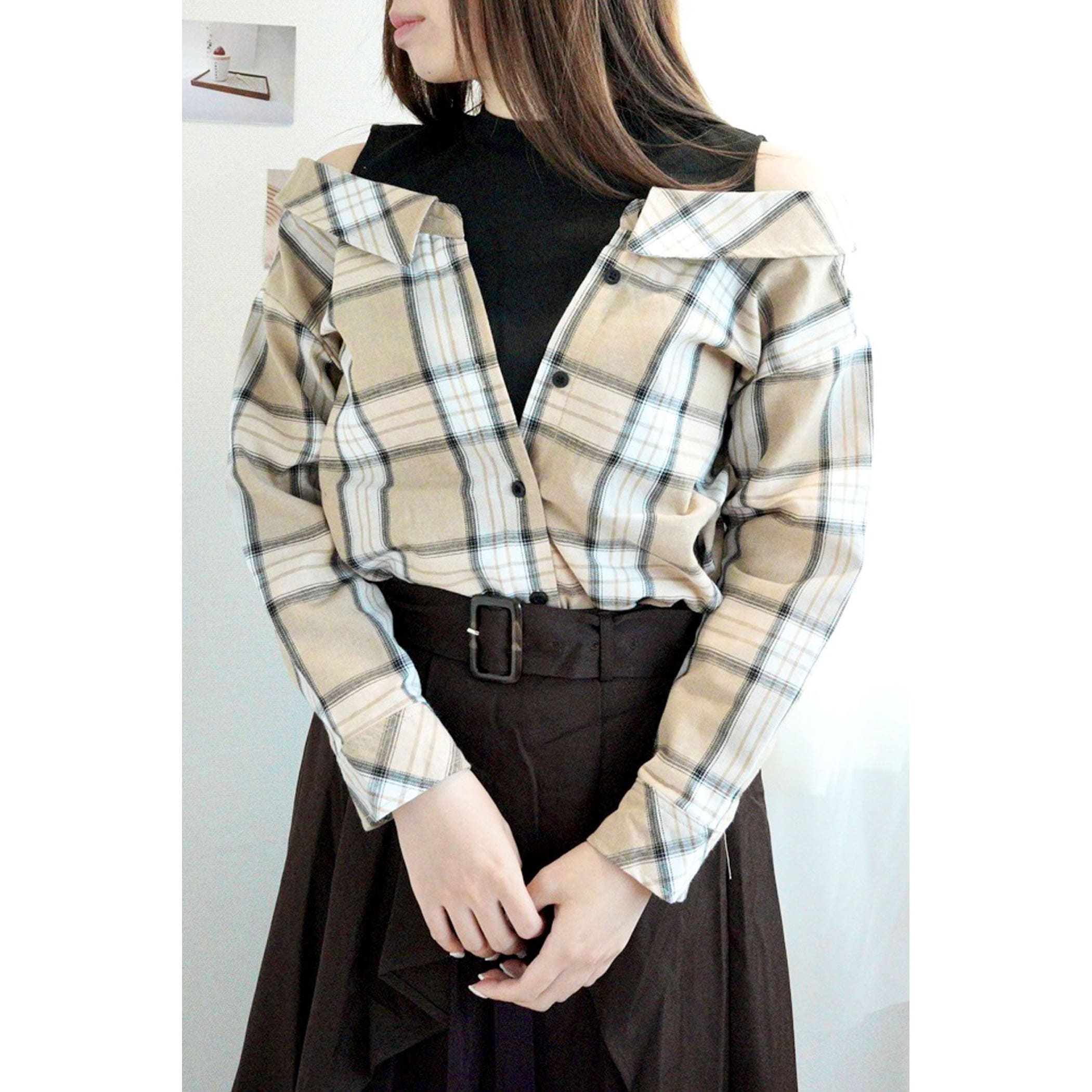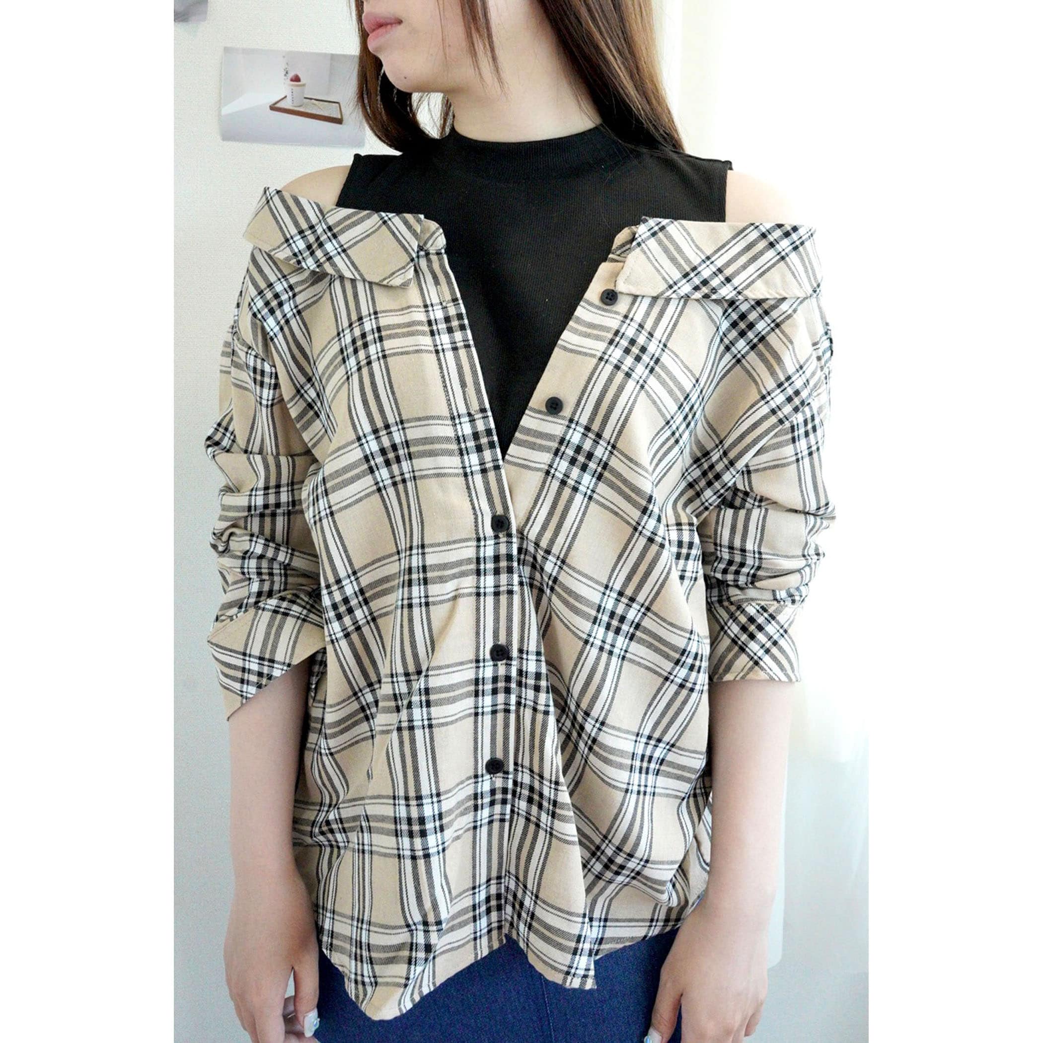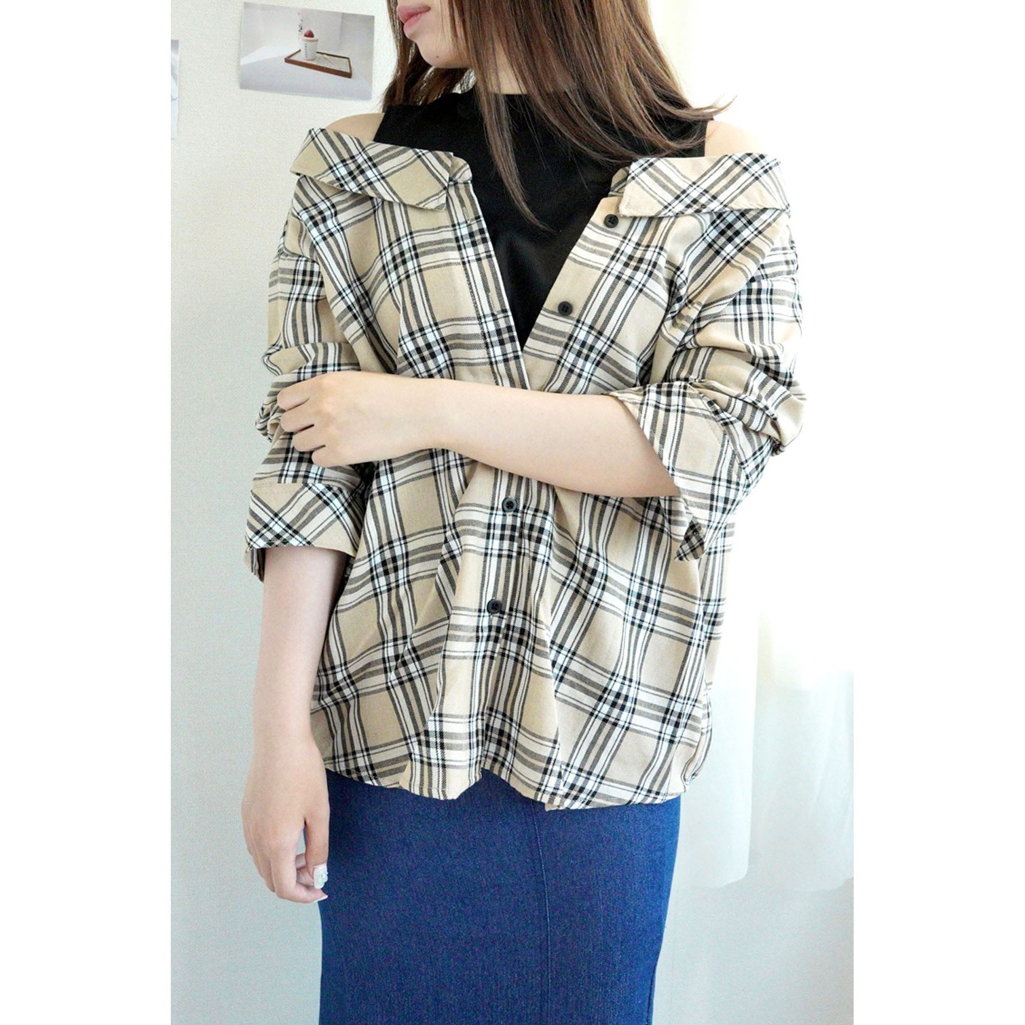 一枚でコーデが決まるレイヤードシャツ。肩出しデザインが抜け感を演出してくれます。デニムやパンツと合わせていただくとクールな印象に、トレンドのマーメイドスカート合わせていただくと程よいフェミニンコーデが完成します。