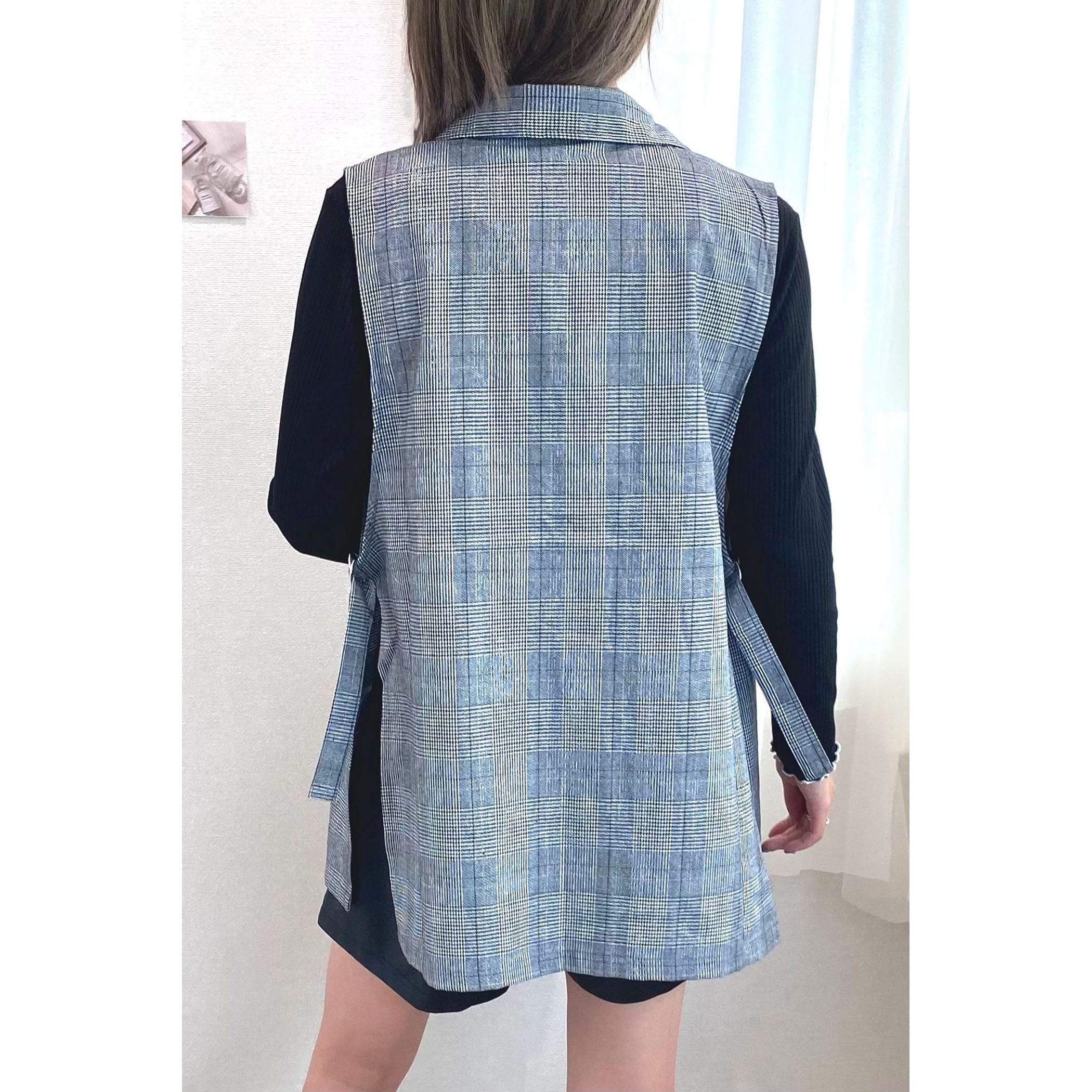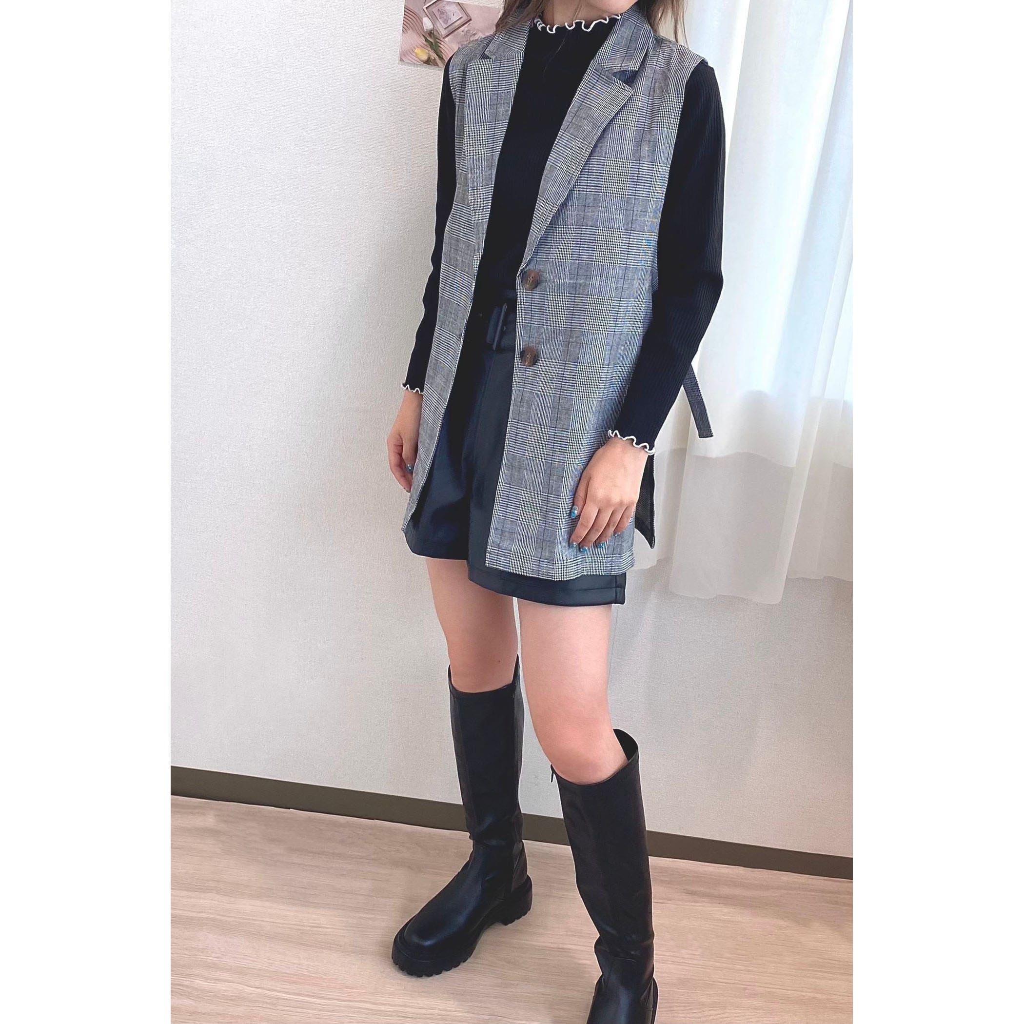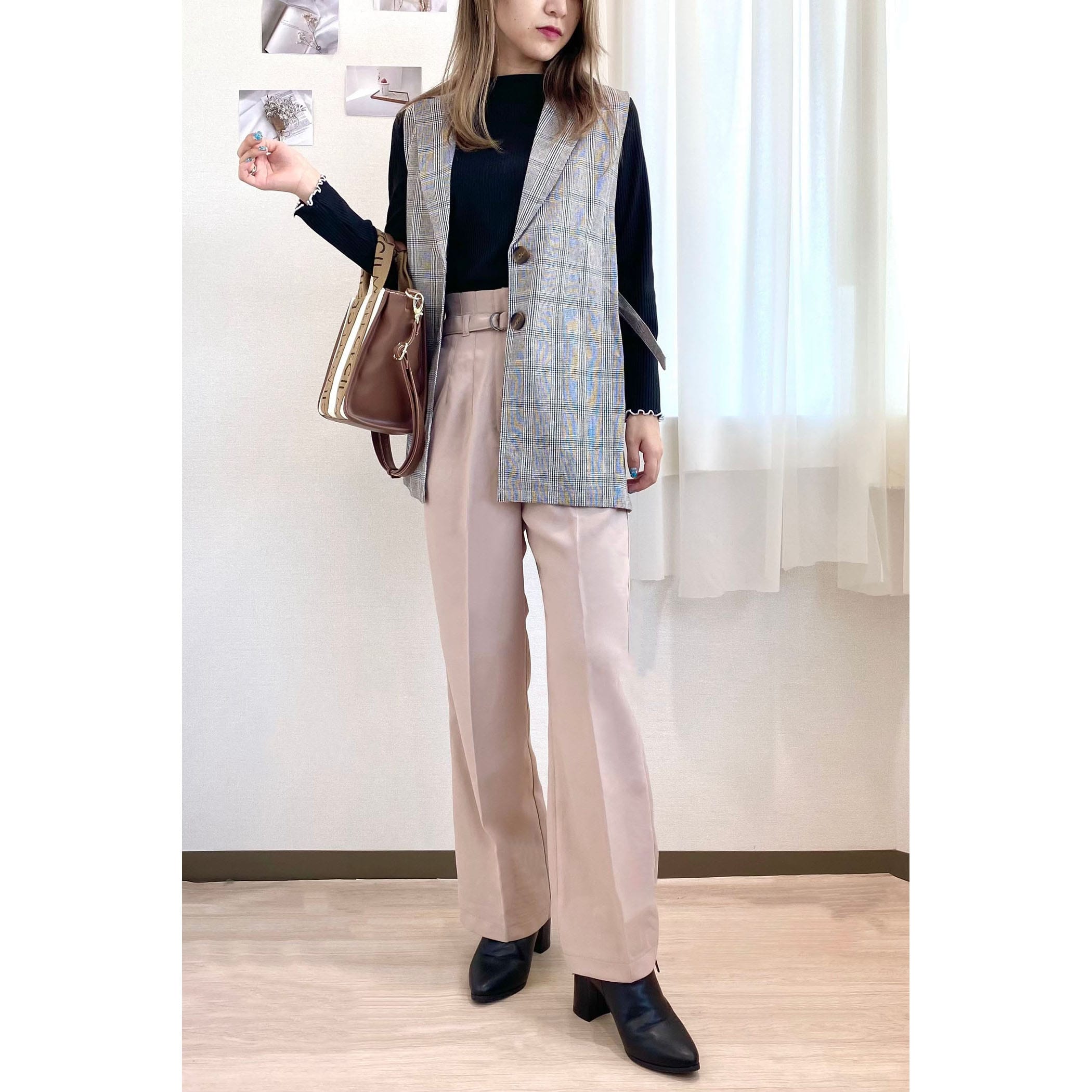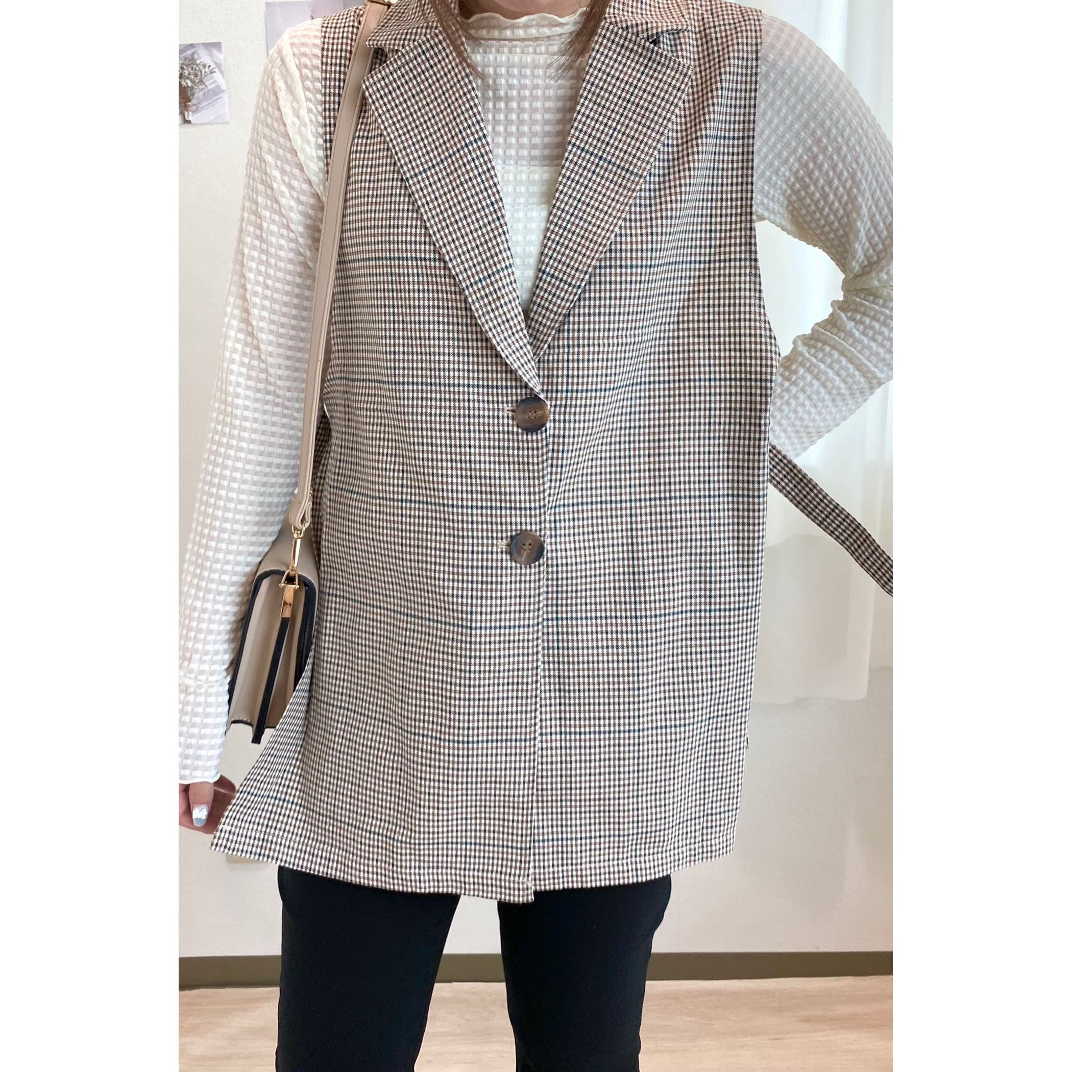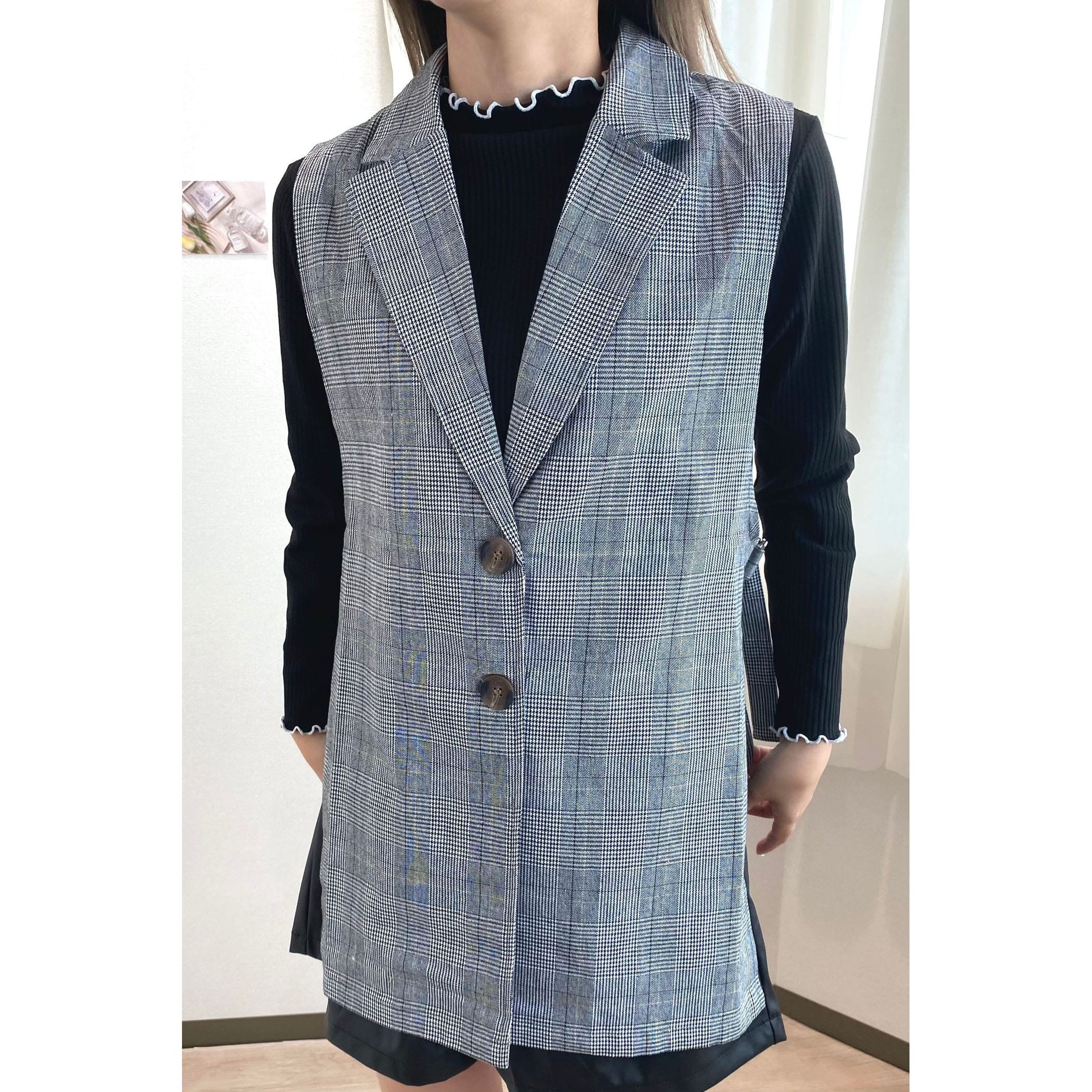 トレンドのノースリジレがチェック柄で登場。パンツにもスカートにも合わせやすいアイテムなので、いつものコーディネートにプラスするだけで、こなれた印象に。落ち着いた色合いなので、秋スタイルにオススメの一枚です。