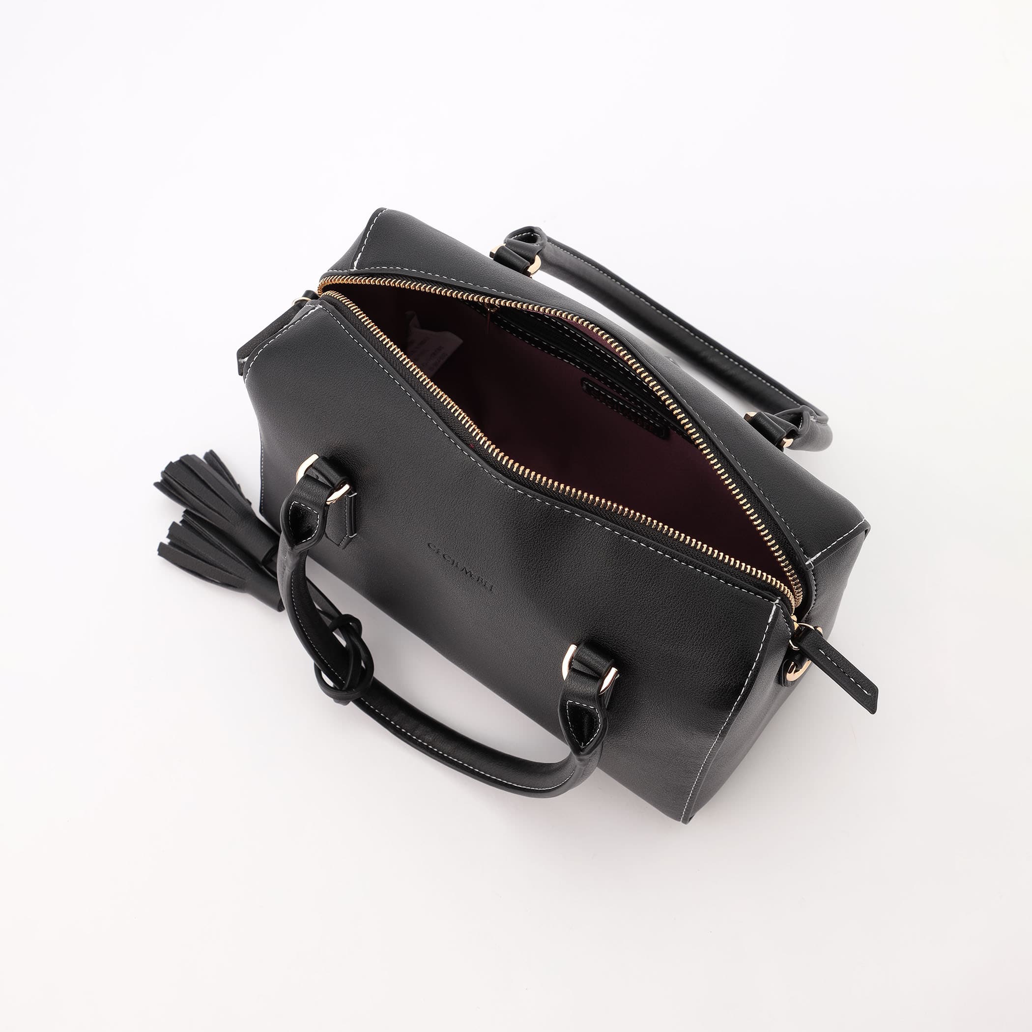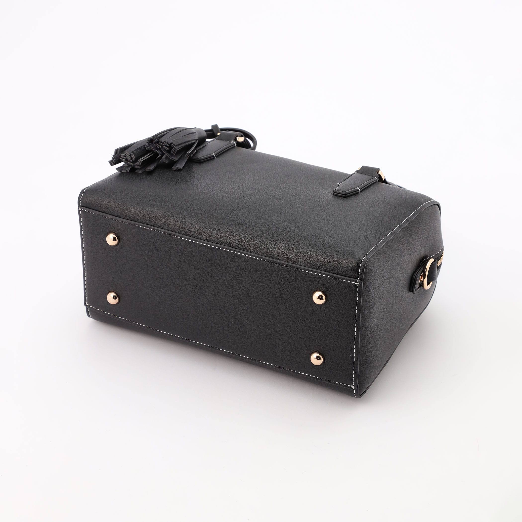 取り外し可能なショルダー付きで、ショルダーバッグ、ハンドバッグの2WAYでお使いいただけます◎落ち着いたカラーでクラシカルなデザインは幅広いスタイリングにご使用頂けます。取り外し可能なタッセルチャームでアクセントをプラスしています。