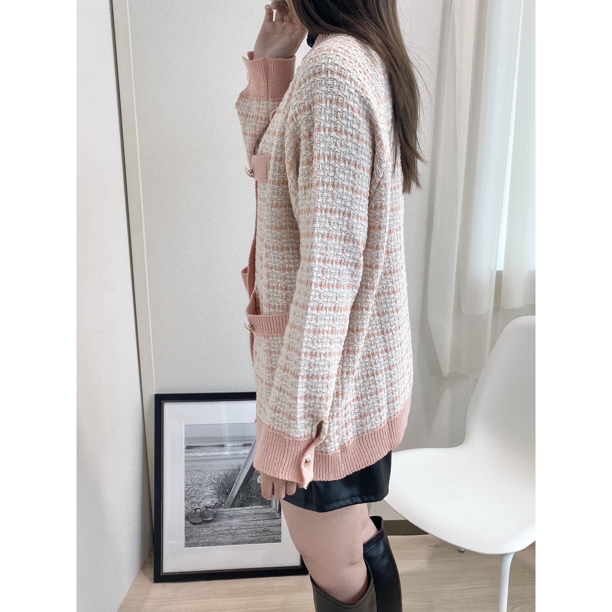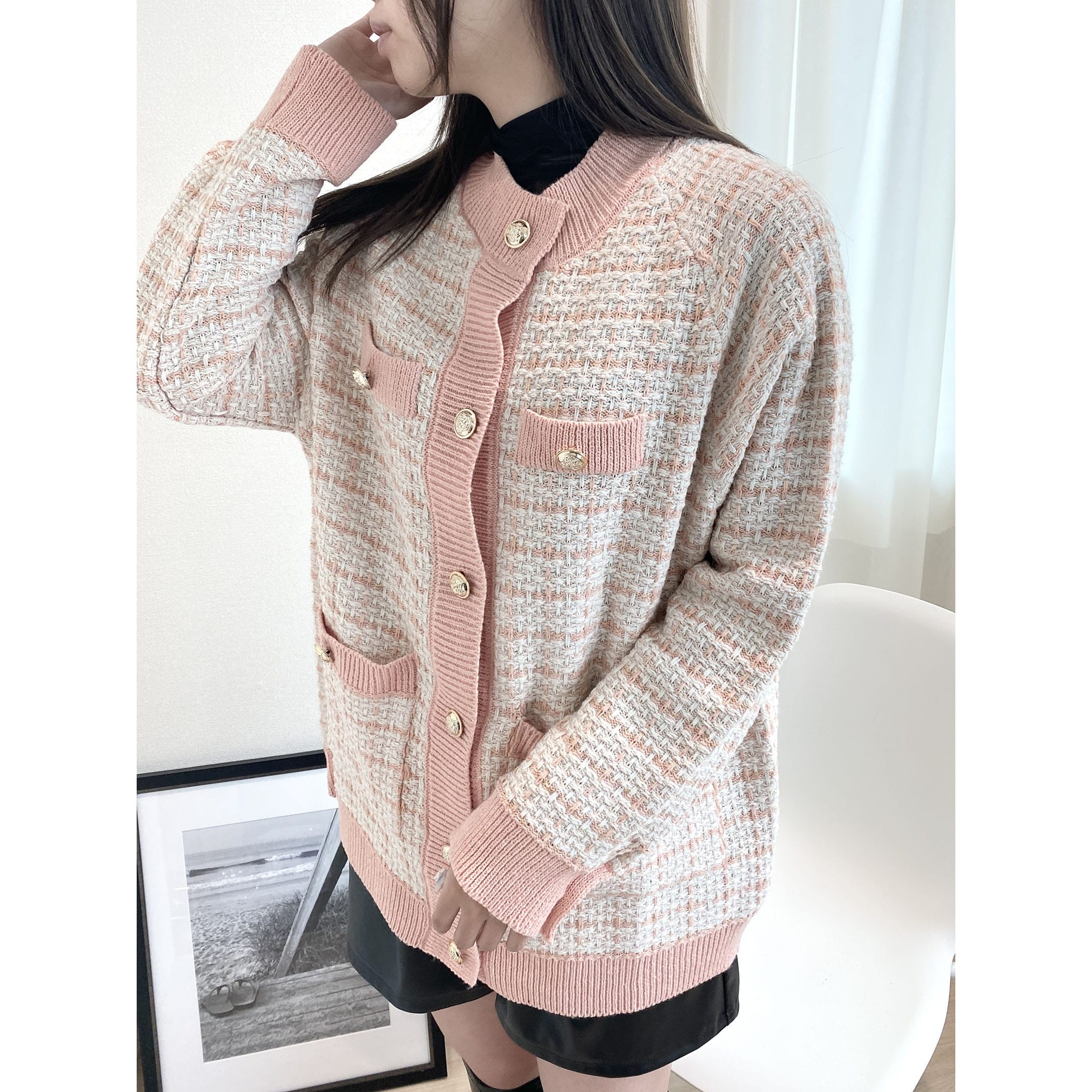 ツイード見えのジャガードニットカーディガンの登場です!