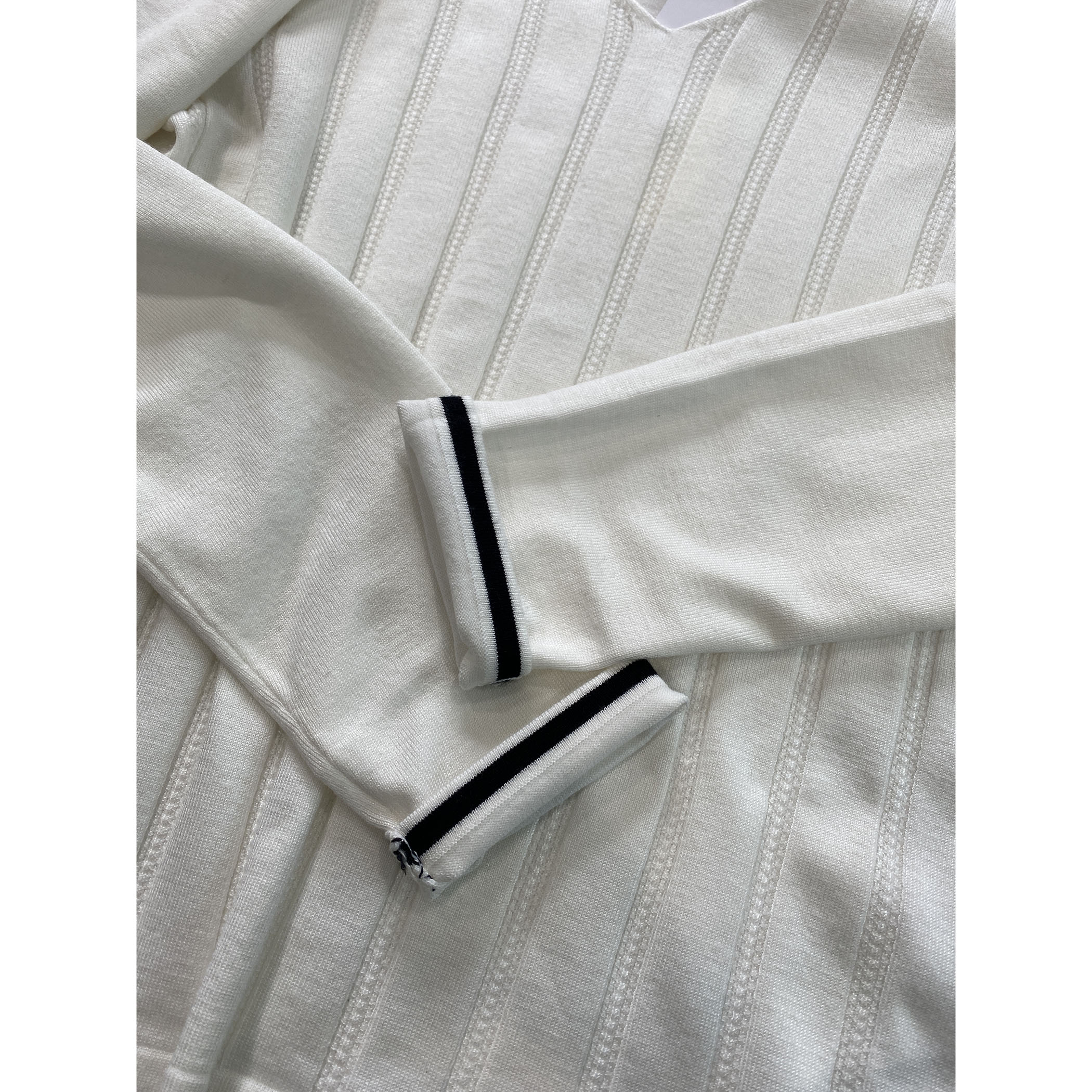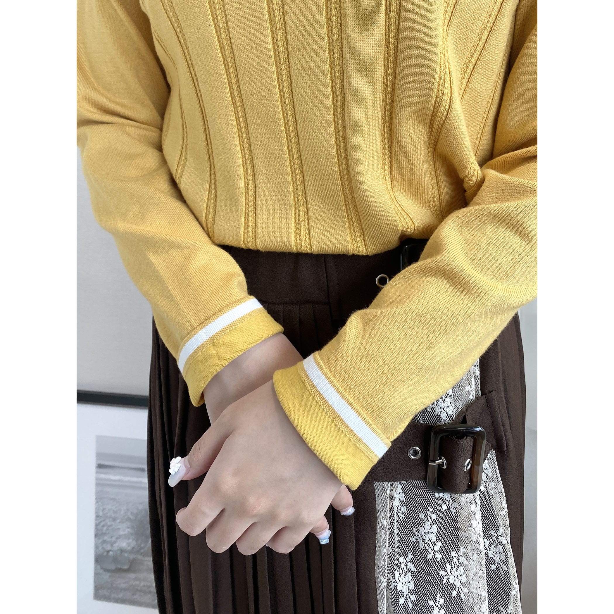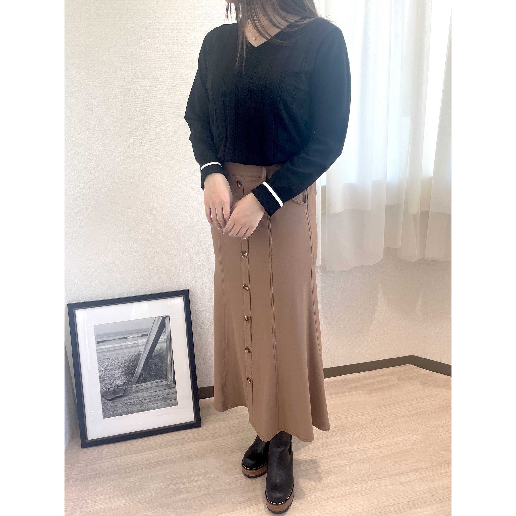 縦ラインの柄編みとVネックがスッキリと見せてくれるプルオーバー。やわらかく肌触りのいい素材感で着心地も抜群です。ご家庭で手洗いも可能です。