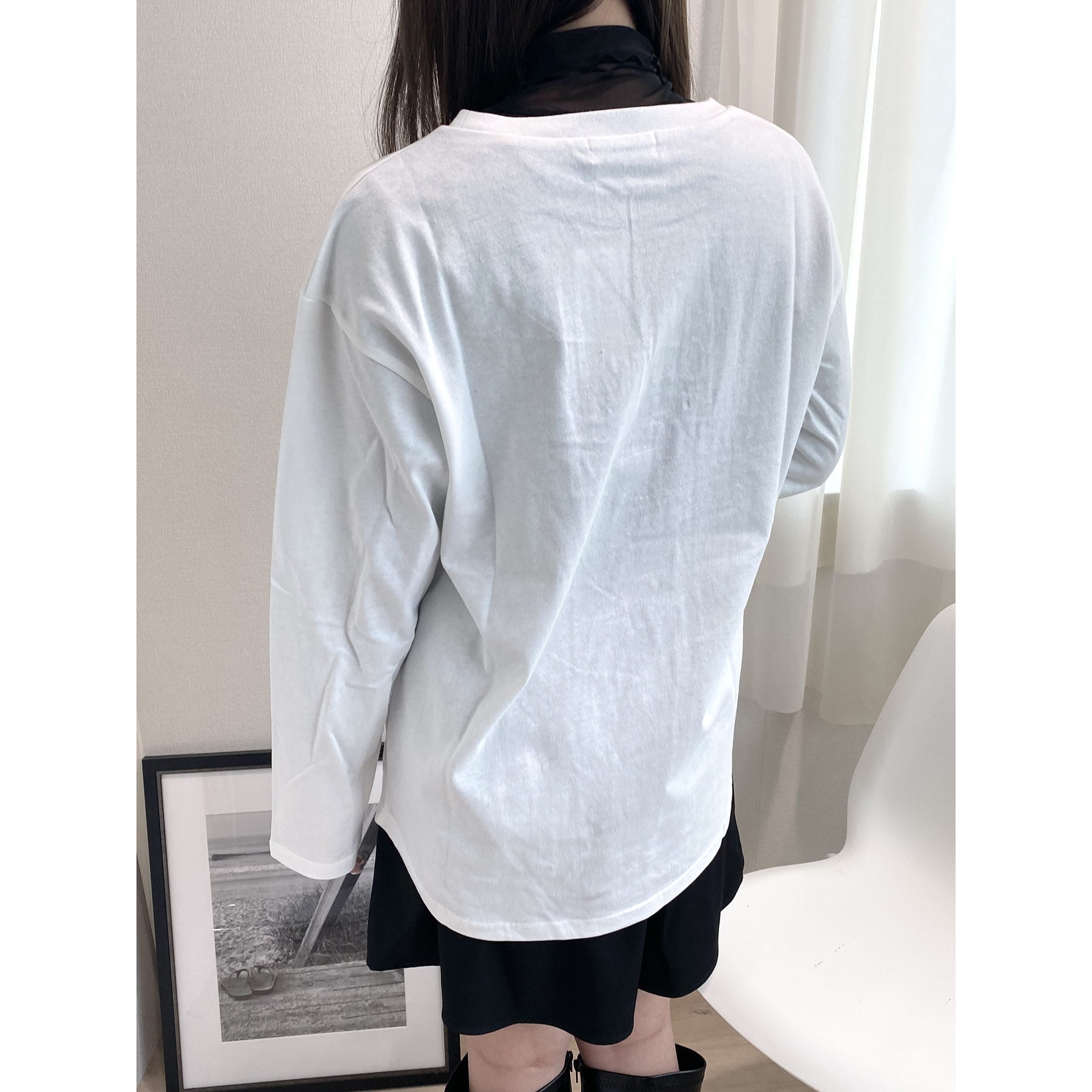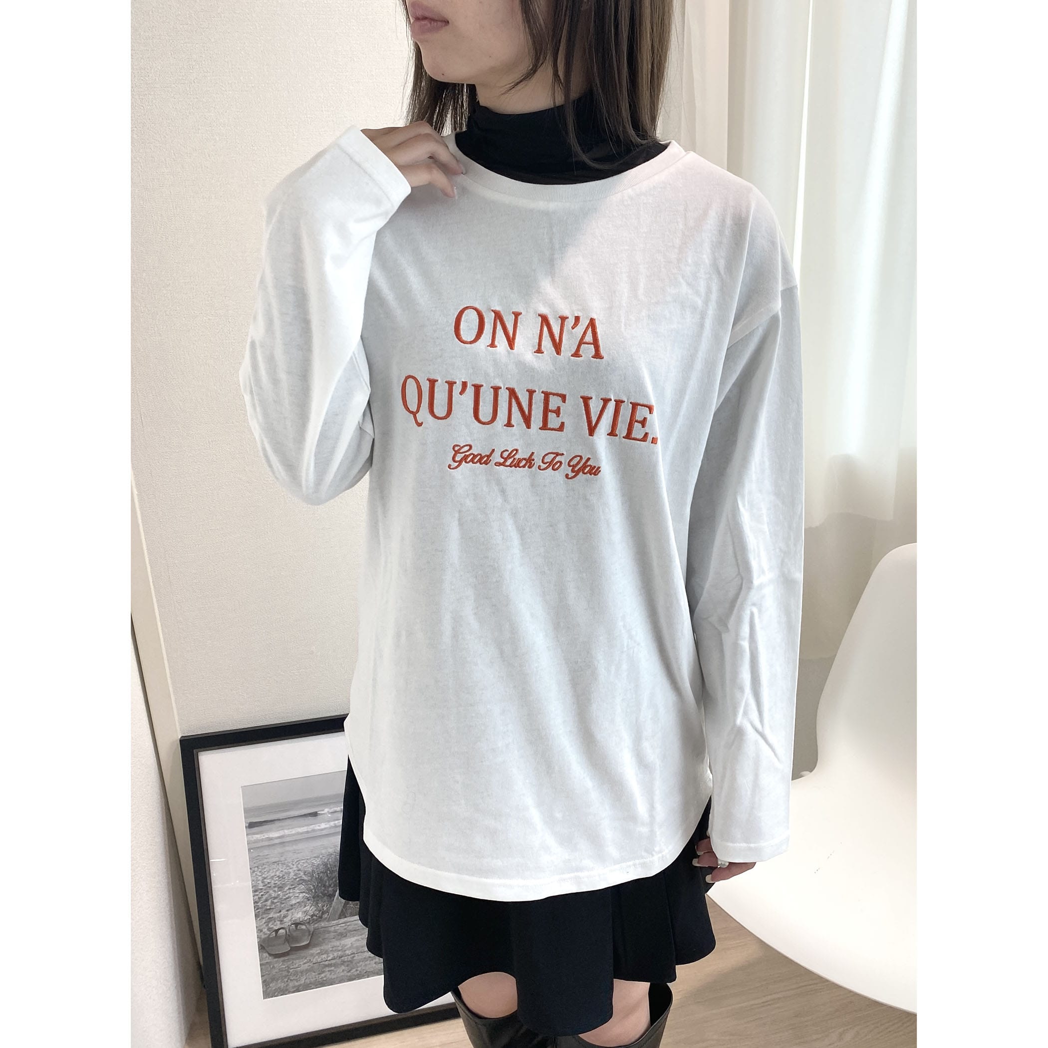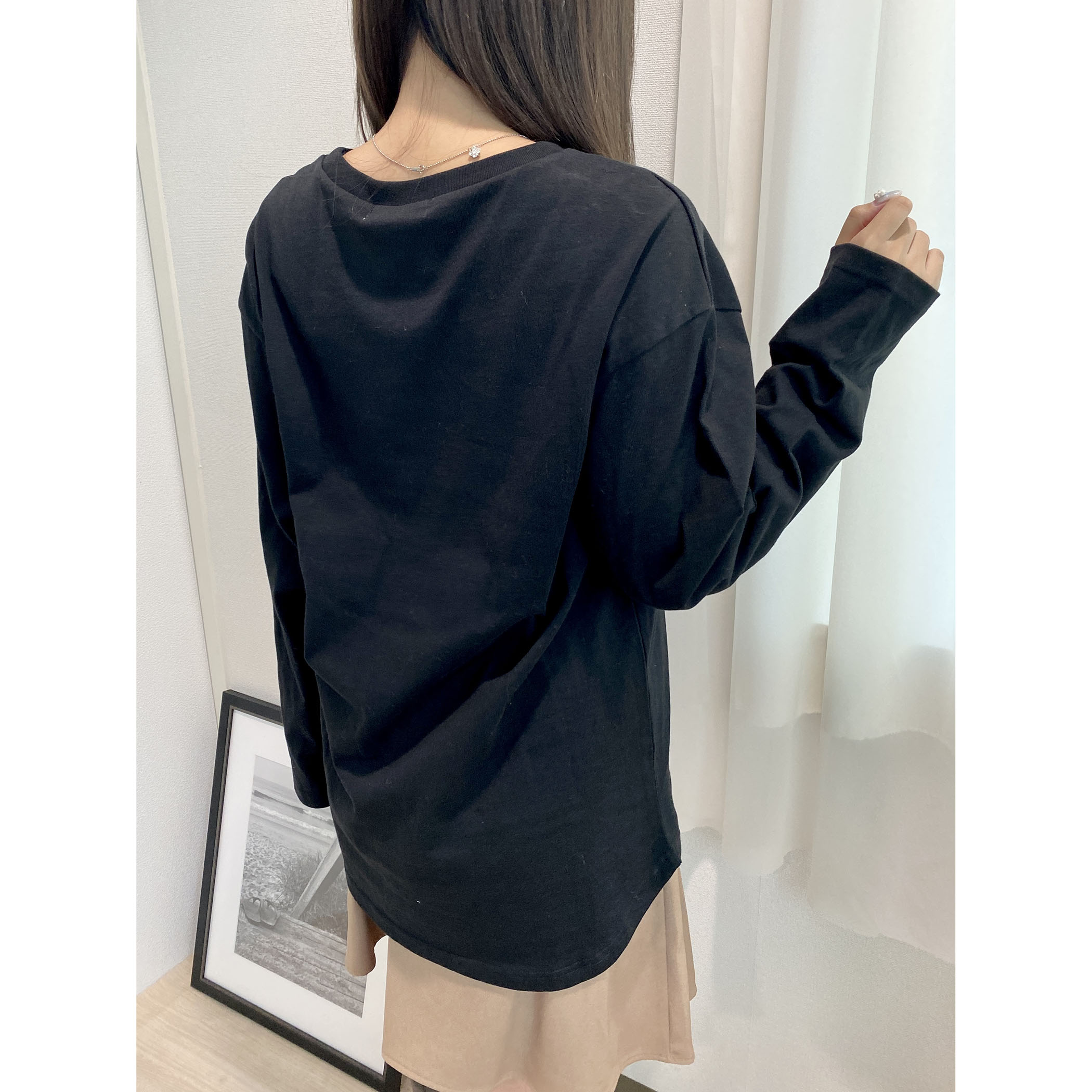 フロント部分にカラー刺繍が入った一枚で様になるロンT。シンプルながらもオシャレ度抜群なアイテムで、デイリー使いにもちょうどいいアイテムです。アウトスタイルでもインスタイルでも着用しやすく、程よくゆったりとしたシルエットがトレンドライクで◎。一枚持っておくと便利なアイテムです。
